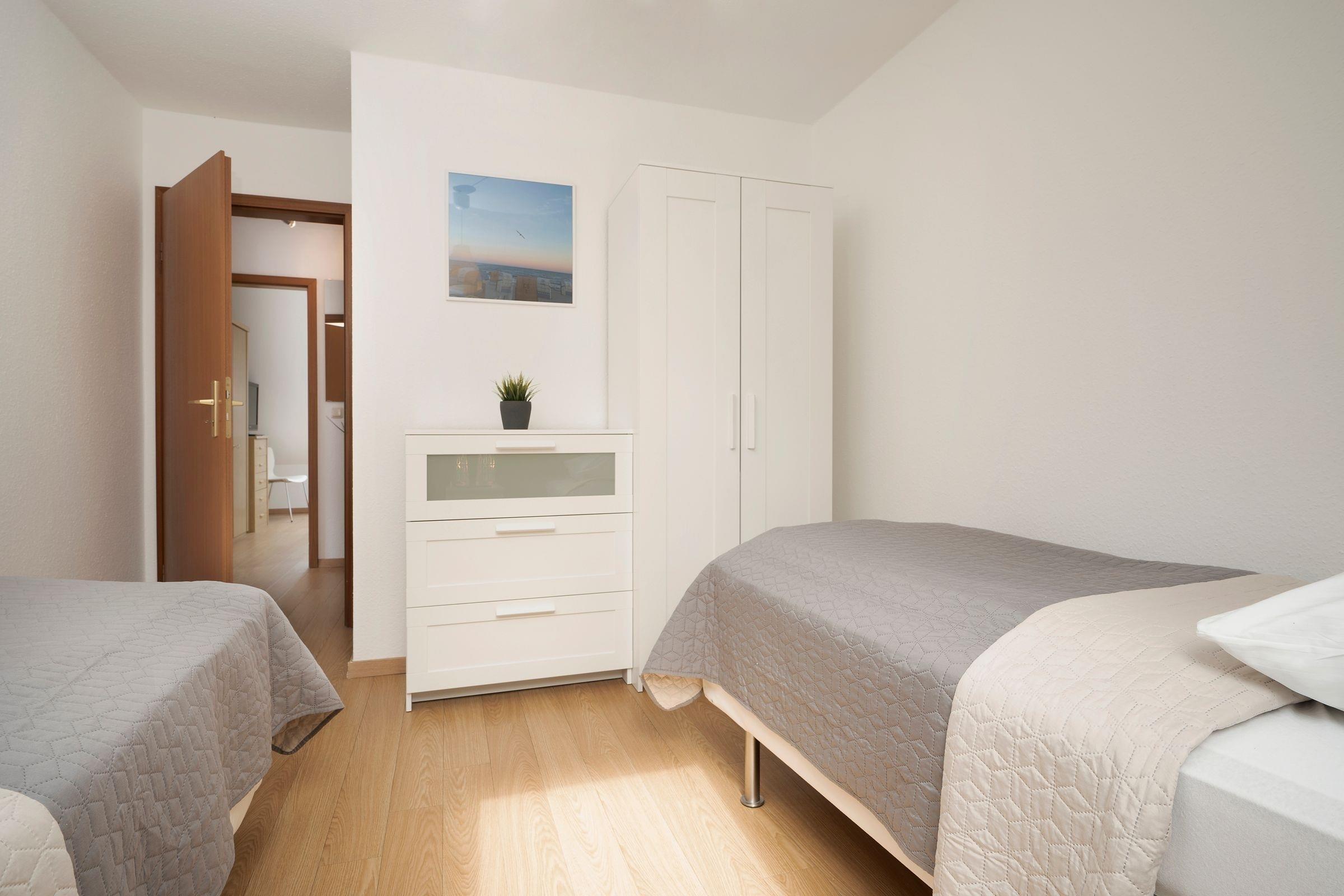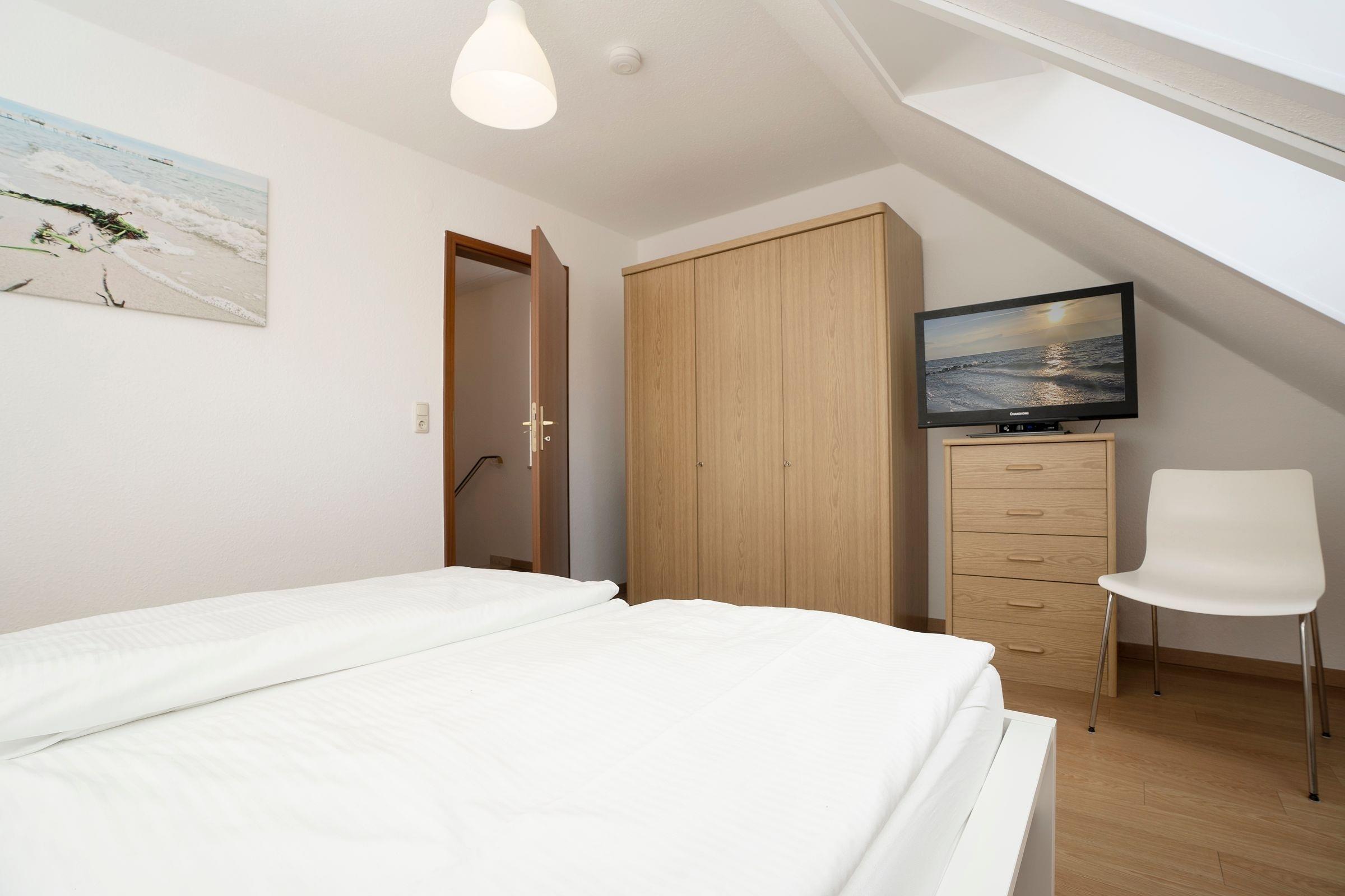Schlafzimmer 1 (1. OG): 1 Doppelbett (2x 90x200 cm), Kleiderschrank, TV