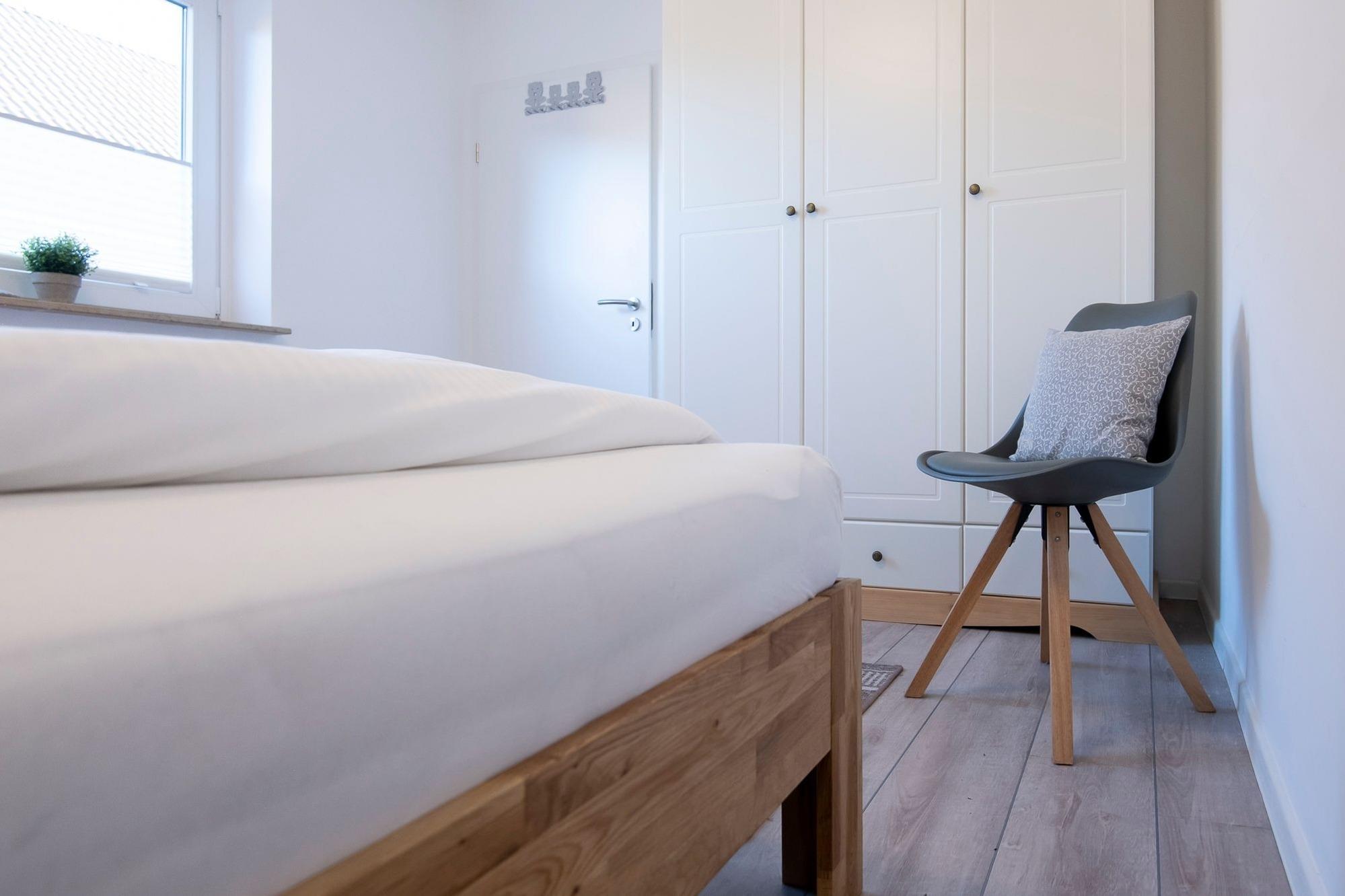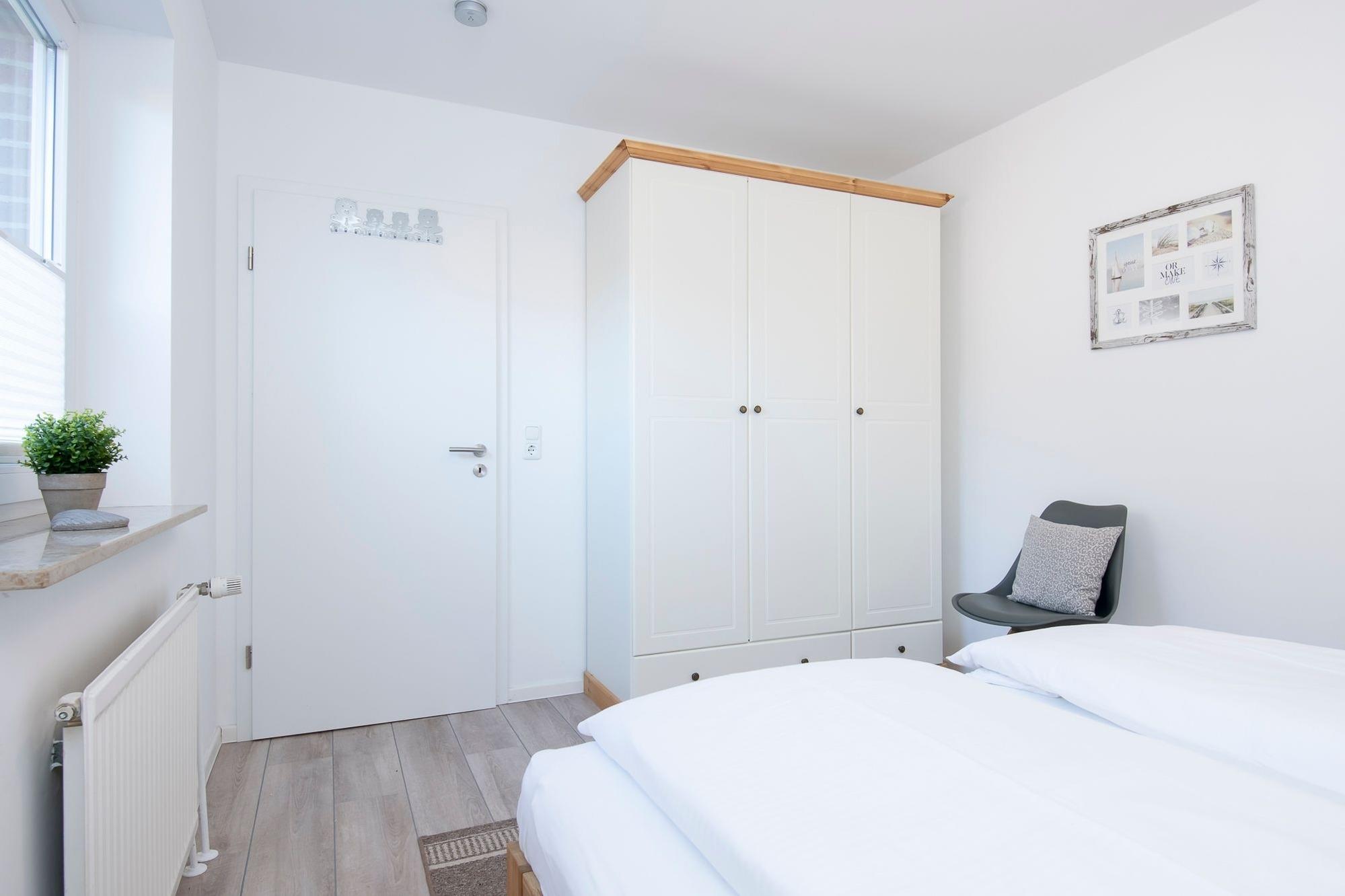 Schlafzimmer 1: 1 Doppelbett (2x 90x200 cm), Kleiderschrank, Verdunkelung (Plissees)