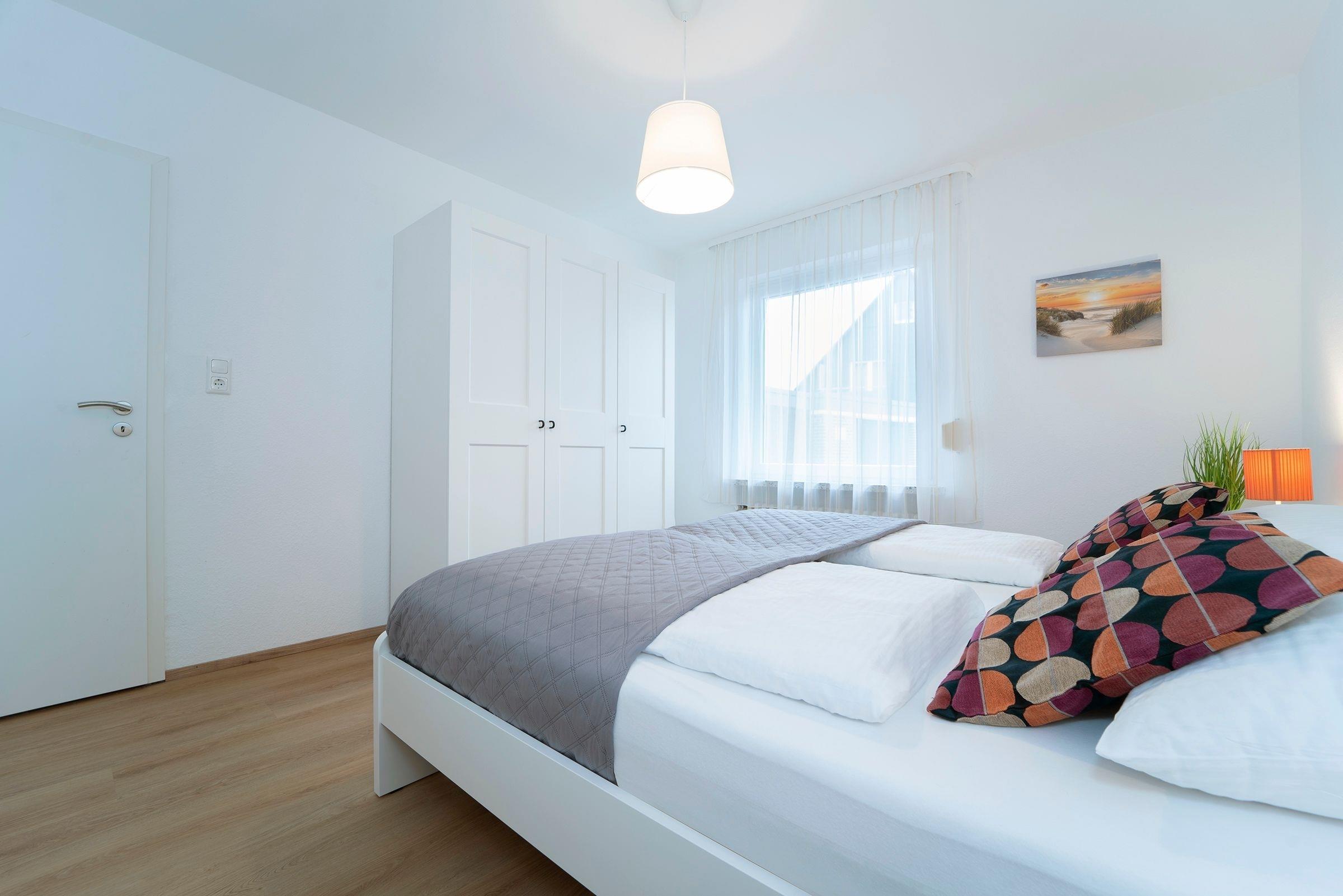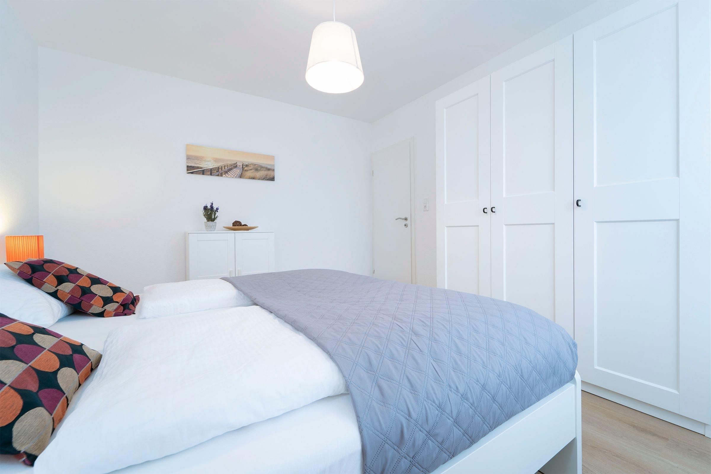 Schlafzimmer 1: 1 Doppelbett (2x 90x200 cm), Kleiderschrank, Verdunkelung (Außenjalousie)