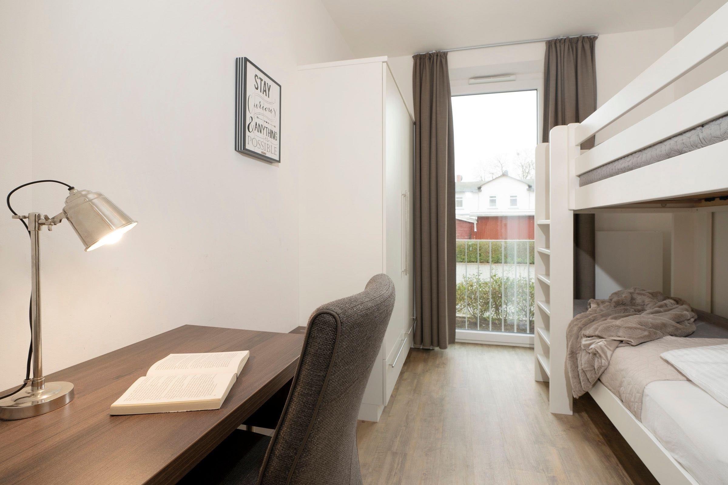 Schlafzimmer 2: 1 Etagenbett (je ca. 90x200 cm), Kleiderschrank, Verdunkelungsgardinen