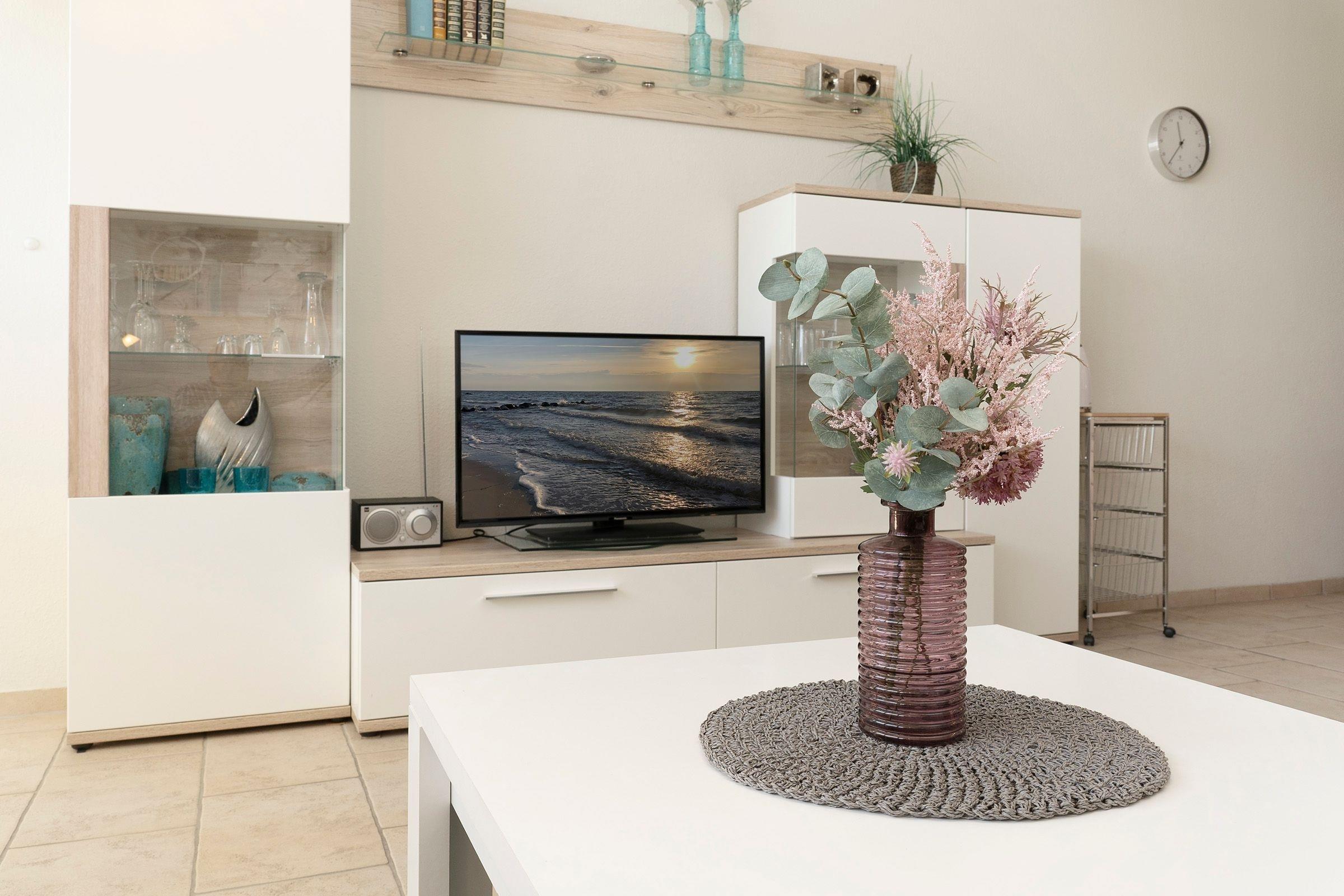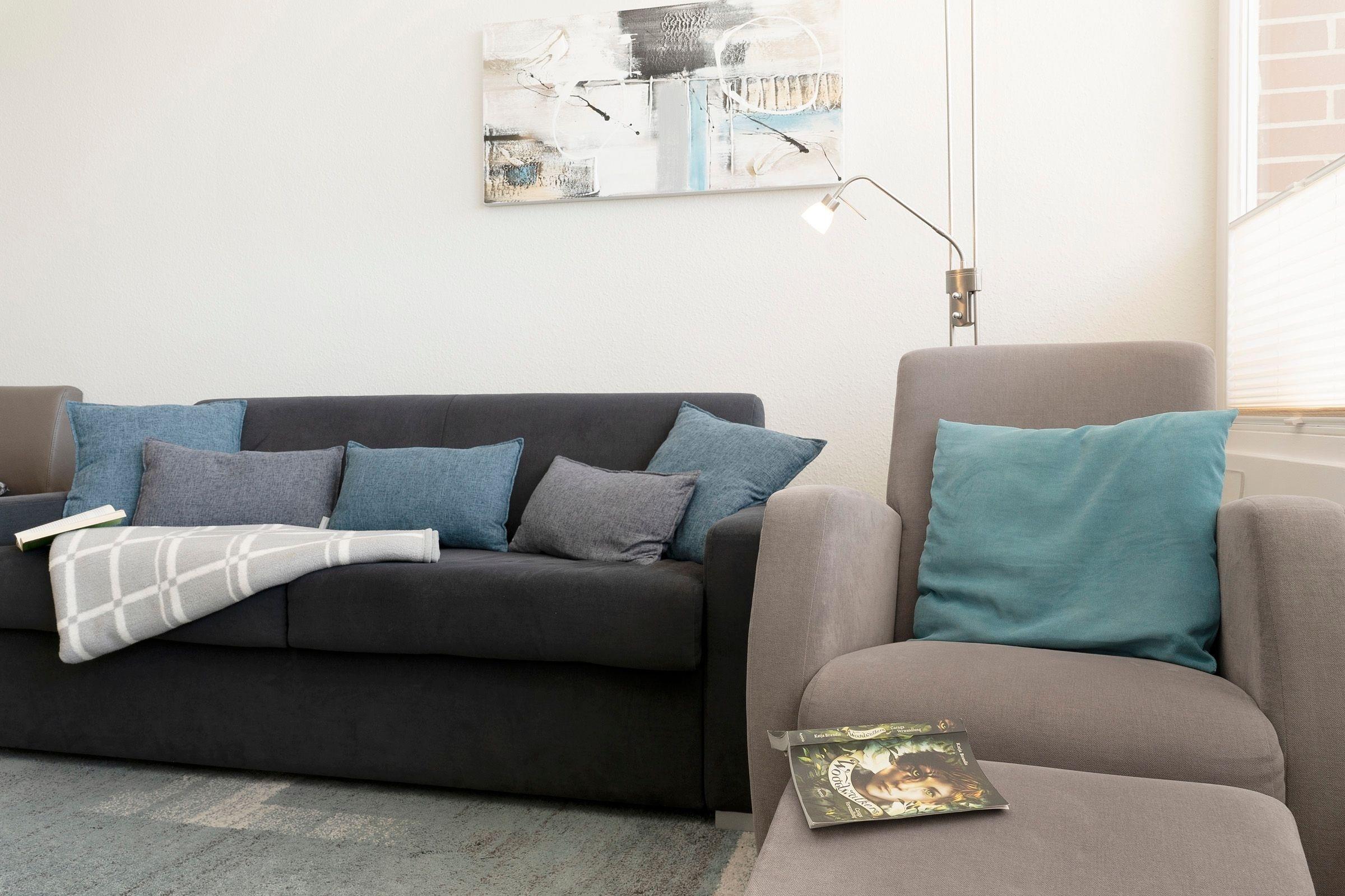 Es erwartet Sie eine modern eingerichtete Wohnung mit offenem Raumkonzept. Das Wohnzimmer mit einer Schlafcouch (ca. 140x200 cm) bietet in der Nacht einen gemütlichen Schlafplatz für eine Person und sorgt am Tag für ausreichend Entspannung. Auf dem Balkon mit Morgensonne können Sie den ersten Blick auf das Glitzern der Ostsee erhaschen und Ihre Urlaubstage bei einem Glas Wein ausklingen lassen. Die im Wohnzimmer integrierte Küche mit Kaffeemaschine, Nespressomaschine, Heißluftfritteuse, Toaster, Geschirrspüler, Mikrowelle, 2-Platten-Herd (Ceranfeld), Wasserkocher bietet Ihnen alle Annehmlichkeiten für gesellige Kochabende. Genießen Sie im separaten Schlafzimmer mit Doppelbett (ca. 2 x 90x200 cm) und einem weiteren TV-Gerät erholsame Ruhe und einen angenehmen Schlaf. Einen frischen Start in den Tag garantiert das funktionale Badezimmer mit Dusche und WC.