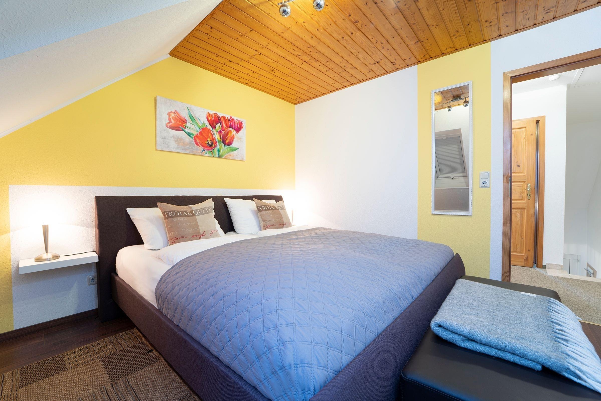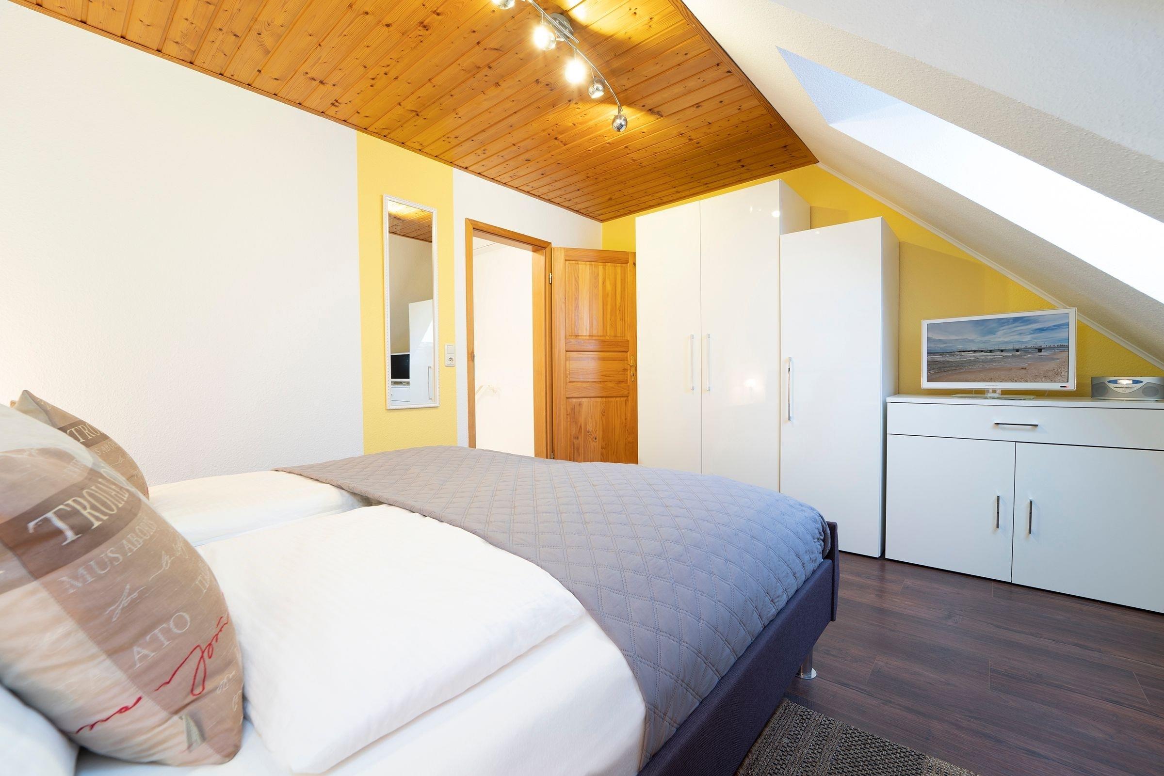 Schlafzimmer 1: 1 Doppelbett (2 x 90x200 cm), Kleiderschrank, Verdunkelungs-Rollos