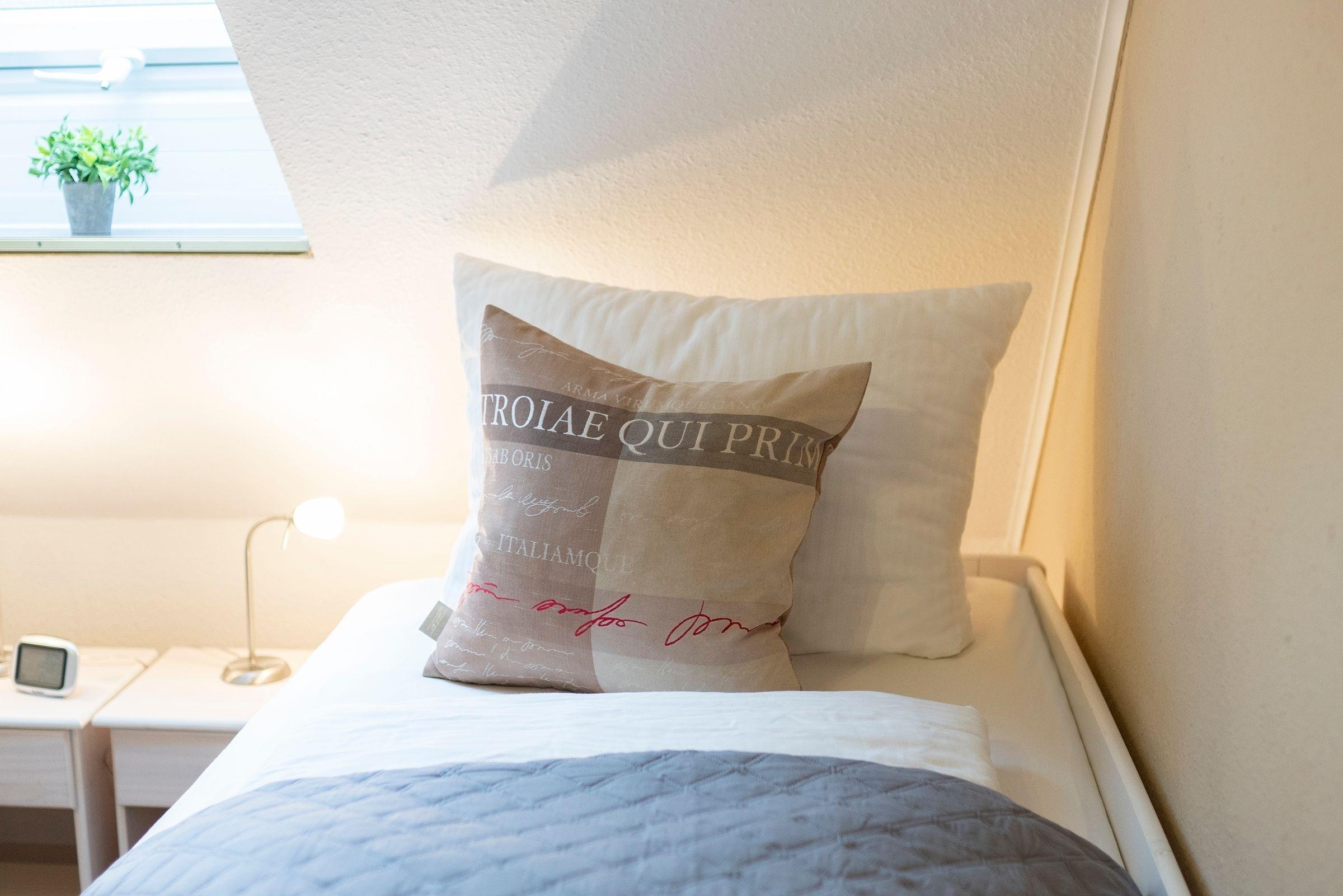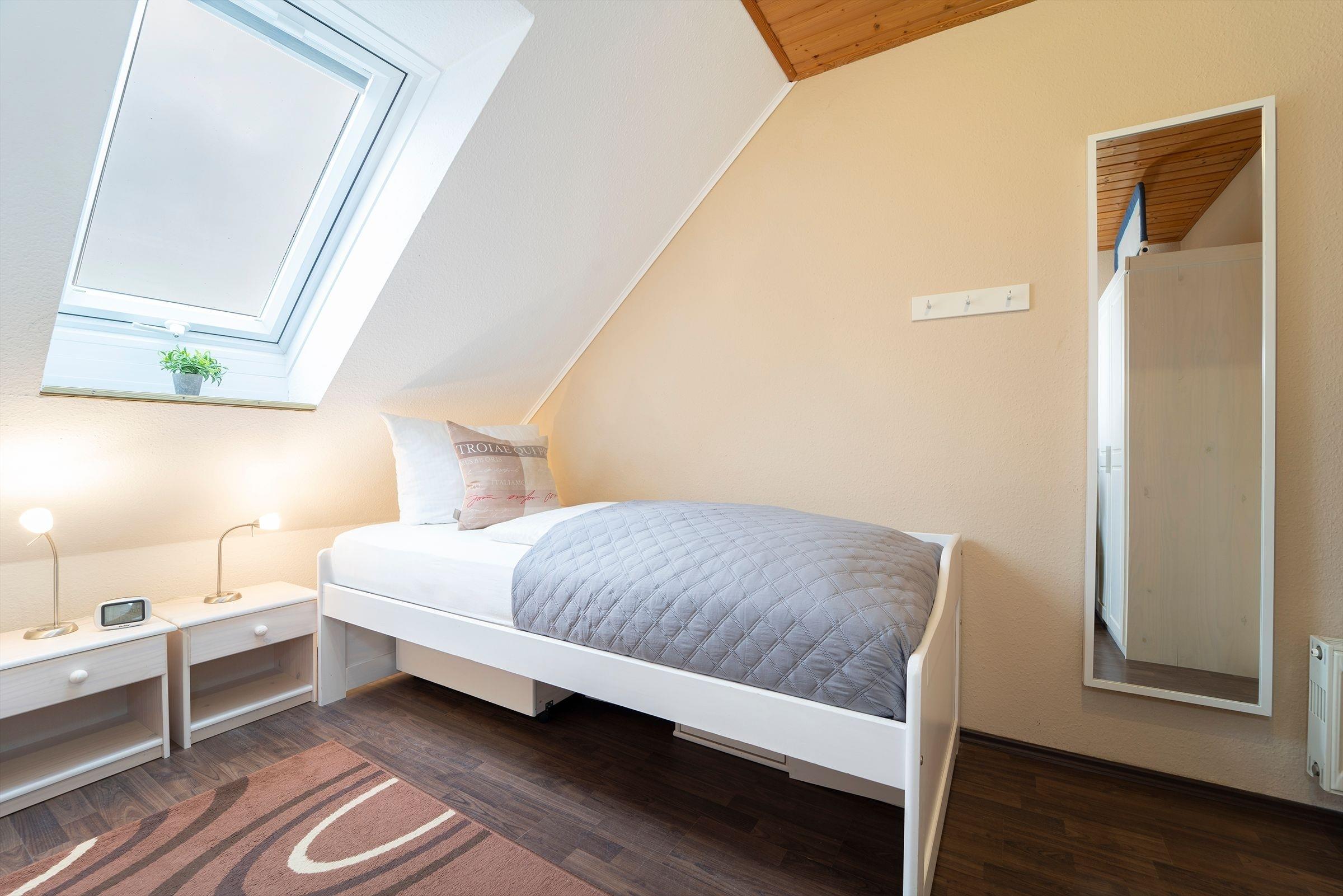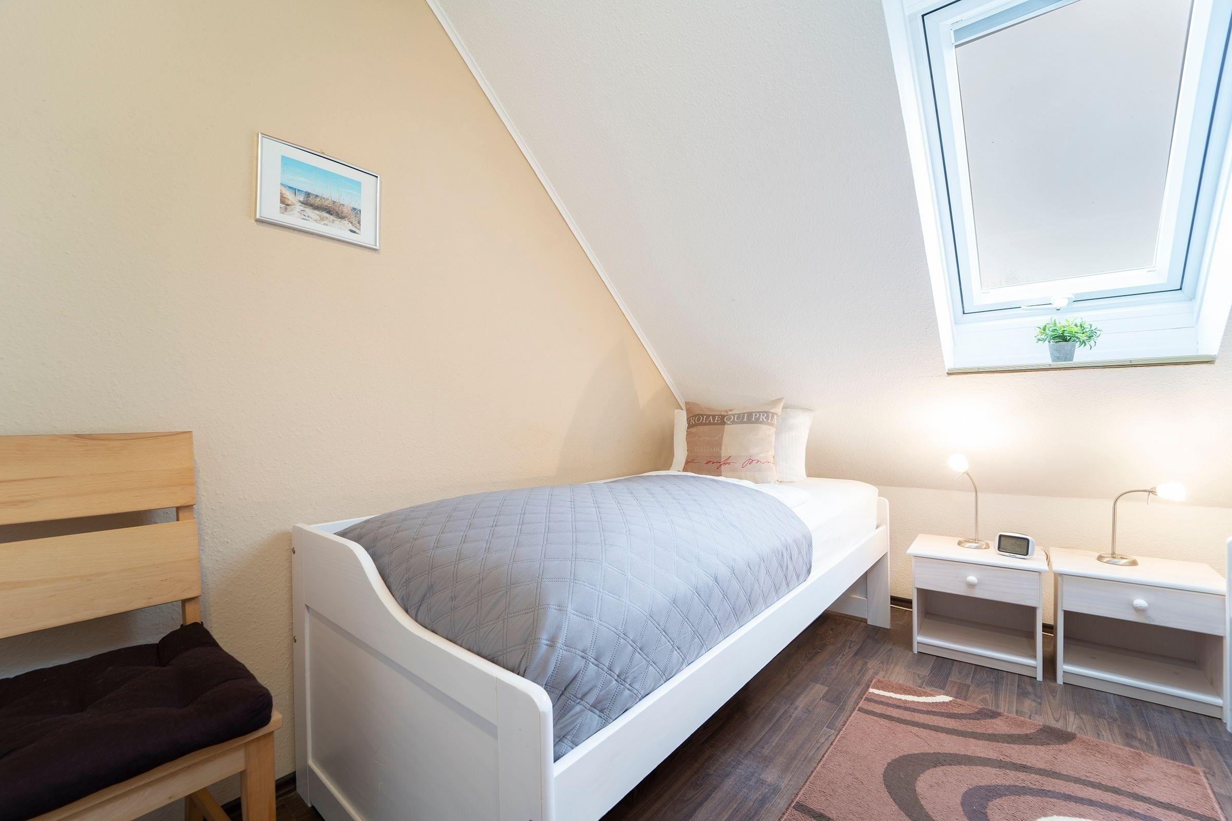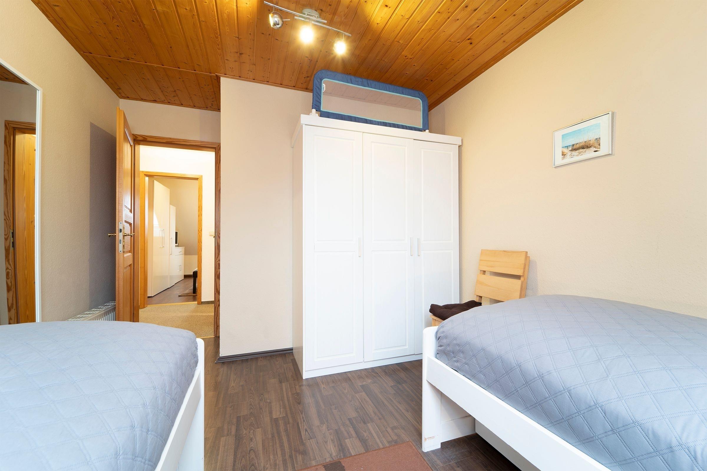 Schlafzimmer 2: 2 Einzelbetten (je 90x200 cm), Kleiderschrank, Lichtschutz (Plissee)