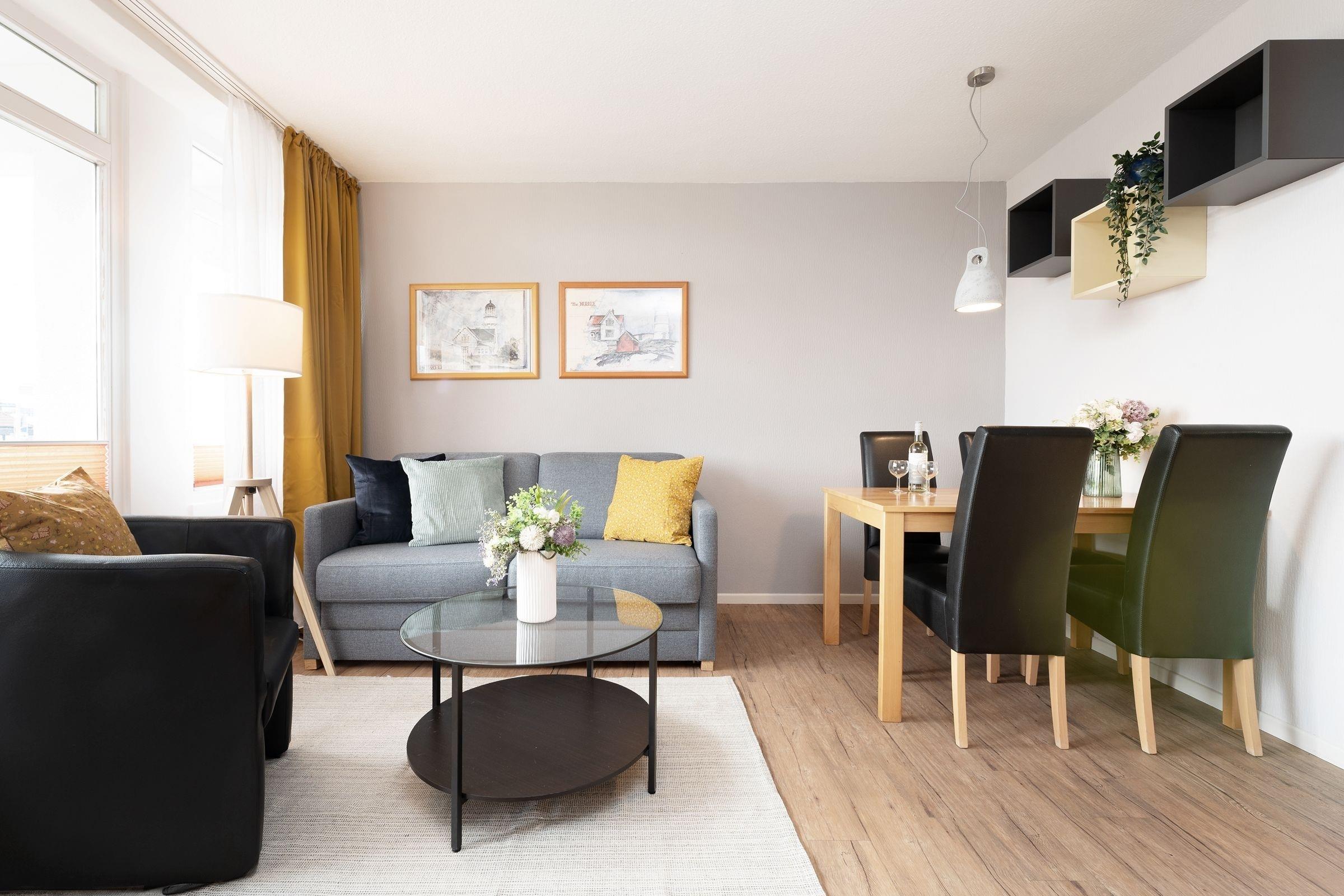 Urlaub in der 1. Reihe von Kellenhusen: 2-Zimmer-Ferienwohnung im Haus Seeblick mit ca. 39 m² Wohnfläche und Terrasse mit Meerblick für bis zu 4 Personen.
