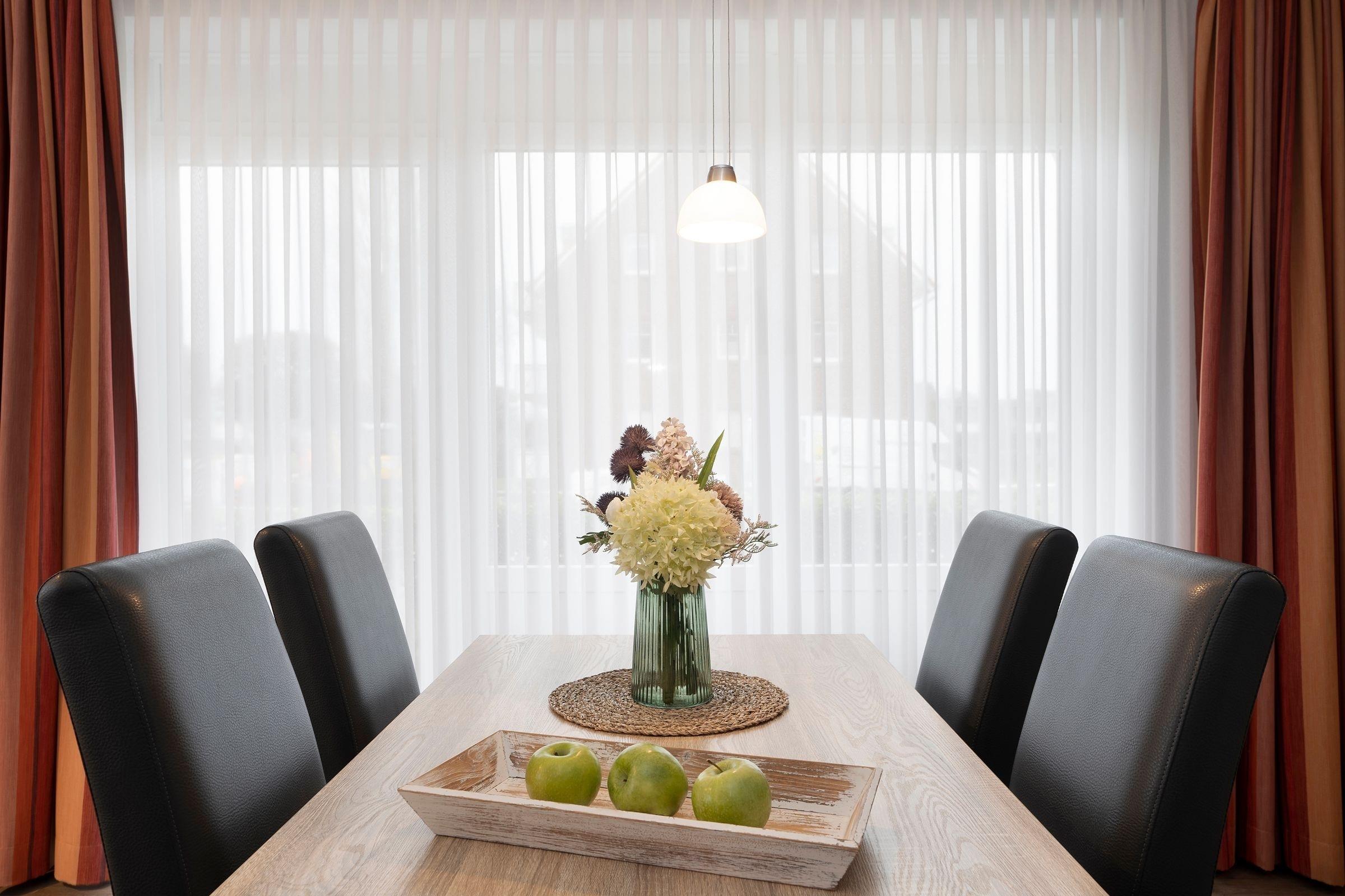 Mobiliar ist einfach aber geschmackvoll und zweckmäßig. Sauber und ordentlich, für 2 Personen perfekt, bei 3 Personen ist die Coach etwas unbequem hart. Der Service von Kraushaar ist super.