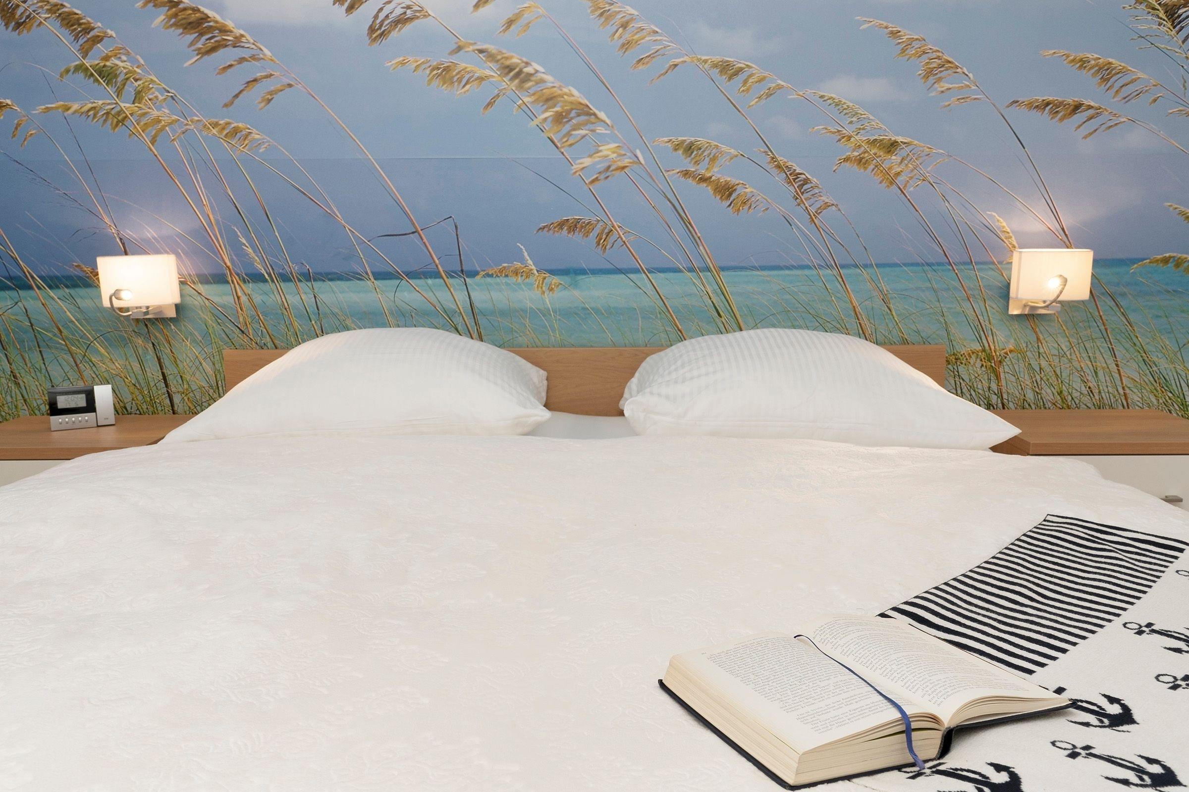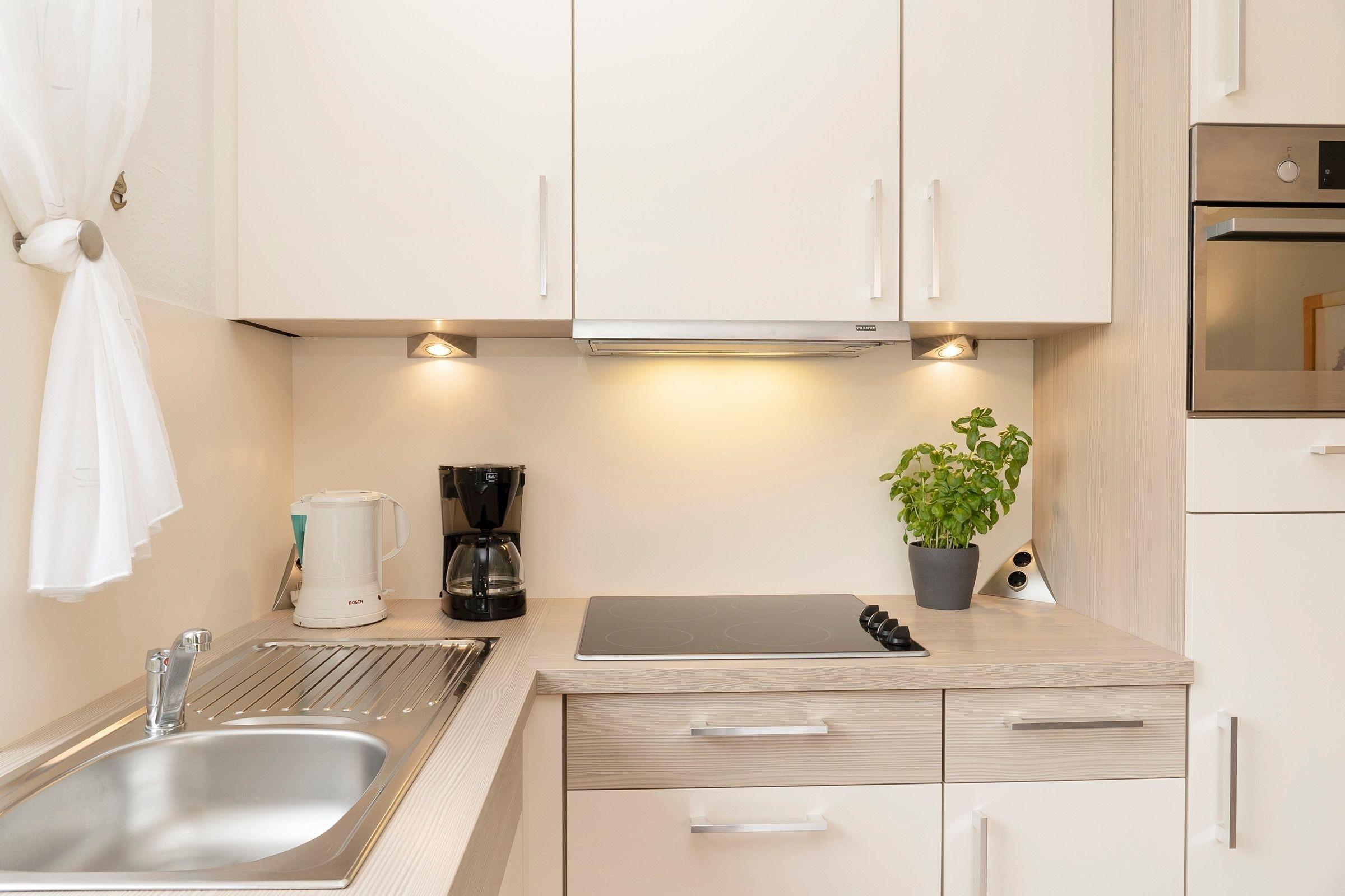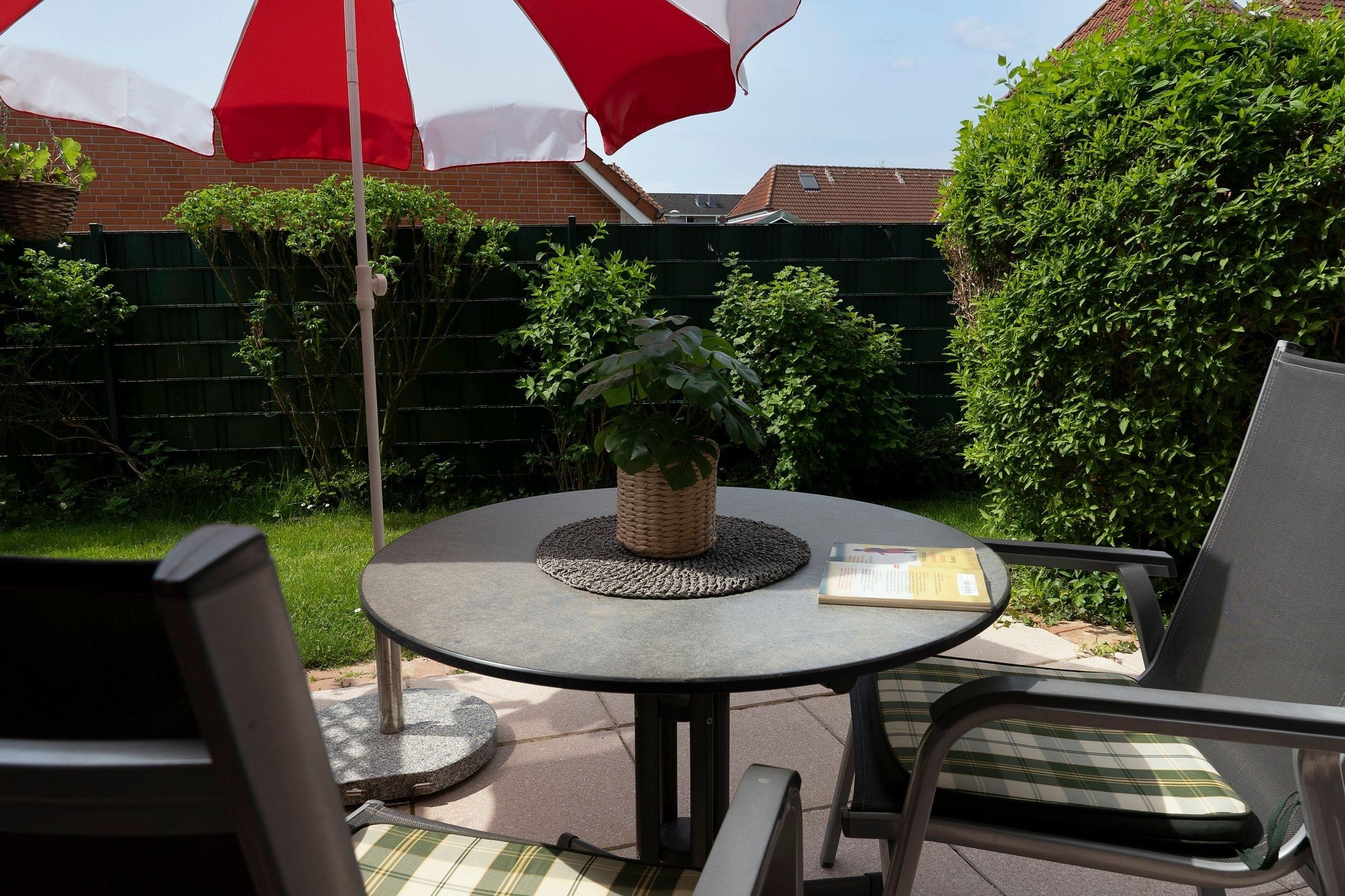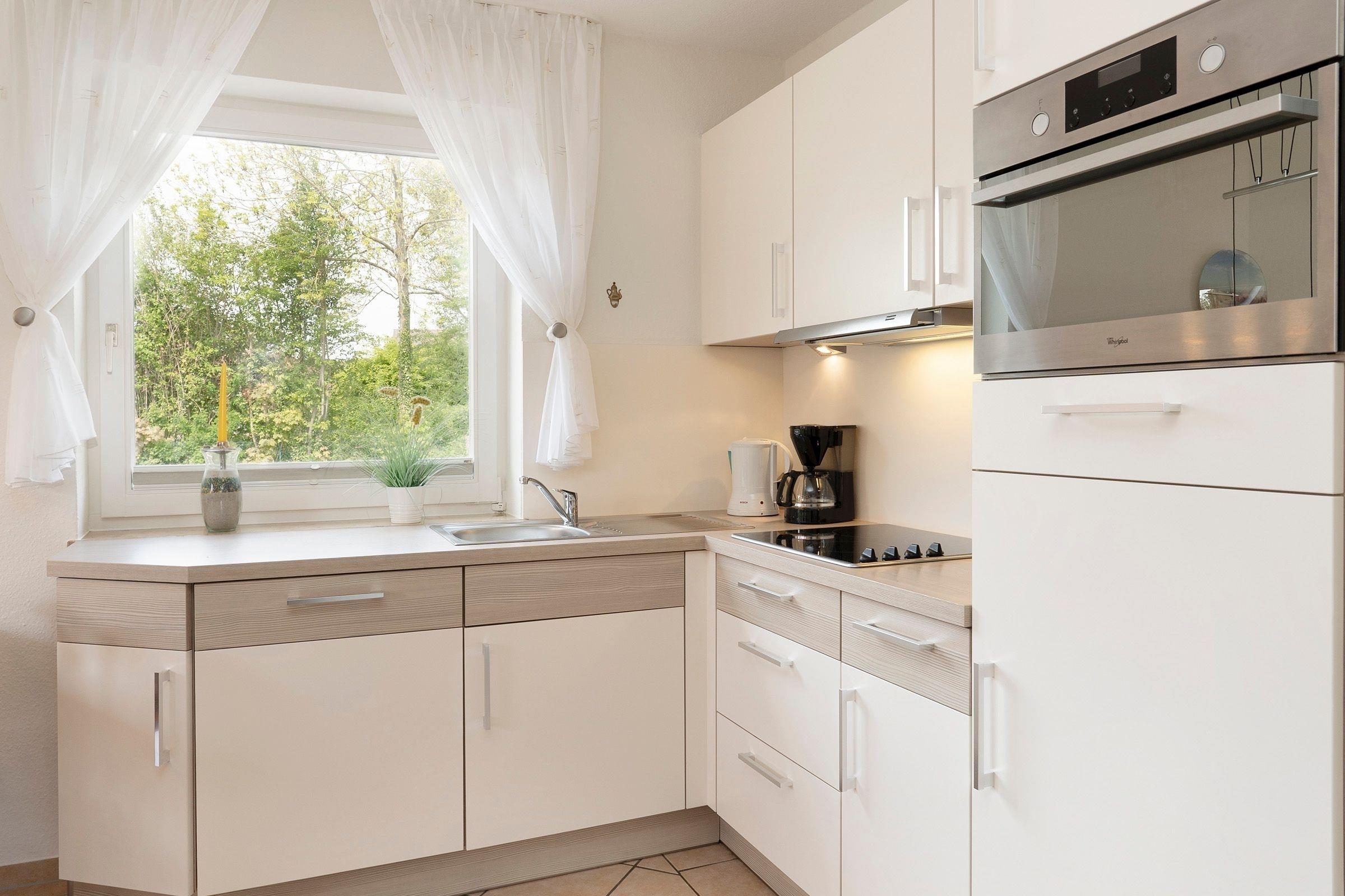 Ankommen und wohlfühlen – die niedliche Ferienwohnung im Appartementhaus Im Sonnenwinkel besticht durch ihre liebevoll ausgesuchte Einrichtung. Kommen Sie herein und nehmen Sie in der gemütlichen Sitz-Ecke Platz. Ob auf dem komfortablen Sofa oder den beiden Sesseln, hier findet jeder seinen Lieblingsplatz vor dem TV-Gerät. (Das Sofa lässt sich ausziehen und kann als Ausweich-Schlafplatz genutzt werden.) Auch die schicke Ess-Ecke ist großzügig gestaltet. Gleich dahinter haben Sie Zutritt auf die schöne Terrasse – wie wäre es hier mit ein paar erholsamen Sonnenstunden? Die Küchenzeile im Wohn- und Ess-Bereich verfügt über eine Spülmaschine und ist insgesamt gut ausgestattet. Angenehme Nachtruhe verspricht das Doppelbett (2x 90x200 cm) im Schlafzimmer. Die wunderbare Foto-Tapete lässt Sie garantiert von der Ostsee träumen. Um die Ecke finden Sie das moderne Duschbad, das einen guten Start in den Tag verspricht. Praktisch: Eine Waschmaschine und ein Trockner stehen Ihnen im Haus kostenfrei zur Verfügung.