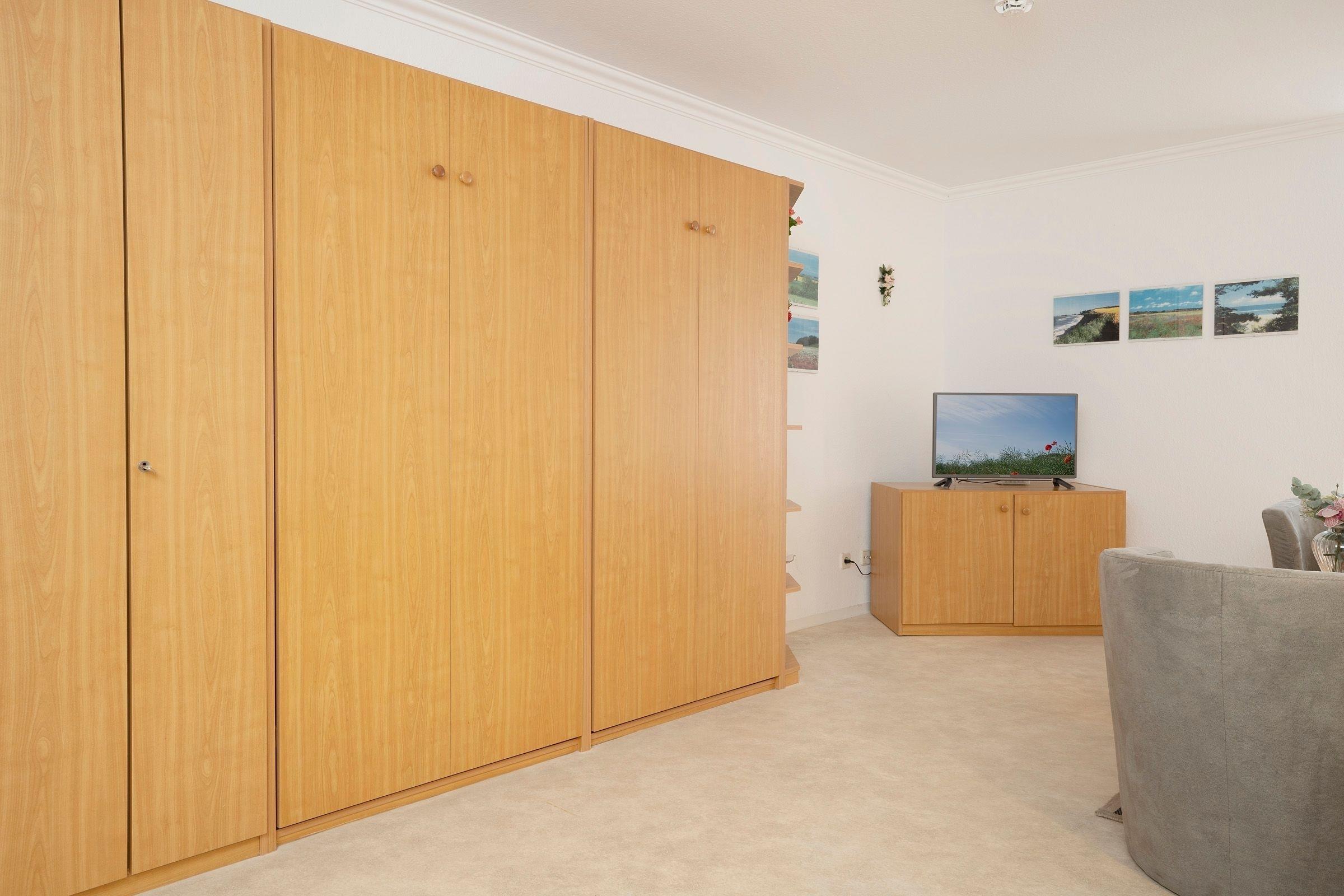 Wohnzimmer: 1 Schrankbett (2x 90x200cm), Kleiderschrank.