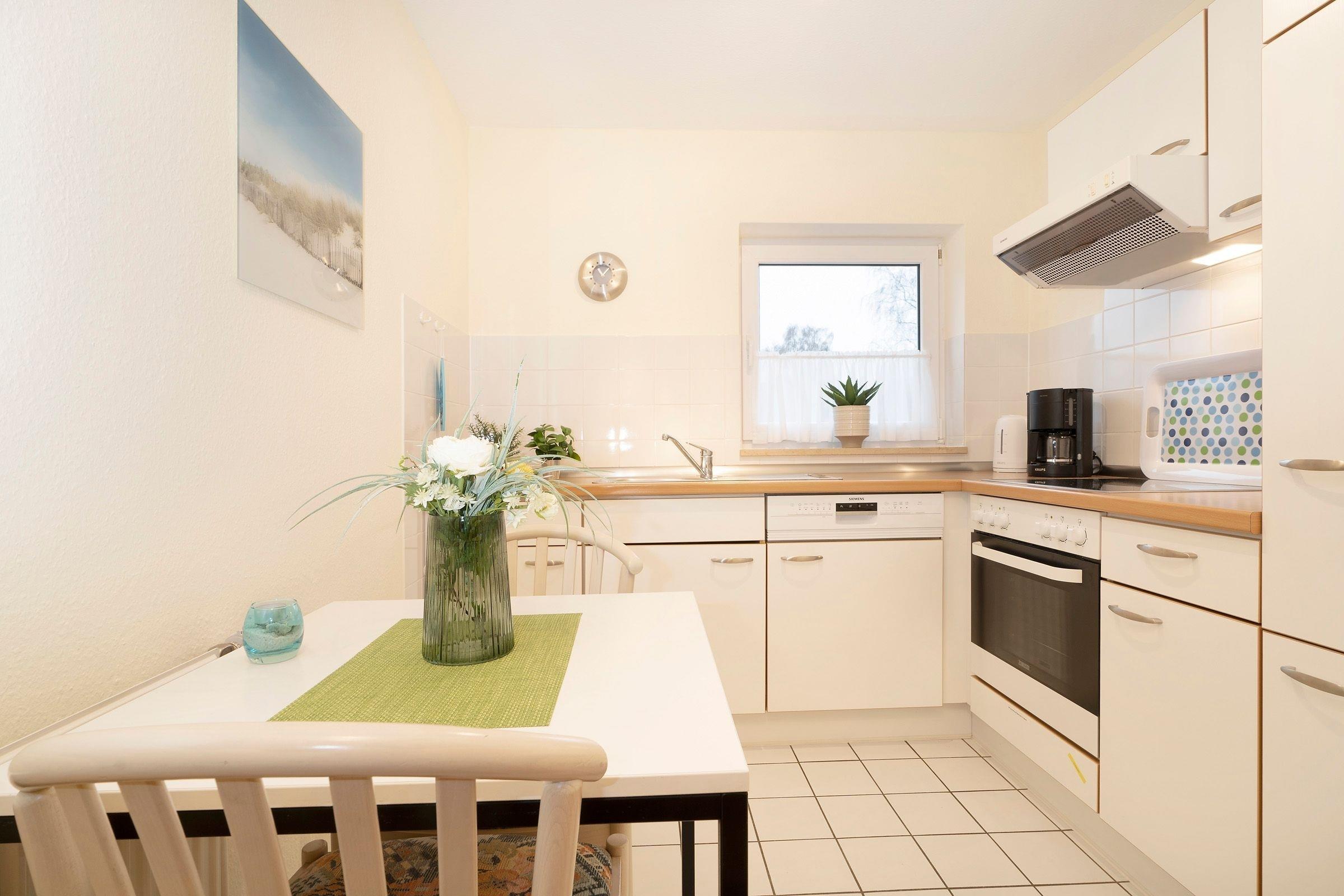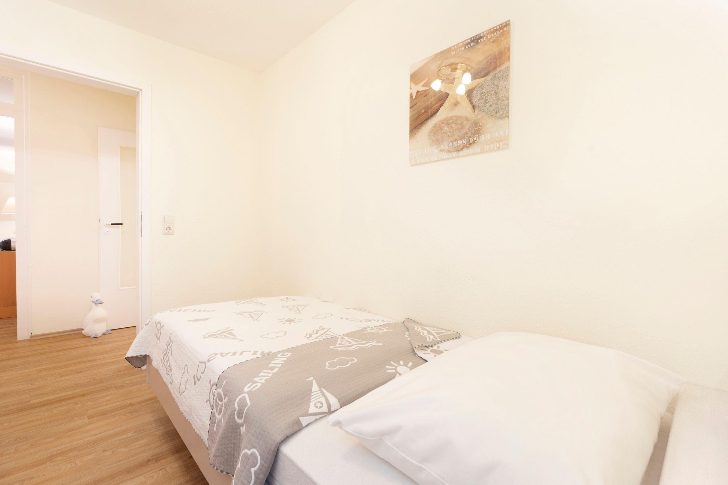 Hell und freundlich präsentiert sich diese schicke Ferienunterkunft im Lindenbuschen 2. Das Wohnzimmer besticht durch seine gemütliche Sofa- und Essecke mit Flachbild-TV und kleinem, möblierten Balkon. In der separaten Küche mit Geschirrspüler können Sie nach Herzenslust Ihre Lieblingsspeisen zubereiten. Für die Nacht stehen Ihnen ein Schlafzimmer mit einem Doppelbett (2x 80x200 cm) sowie ein Schlafzimmer mit einem Einzelbett (90x200 cm) zur Verfügung. Das Duschbad ist hell gefliest.