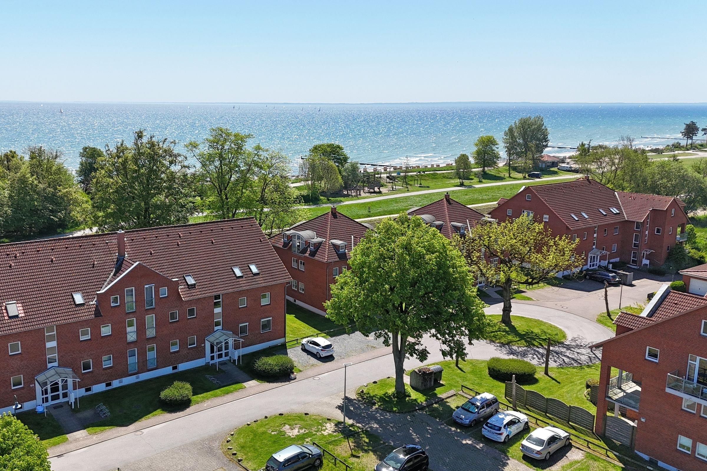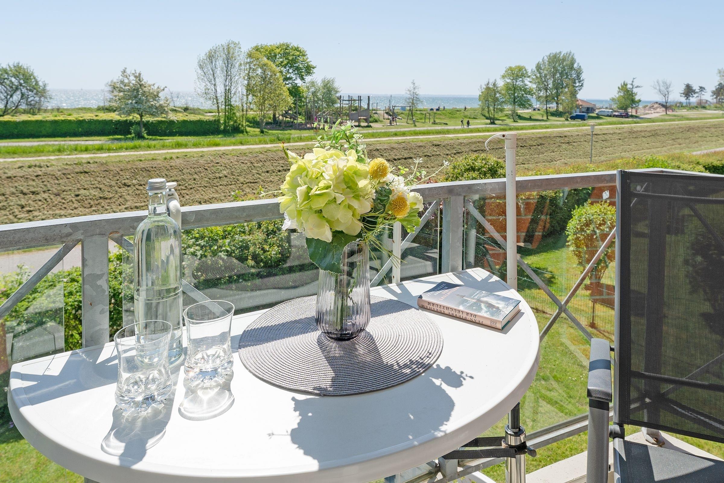 Top-Lage: Gemütliche 2-Zimmer-Ferienwohnung in der 1. Reihe zur Ostsee in Kellenhusen für bis zu 4 Personen im 1. Stock mit Balkon, einer Wohnfläche von ca. 47 m² – und Meerblick.