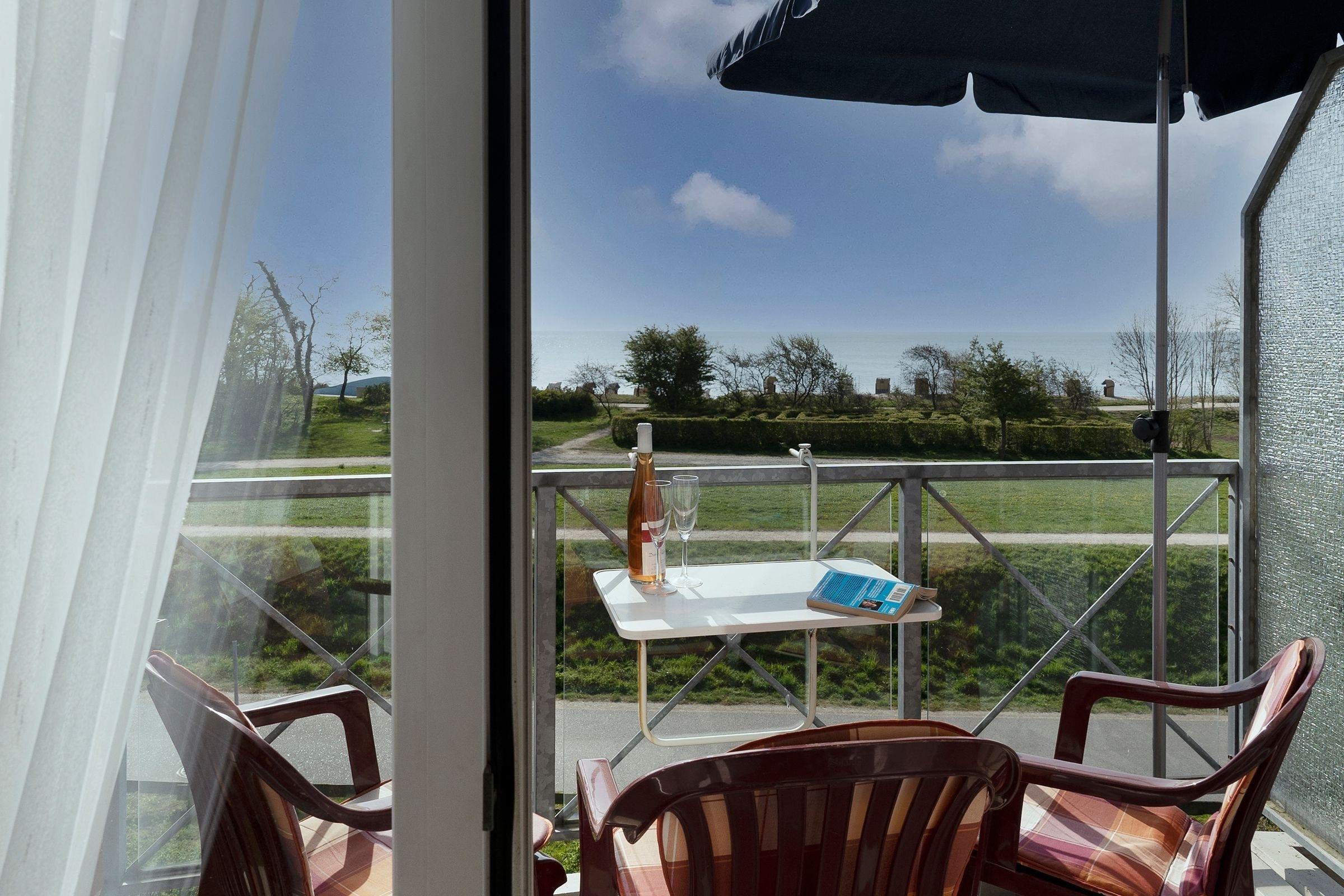 Traum-Lage: Helle 2-Zimmer-Ferienwohnung in der 1. Reihe zur Ostsee in Kellenhusen für bis zu 4 Personen im Dachgeschoss (2. Stock) mit Balkon, einer Wohnfläche von ca. 47 m² – und Meerblick.