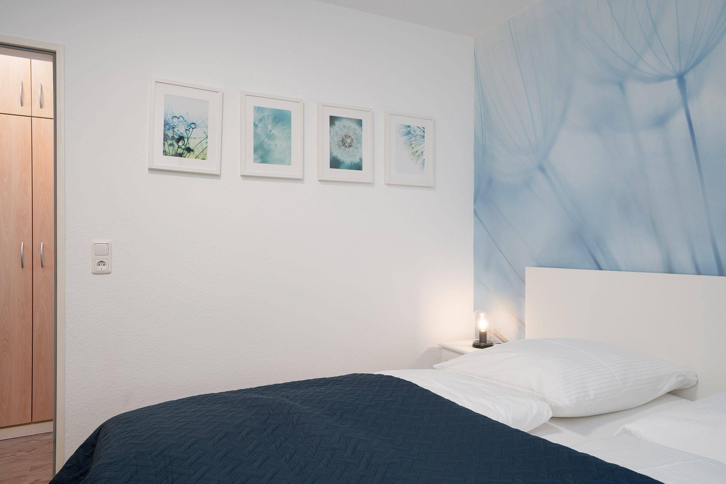 Schlafzimmer: 1 Doppelbett (2x 90x200 cm, Matratzen mit zwei verschiedene Härtegraden H2 oder H3 zum Wenden), Kleiderschrank, Verdunkelung (Rollo)