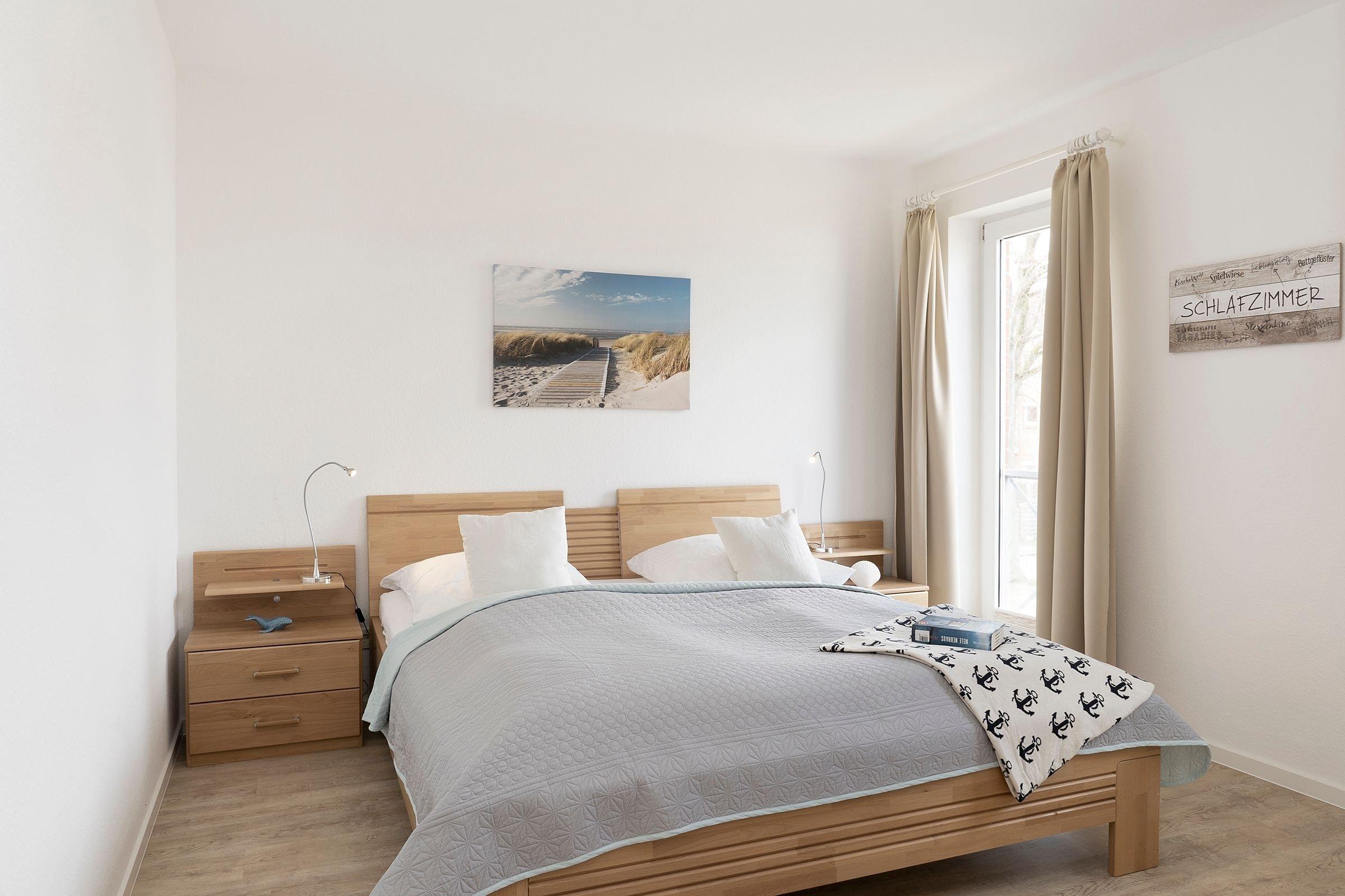 Schlafzimmer: 1 Doppelbett (2x 90x200 cm), Kleiderschrank, Verdunkelung