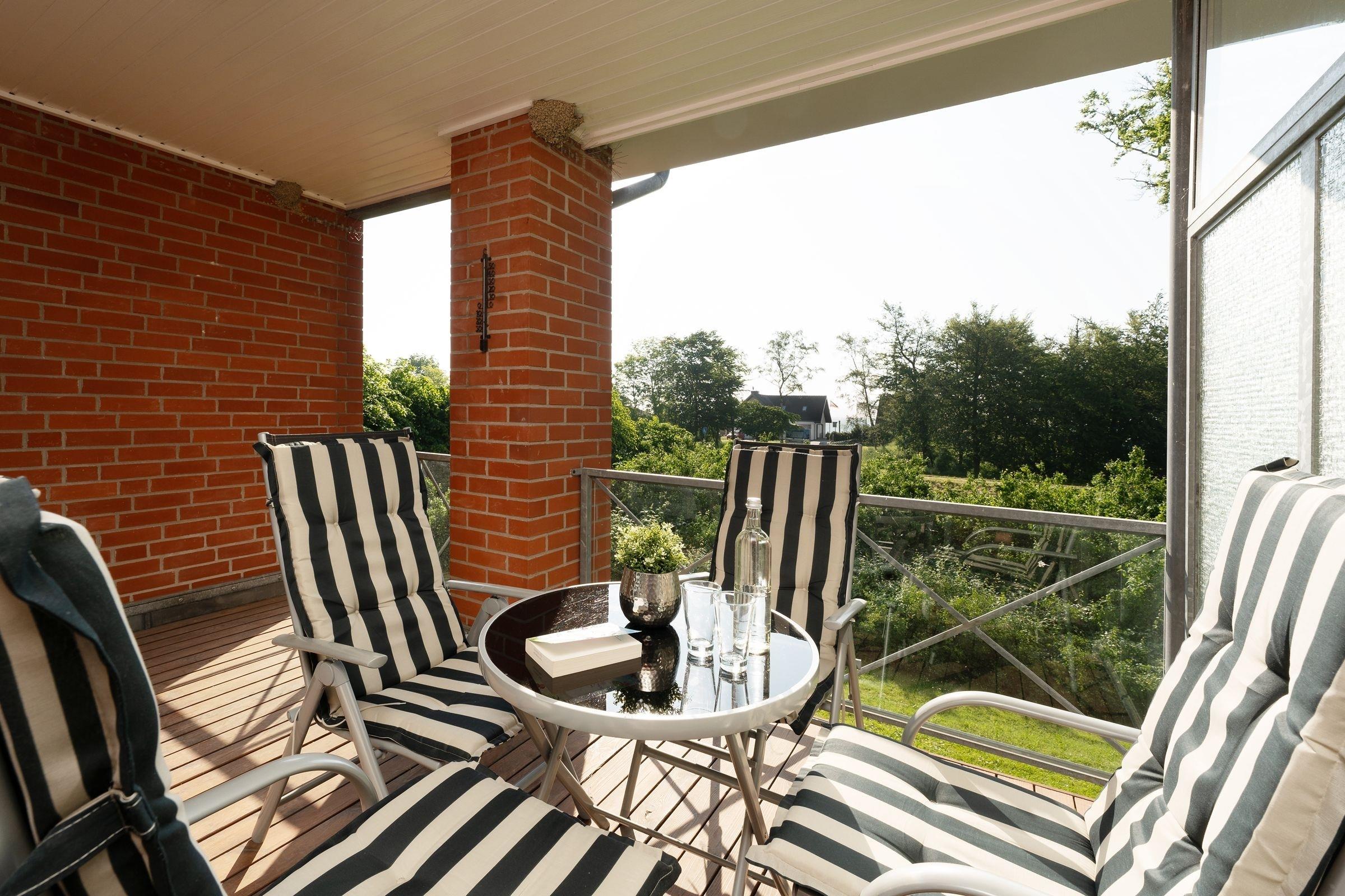 Urlaub in der 1. Reihe in Kellenhusen: Zauberhafte 2-Zimmer-Ferienwohnung im 1. Stock mit Balkon und saisonalem Teilmeerblick sowie einer Wohnfläche von ca. 42 m² für bis zu 4 Personen.