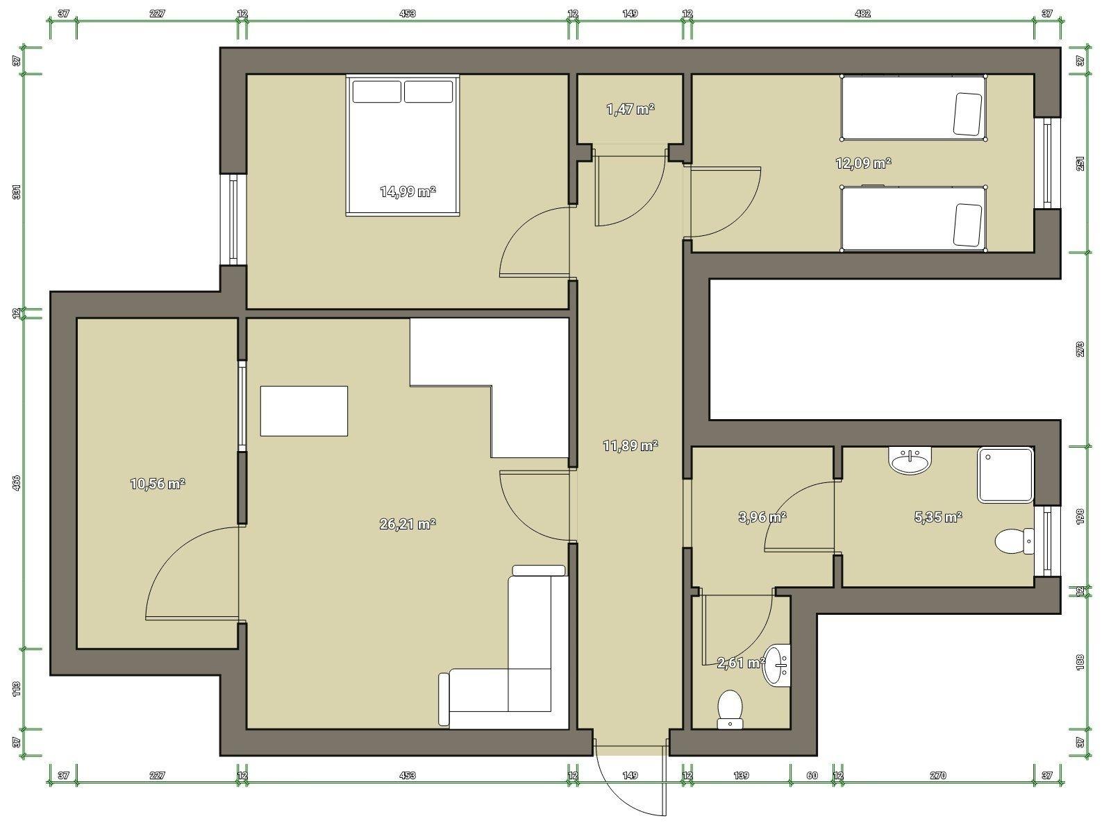 Diese schöne 3-Zimmer-Erdgeschosswohnung bietet mit einer Wohnfläche von ca. 57 m², zwei separaten Schlafzimmern, einem Wohn-/Schlafraum mit integrierter Küche, Duschbad und möblierter Terrasse ausreichend Platz und Komfort für bis zu 4 Erwachsene und 1 Kind.