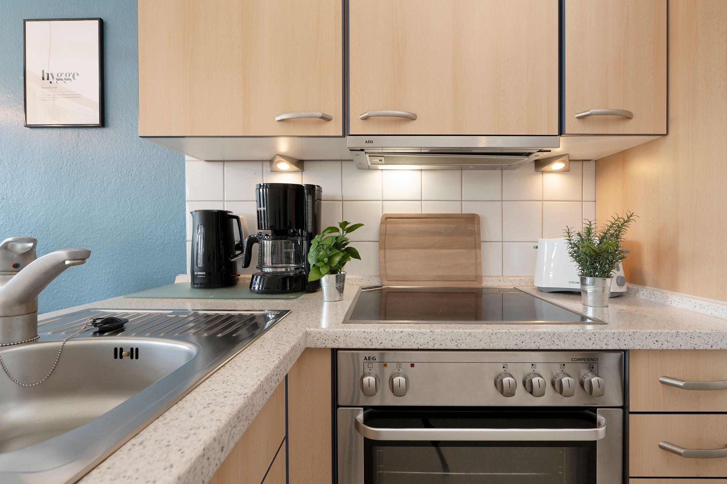 Klein und fein – durch ein durchdachtes Wohnkonzept punktet die Wohnung Strandoase in der gepflegten Wohnanlage Villa Hoffnung. Im Wohn- und Essbereich erwartet Sie eine komfortable Sitz-Ecke mit TV-Gerät sowie eine gemütliche Ess-Ecke. Die gut ausgestattete Küche mit Geschirrspüler ist offen gestaltet und bietet sämtliche Annehmlichkeiten, die ein Hobby-Koch im Urlaub braucht. Ein kleiner Tresen fungiert als Raumteiler und sorgt so für eine angenehme Atmosphäre. Nach einem herrlichen Urlaubstag an der Ostseeküste stehen Ihnen für die Nacht 3 Schlafräume zur Verfügung: In einem Zimmer befindet sich eine Schlafcouch (ca. 140x200 cm) für eine Person und in einem weiteren Zimmer steht ein bequemes Doppelbett (2x 90x200 cm). Von hier aus haben Sie Zugang zu einem weiteren kleinen Schlafraum mit einem Einzelbett (90x200 cm). Das Duschbad ist modern und komfortabel.