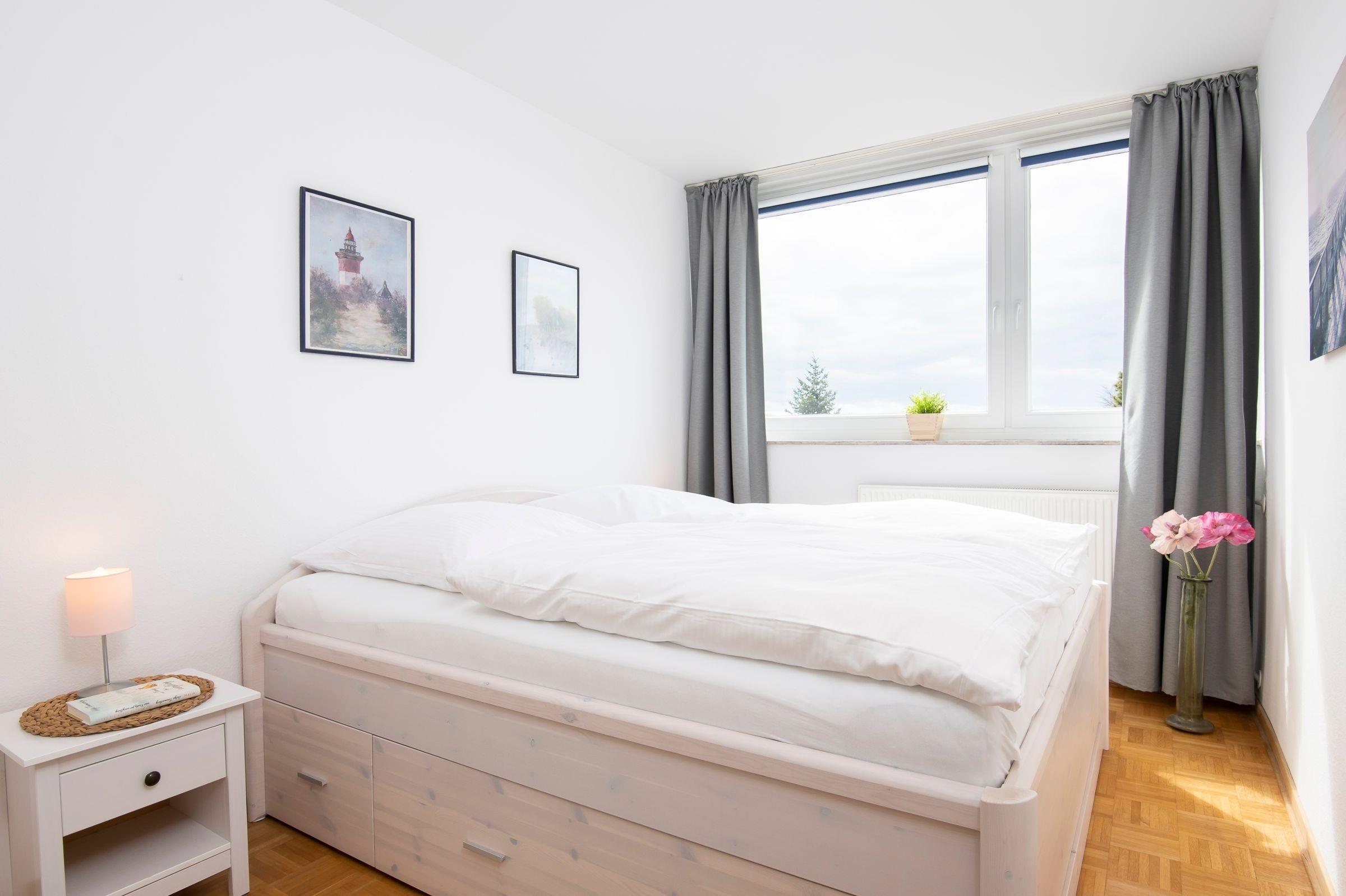 Treten Sie ein in den lichtdurchfluteten Wohn- und Essbereich. Hier sind ein Esstisch, ein Sofa, zwei Sessel sowie ein Fernseher vorhanden. Das Sofa lässt sich abends schnell und einfach ausziehen und dient somit als Schlafmöglichkeit (160x200 cm). Der Wohnbereich lässt sich mit Gardinen verdunkeln. Das separate Schlafzimmer mit Fenster, Kleiderschrank und komfortablen Doppelbett (2 x 90x200 cm) bietet weiterhin Platz für 2 Personen. Damit Sie Ihren wohlverdienten Schlaf erhalten wurden hier ebenfalls Verdunklungsgardinen und -rollos angebracht. In der kleinen, geschlossenen Küche ist alles vorhanden, was Sie zum Kochen benötigen. Die Mahlzeiten können Sie dann entspannt auf dem möblierten Balkon zu sich nehmen und dabei den seitlichen Blick auf die Ostsee genießen ... Im Badezimmer mit WC befindet sich eine Badewanne mit Dusche, in der Sie sich von einem erlebnisreichen Urlaubstag erholen können.