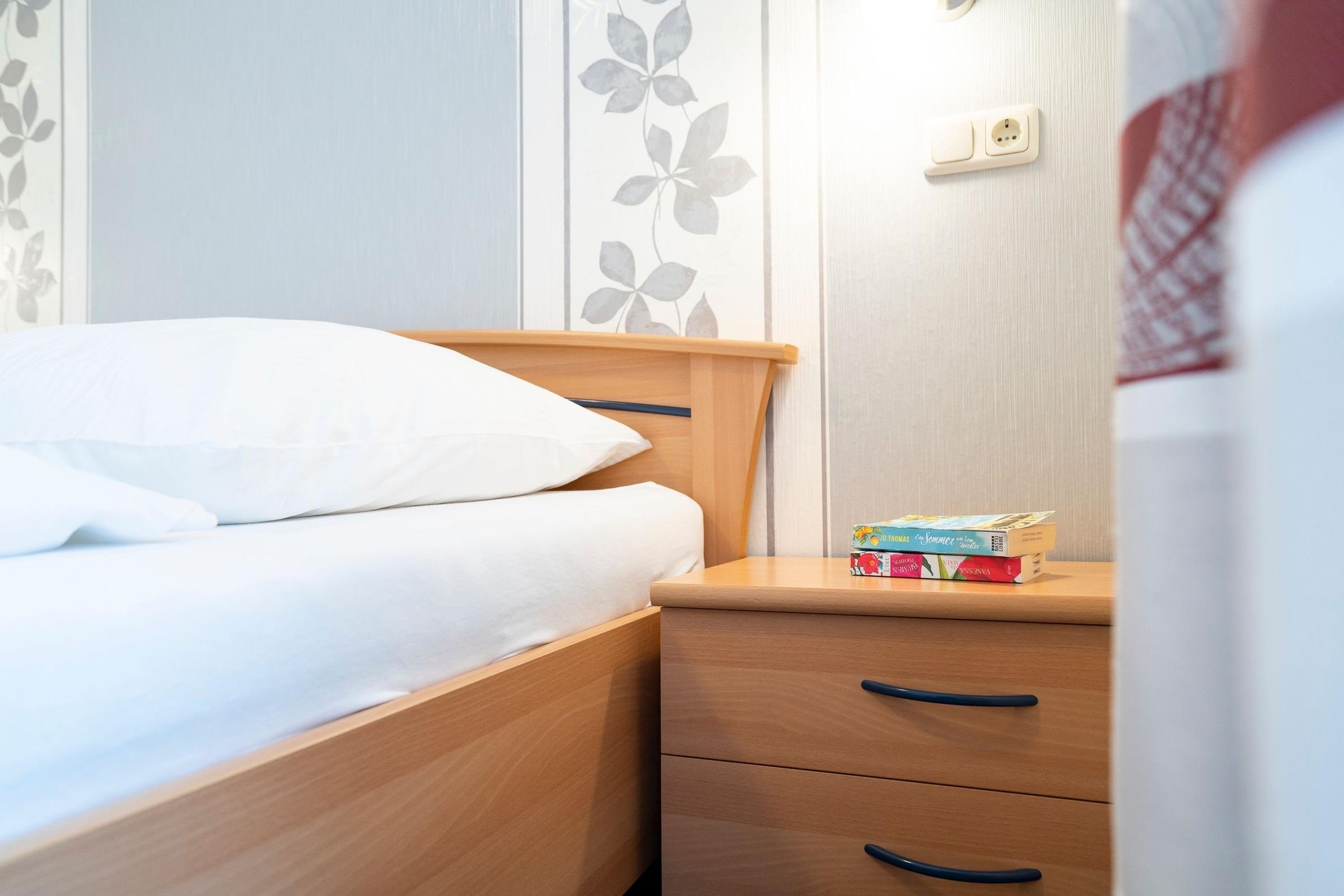 Im gemütlichen Wohn- und Essbereich können Sie entspannt die Füße hochlegen oder den Urlaubstag bei einem leckeren Essen Revue passieren lassen. Dank Flachbild-TV müssen Sie auch im Urlaub auf Ihre Lieblingsserie nicht verzichten. Für den dritten Urlaubsgast lässt sich das Sofa in eine kuschelige Schlafstätte verwandeln (ca. 150x200 cm). An lauschigen Abenden können Sie bei einem guten Glas Wein auf der möblierten Terrasse sitzen. Diese ist natürlich mit Gartenmöbeln und Sonnenschirm ausgestattet. Im Gemeinschaftsgarten steht allen Gästen des Hauses darüber hinaus ein Kohlegrill zur Verfügung. Über den kostenlosen WLAN-Anschluss bleiben Sie auch im Urlaub erreichbar und können Ihre Lieben daheim mit Urlaubsfotos versorgen. Die helle Küche eignet sich perfekt, um Restaurantbesuche und Selbstverpflegung im Urlaub zu kombinieren. Kleine Gerichte und Snacks lassen sich hier problemlos zubereiten. Im separaten Schlafzimmer mit Kleiderschrank wartet ein komfortables Doppelbett auf Sie (2x 90x190 cm). Im Tageslichtbad mit Dusche und Spiegelschrank starten Sie erfrischt in den Tag.