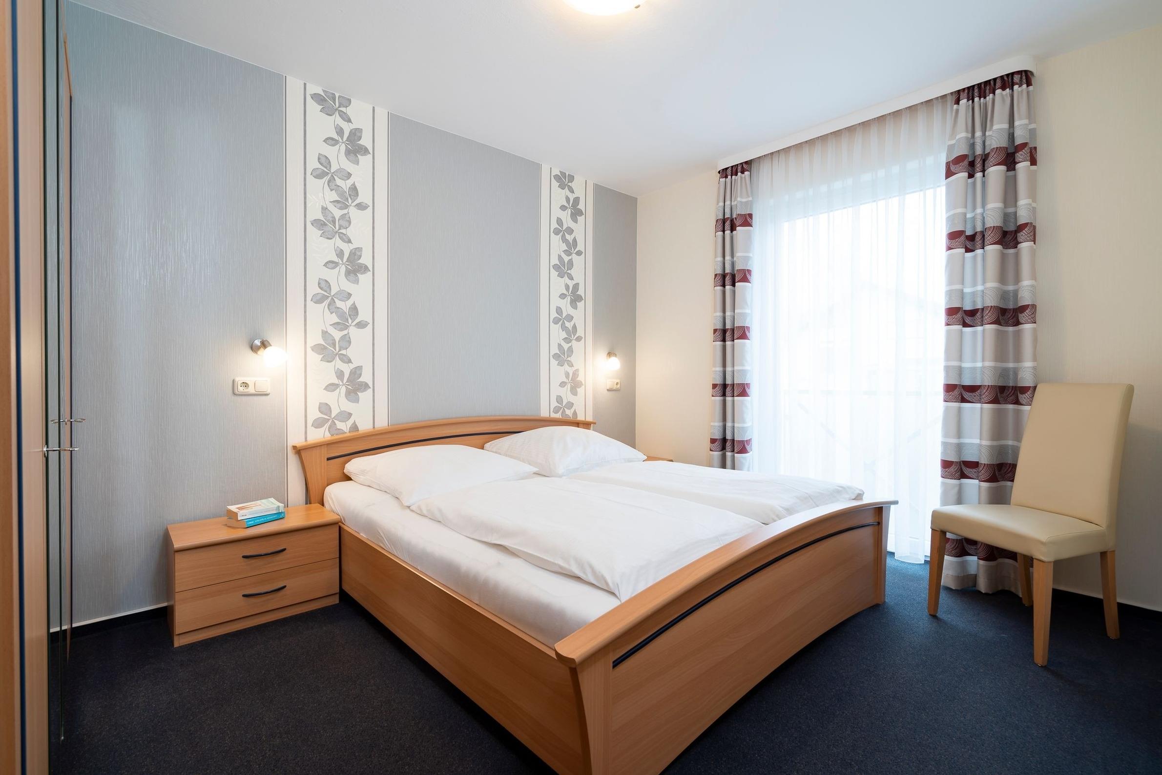 Schlafzimmer: 1 Doppelbett (2x 90x190 cm), Verdunkelung (Rollläden), Platz für Babybett