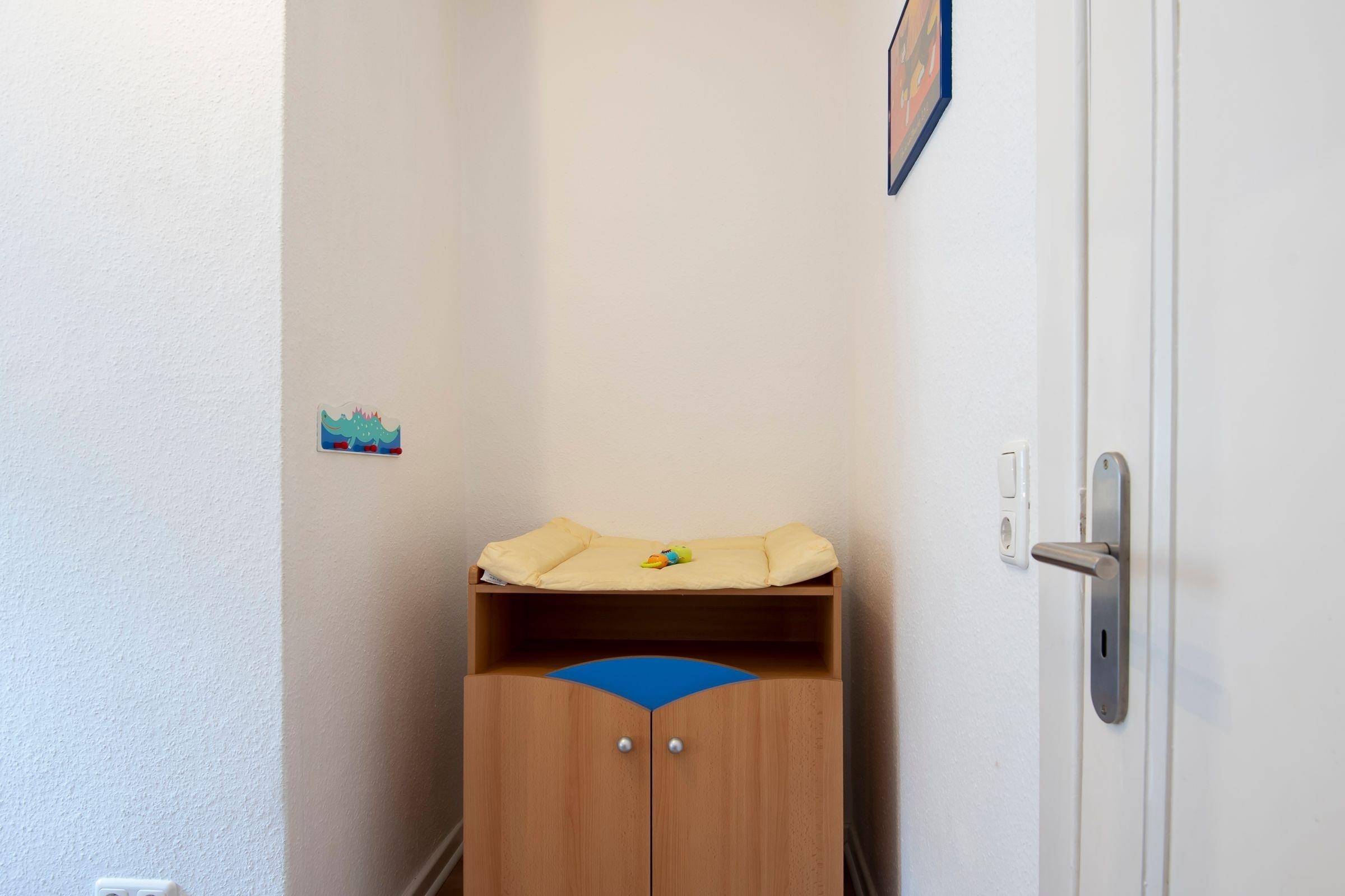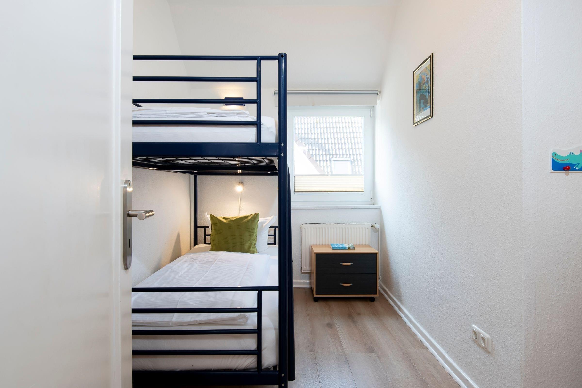Schlafzimmer 4: 1 Etagenbett (2x 90x200 cm), Plissees und Rollos vorhanden, Kommode und Wickeltisch