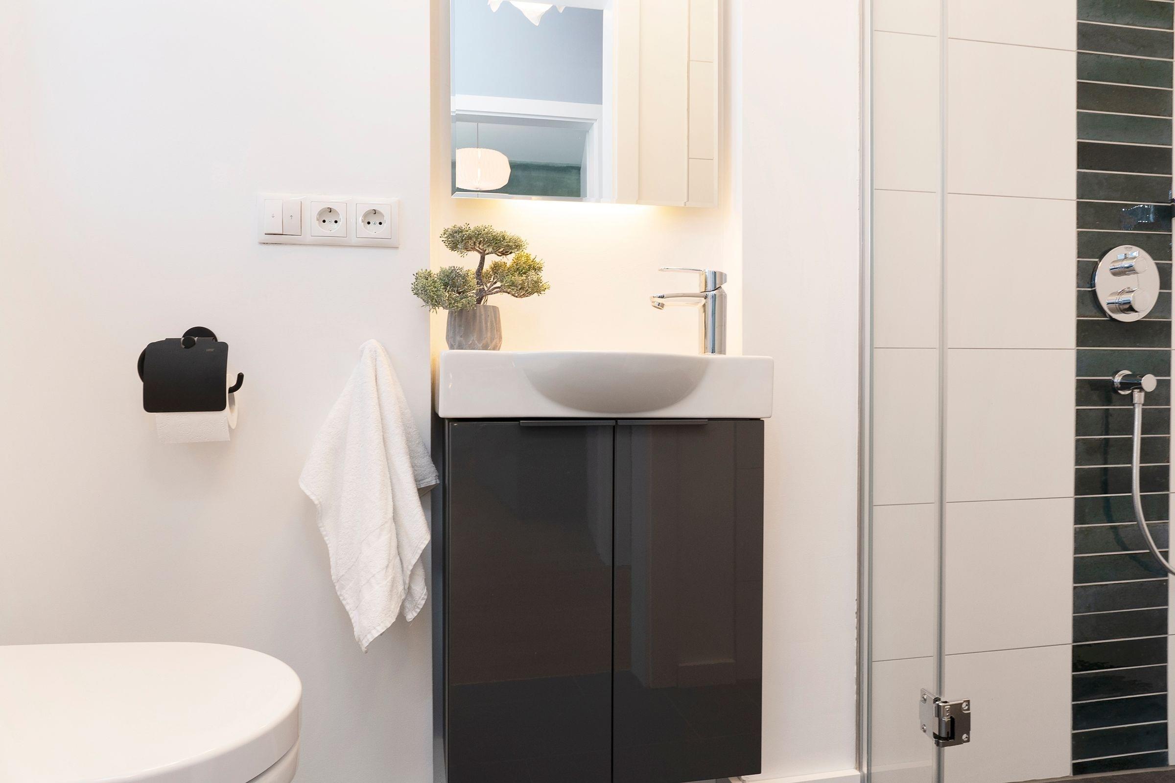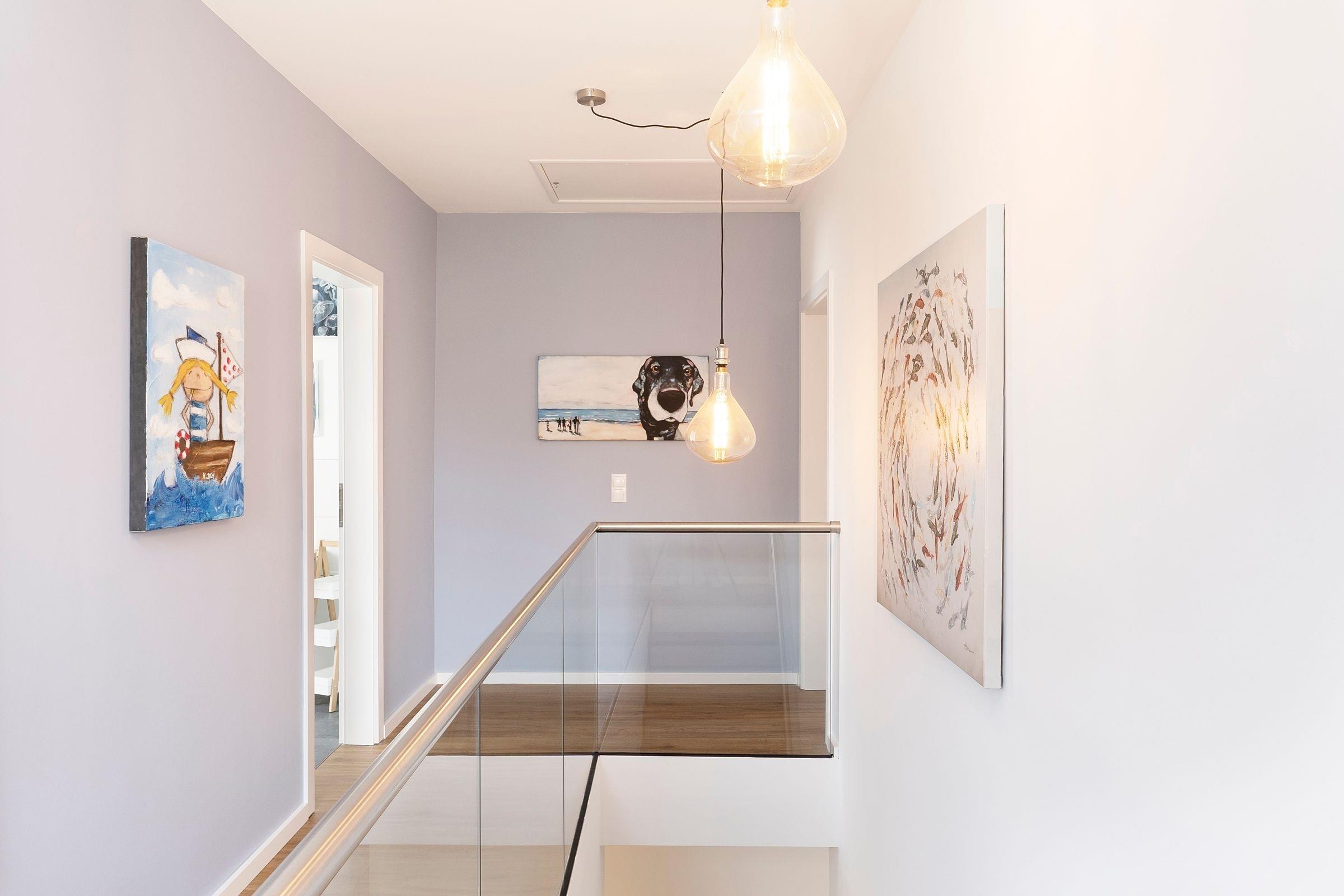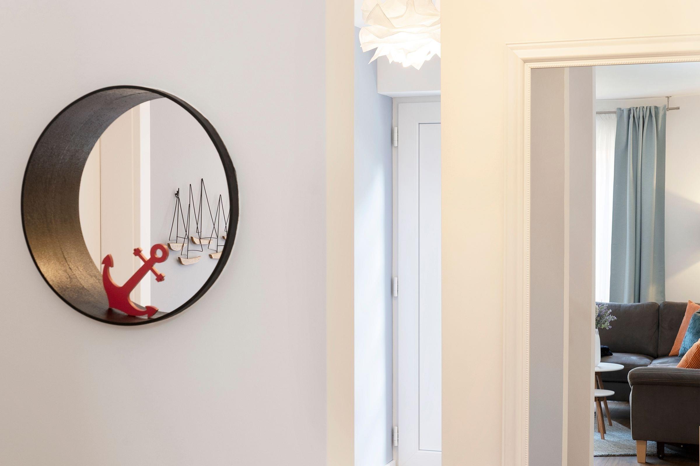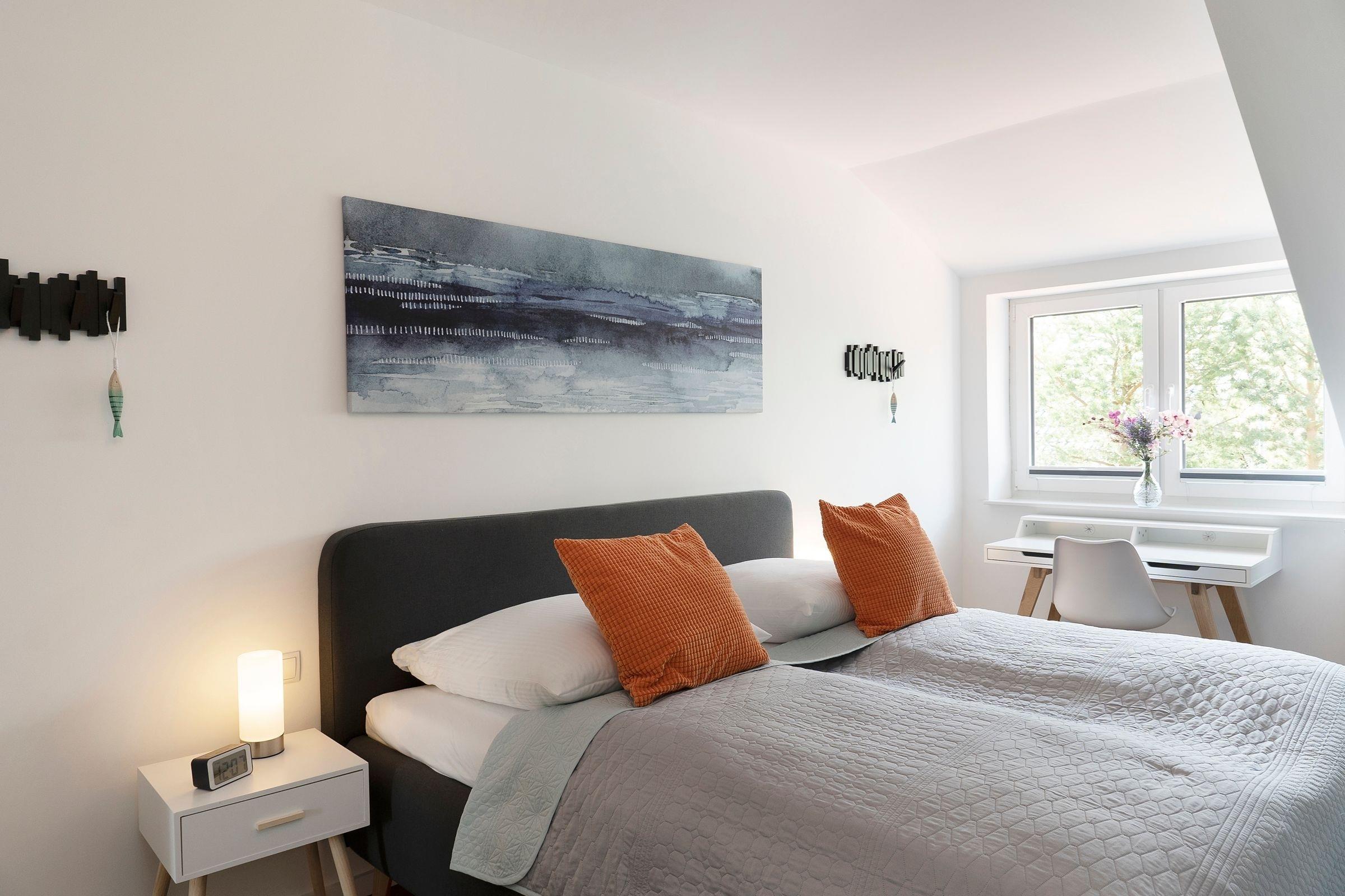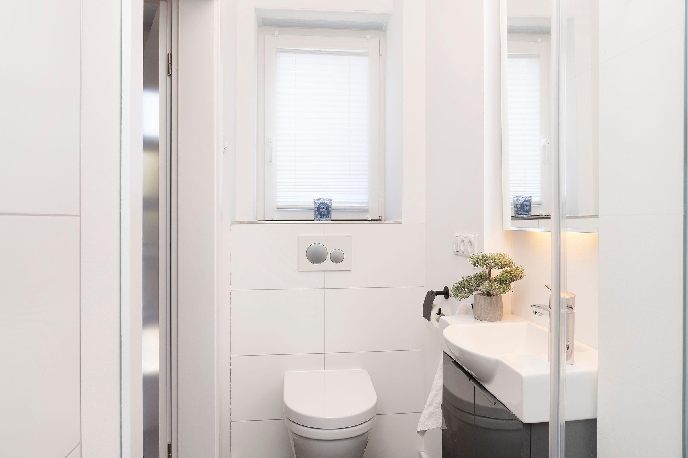 Das Herzstück dieses modern eingerichteten Feriendomizils bildet das zum Essbereich und zur Küche offen gestaltete, großzügige Wohnzimmer. Hier können Sie gemeinsam kochen, essen, lachen und die Seele baumeln lassen. Für gemeinsame Spieleabende finden Sie hier eine liebevoll zusammengestellte Auswahl an Gesellschaftsspielen. Die drei individuell eingerichteten Schlafzimmer mit jeweils eigenem TV bilden die perfekten Rückzugsorte. Im Erdgeschoss finden Sie ein Schlafzimmer mit einem Boxspring-Einzelbett (100x200 cm). Und im Obergeschoss sind die beiden Schlafräume jeweils mit einem Doppelbett (2x 80x200 cm bzw. 2x 90x200 cm) ausgestattet. Dank praktischer Außenjalousien bzw. Plissees sind Sie nachts bestens abgeschirmt und können sich auf einen erholsamen Schlaf freuen. Sie haben viel Programm für den nächsten Urlaubstag geplant? Dank der zwei modernen Duschbäder kommt keine Hektik auf und Sie starten entspannt in den Tag. Neben den ebenerdigen Duschen runden hier gemütliche Fußbodenheizungen das Wohlfühlerlebnis ab. Im Strandkorb auf der Terrasse lassen Sie gemütlich den Tag ausklingen - genießen Sie hier die gesunde Ostseeluft bei einem gut temperierten Glas Wein aus dem Weinkühlschrank.