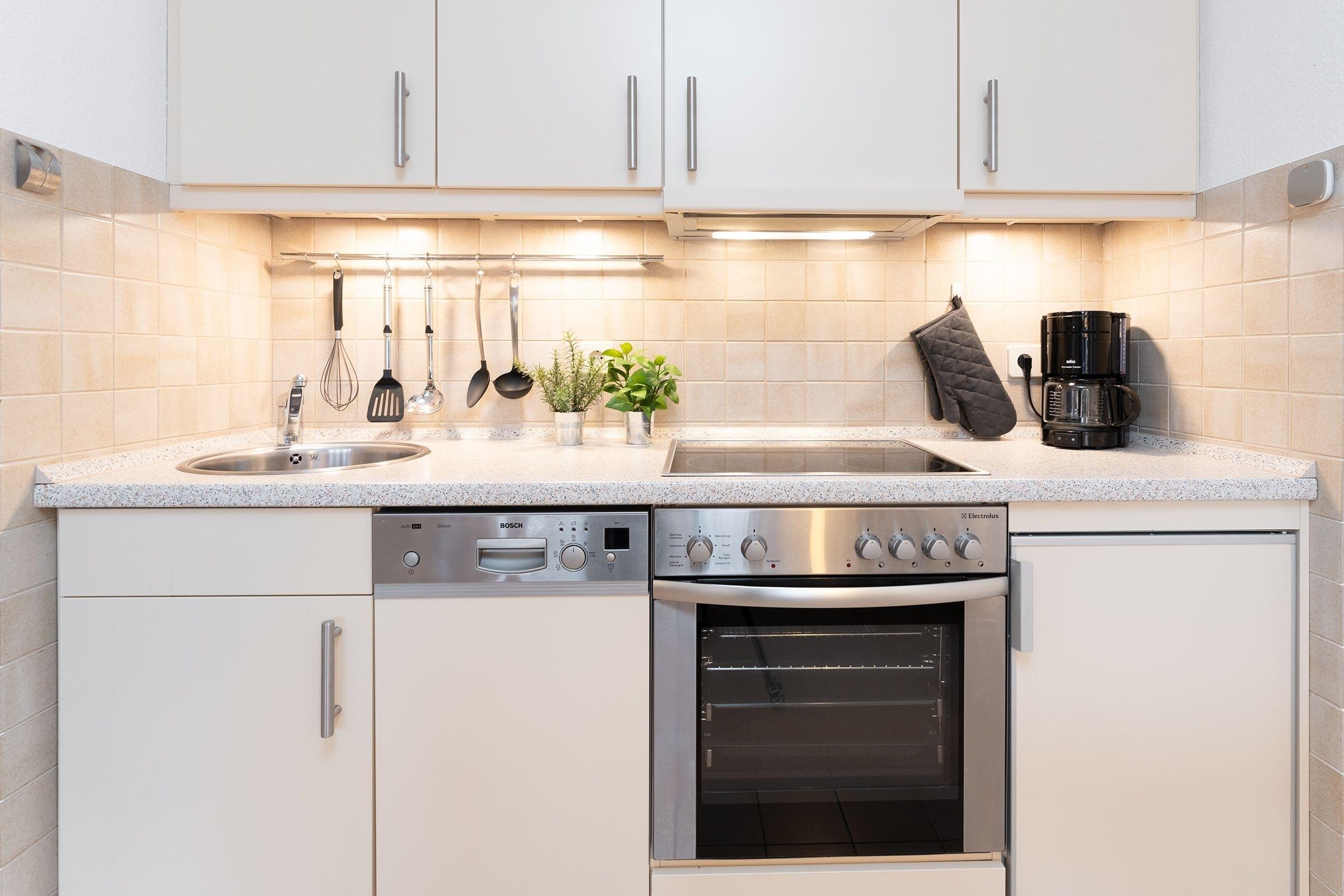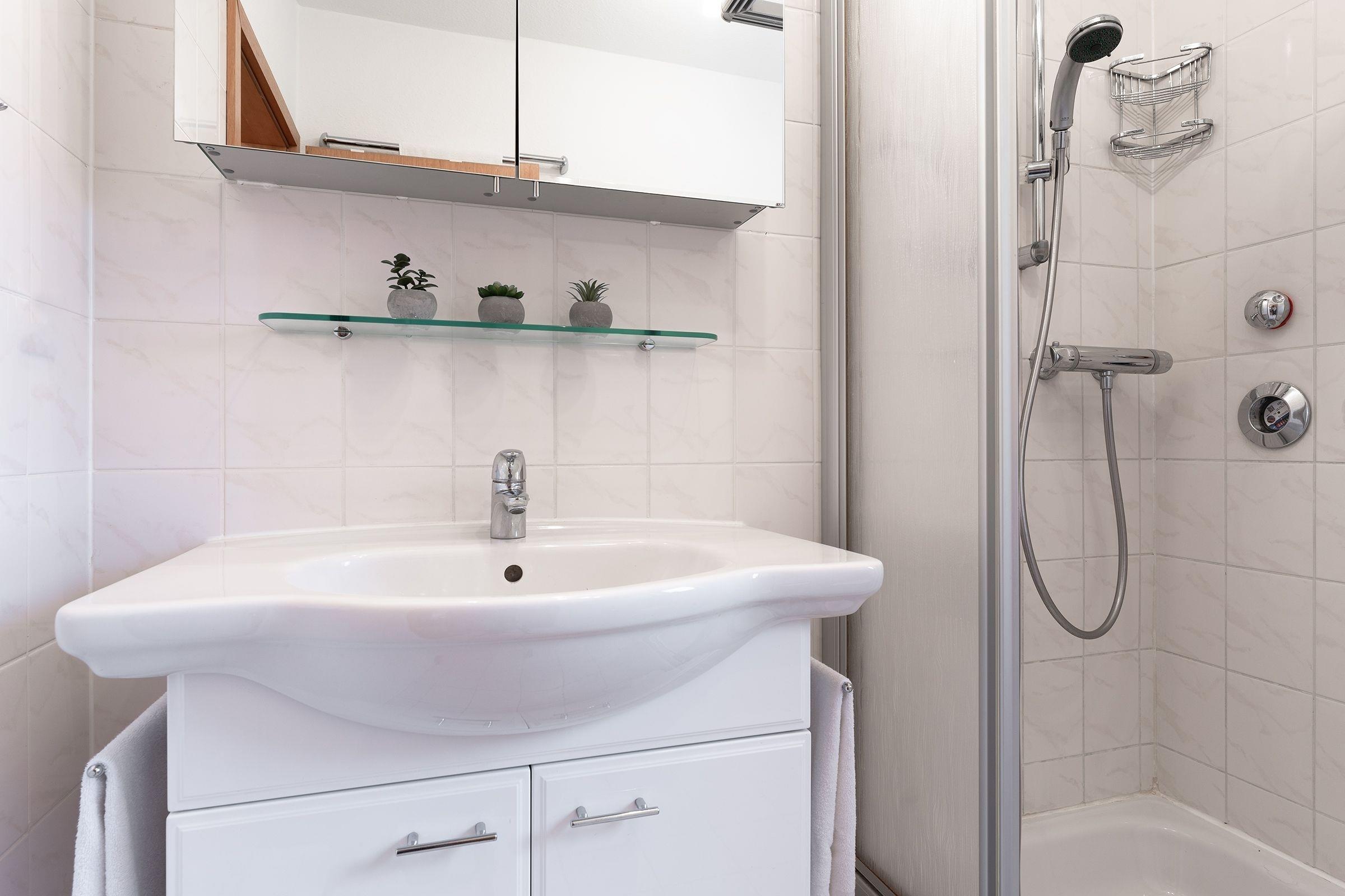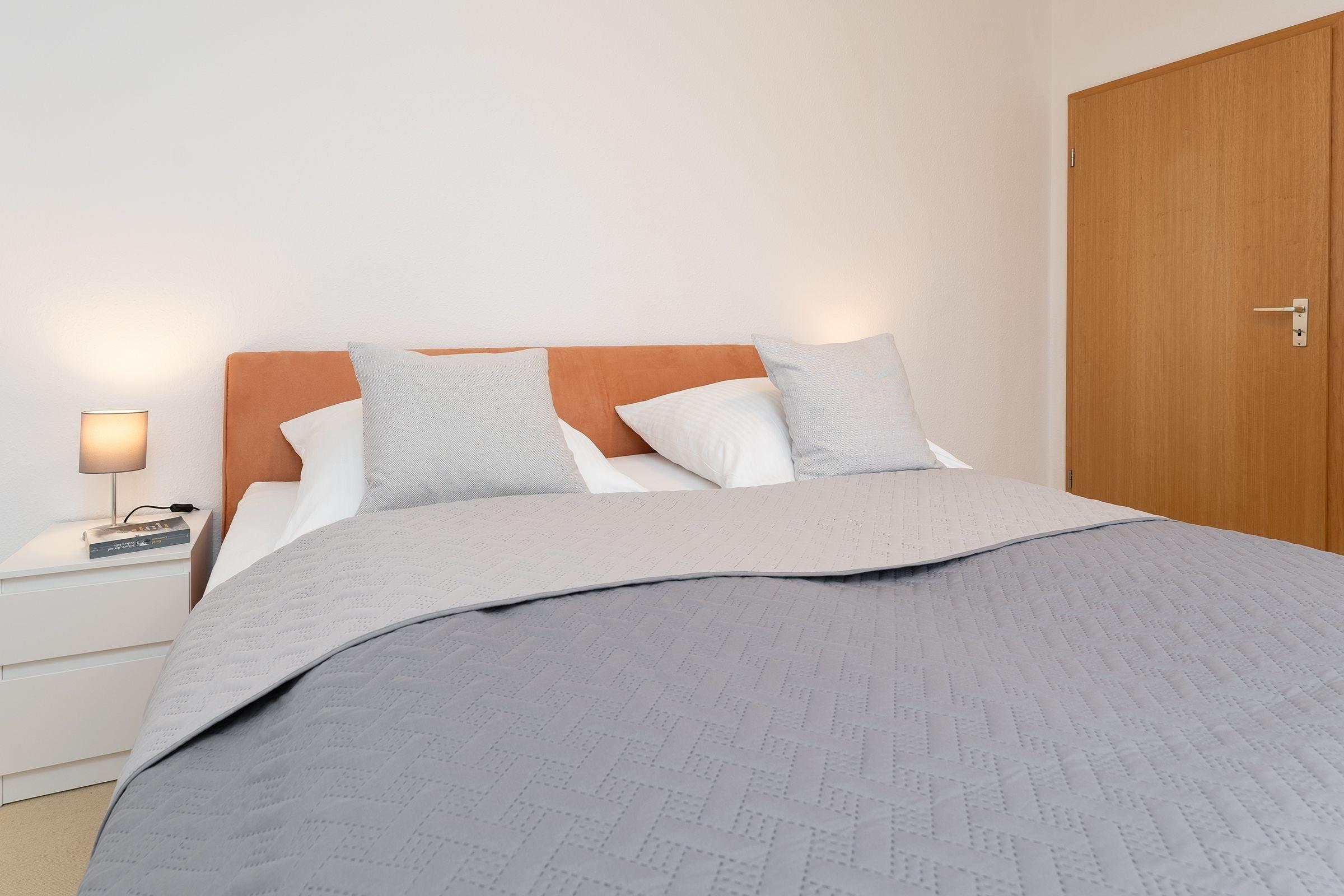 Für entspannte Nächte verwandeln Sie das Sofa in eine kuschelige Schlafstätte (ca. 140x200cm) oder ziehen sich in das große Doppelbett (2x 90x200cm) im angrenzenden Schlafzimmer zurück. Das Tageslichtbad mit Dusche komplettiert die Ausstattung dieser Ferienwohnung.