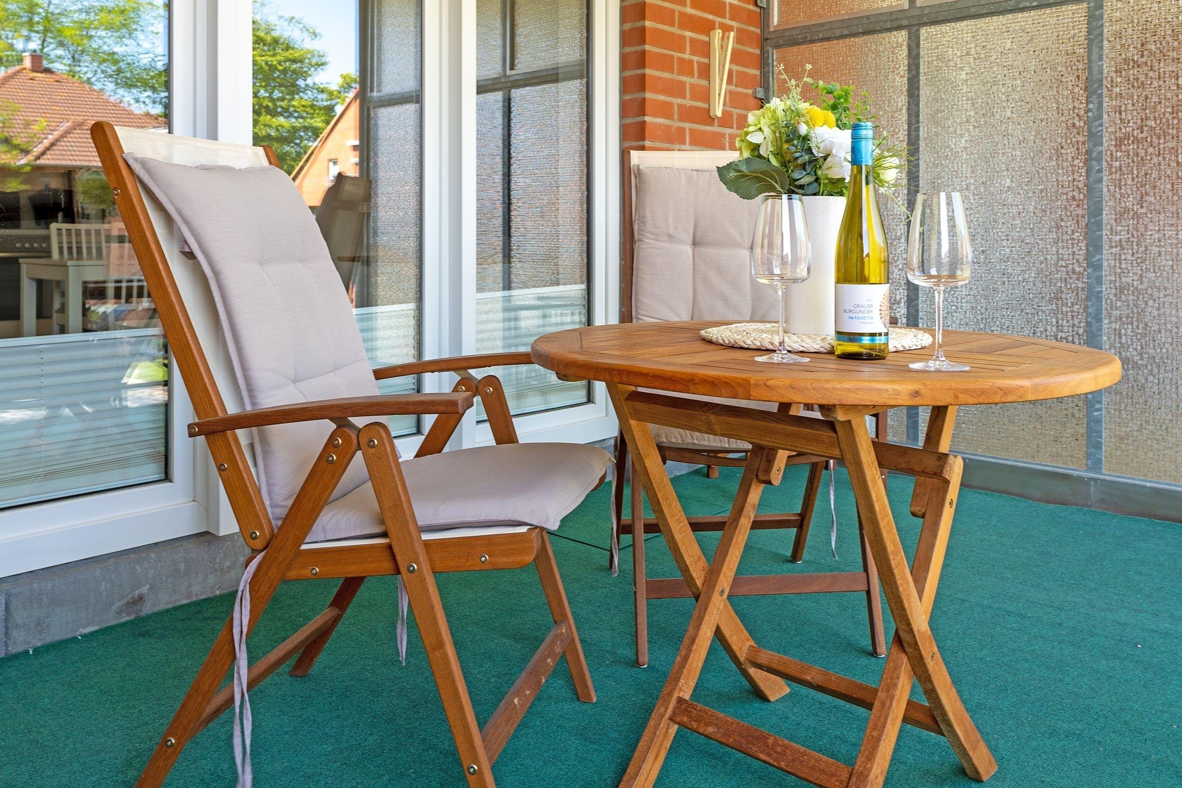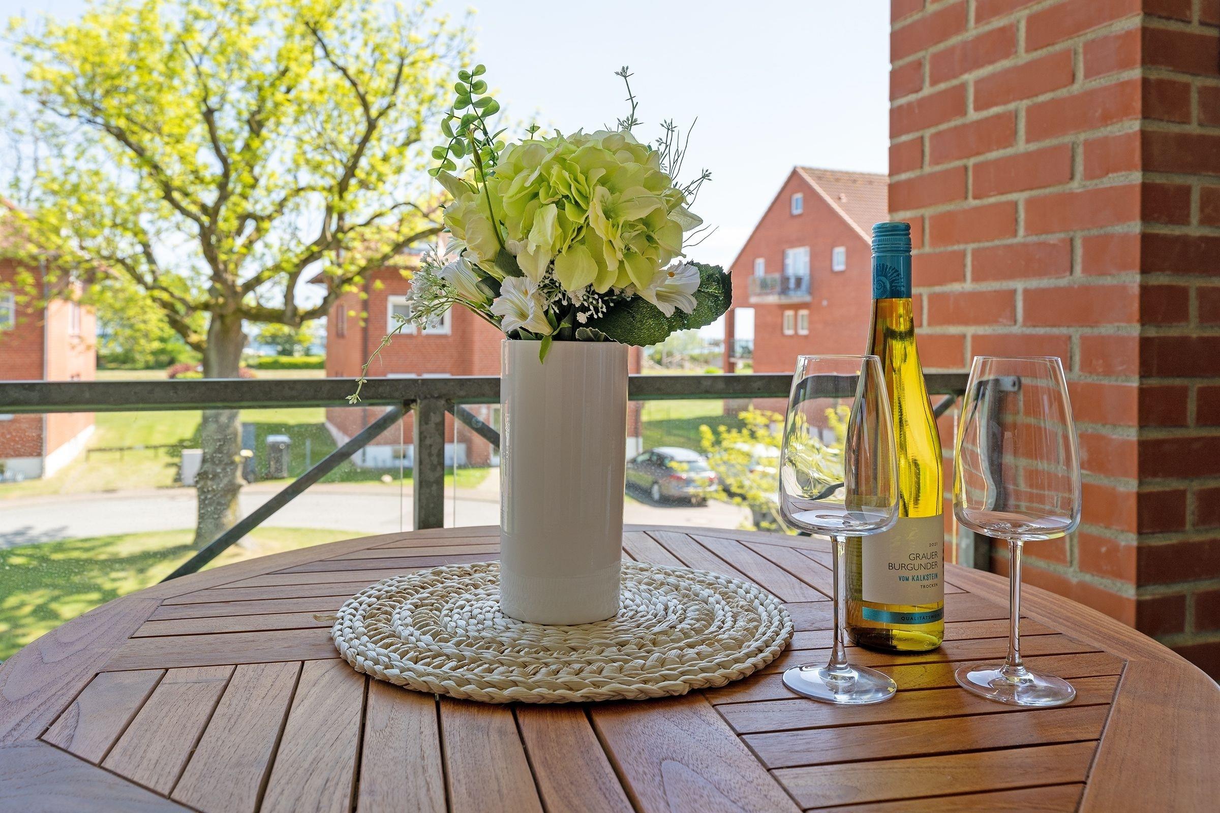 Im gemütlichen Wohnbereich mit offener Küchenzeile können Sie mit der Familie vom Alltag abschalten. Von hier haben Sie auch direkten Zugang auf den überdachten Balkon, der Ihnen wetterunabhängig lauschige Abende ermöglicht. Je nach Saison können einen Blick auf die Ostsee erhaschen.