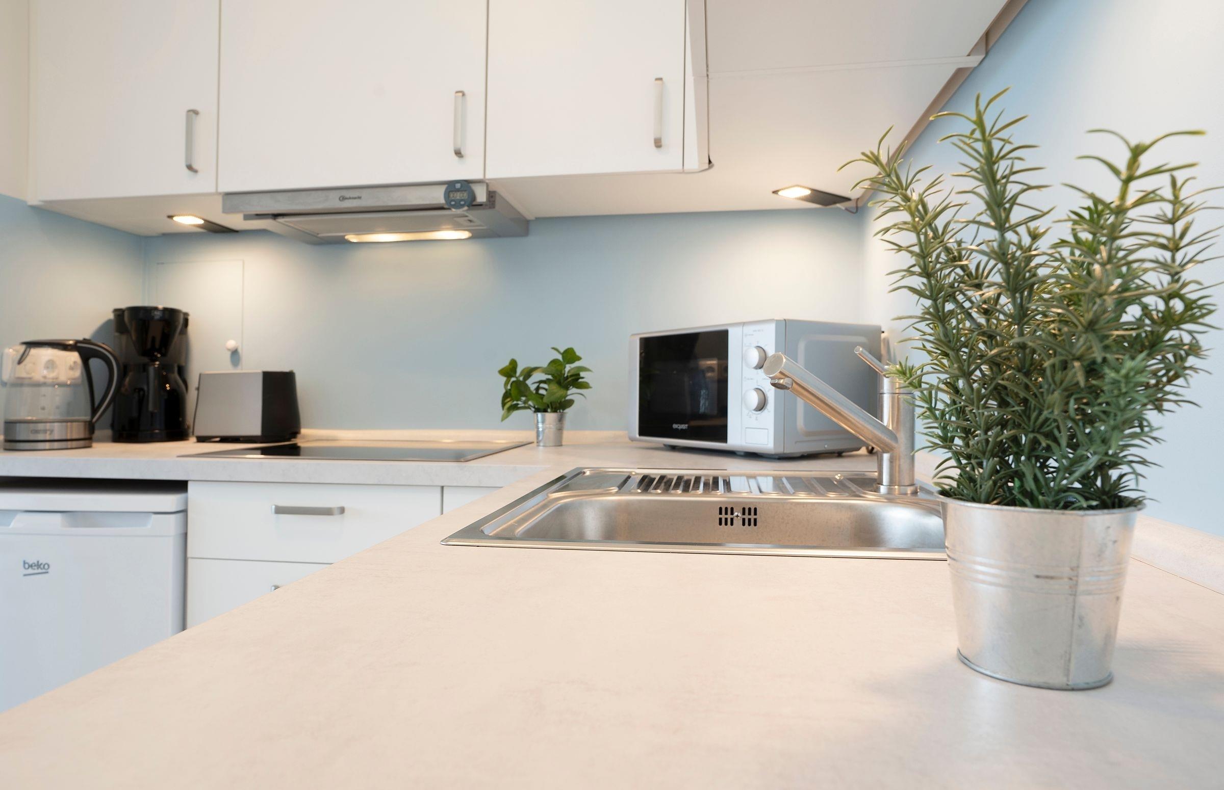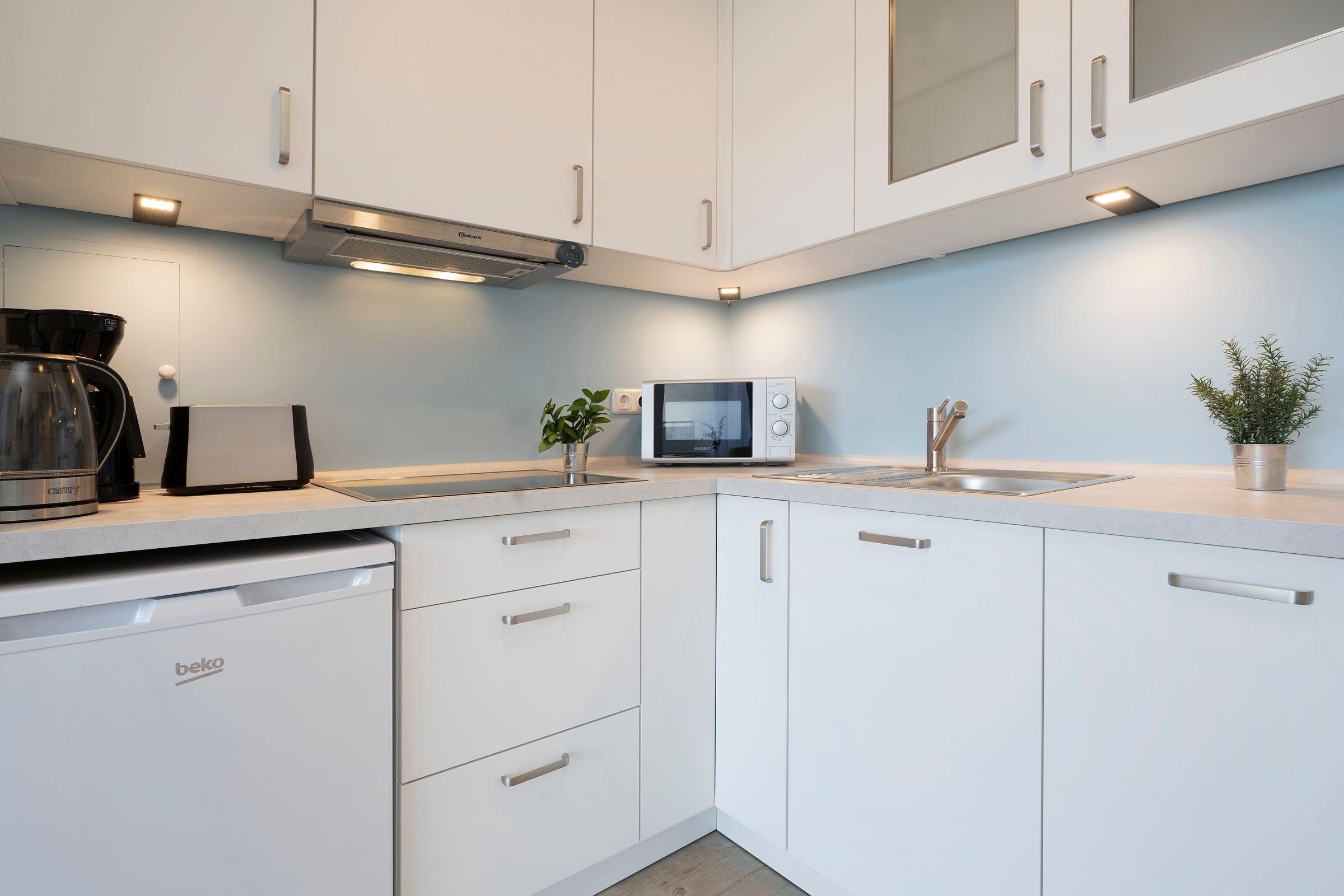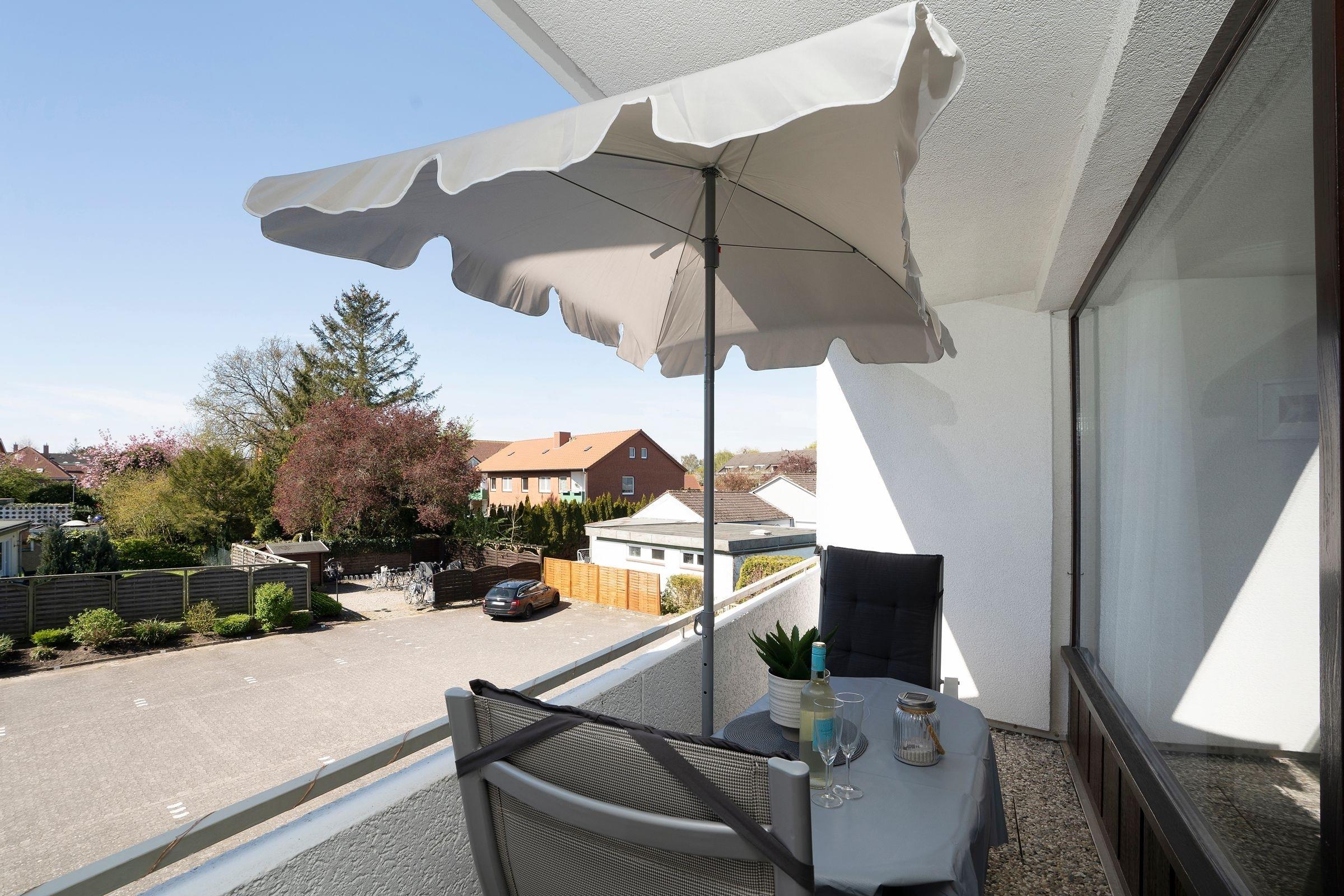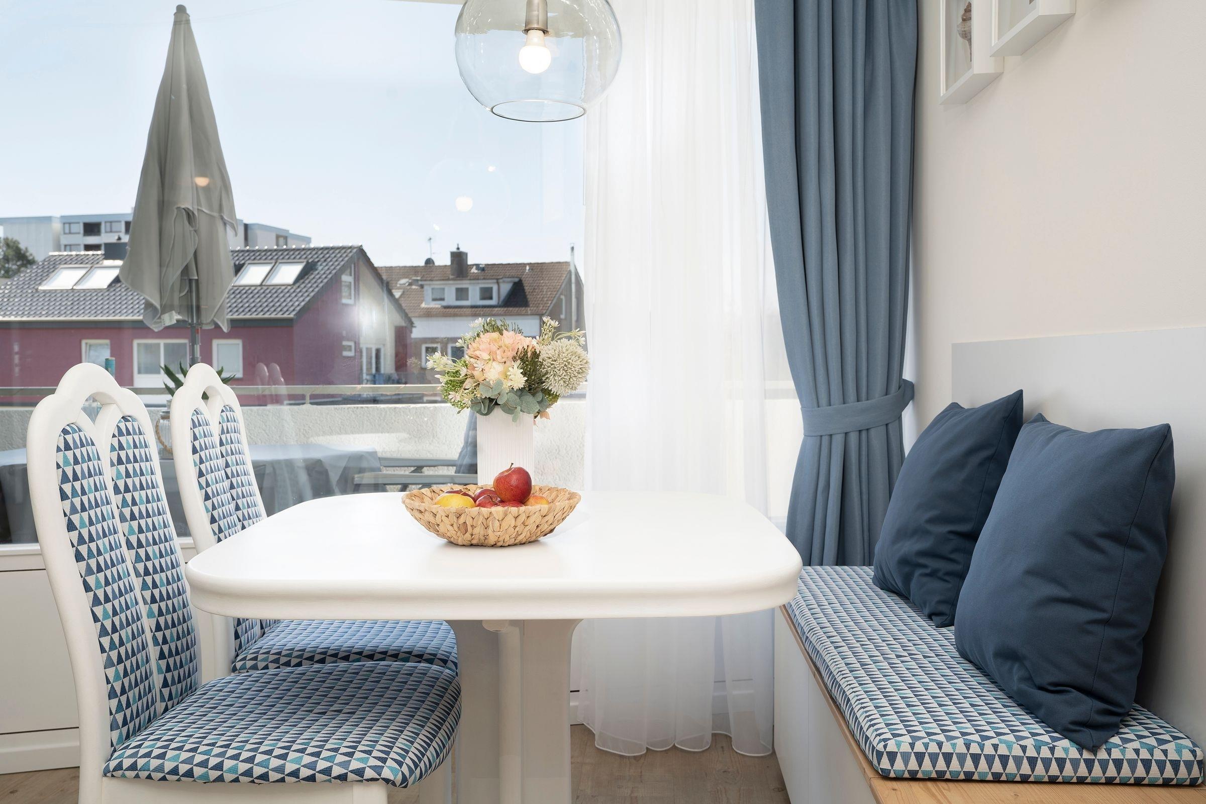 Der helle und gemütliche Wohnbereich empfängt Sie mit einem Schlafsofa (140x200 cm) mit Gelschaumtopper, einem komfortablen Leder-Sessel mit elektrischer Steuerung und Fußstütze sowie einem Flachbild-TV. Die offen gestaltete, moderne Küchenzeile bietet Stauraum für Ihre Einkäufe und viele Annehmlichkeiten wie Geschirrspülmaschine, Toaster, Eierkocher, Mikrowelle mit Grillfunktion, Kaffeemaschine mit Thermoskanne etc. Der Essplatz lädt zum gemeinsamen Essen und zu Spieleabenden ein. Dafür lässt sich der Tisch extra ausziehen und Ihren Bedürfnissen anpassen. Bücher und Brettspiele befindet sich in der Wohnung. Zahlreiche Stunden an der frischen Ostseeluft können Sie auf dem überdachten, möblierten Süd-Balkon in Ruhe genießen. Eine Solarlichterkette zaubert hier zur Dämmerung ein stimmungsvolles Licht. So kann man den Abend prima ausklingen lassen ...