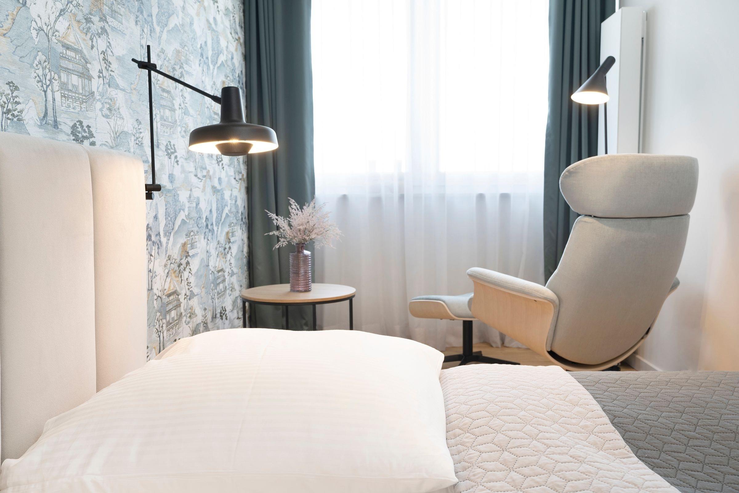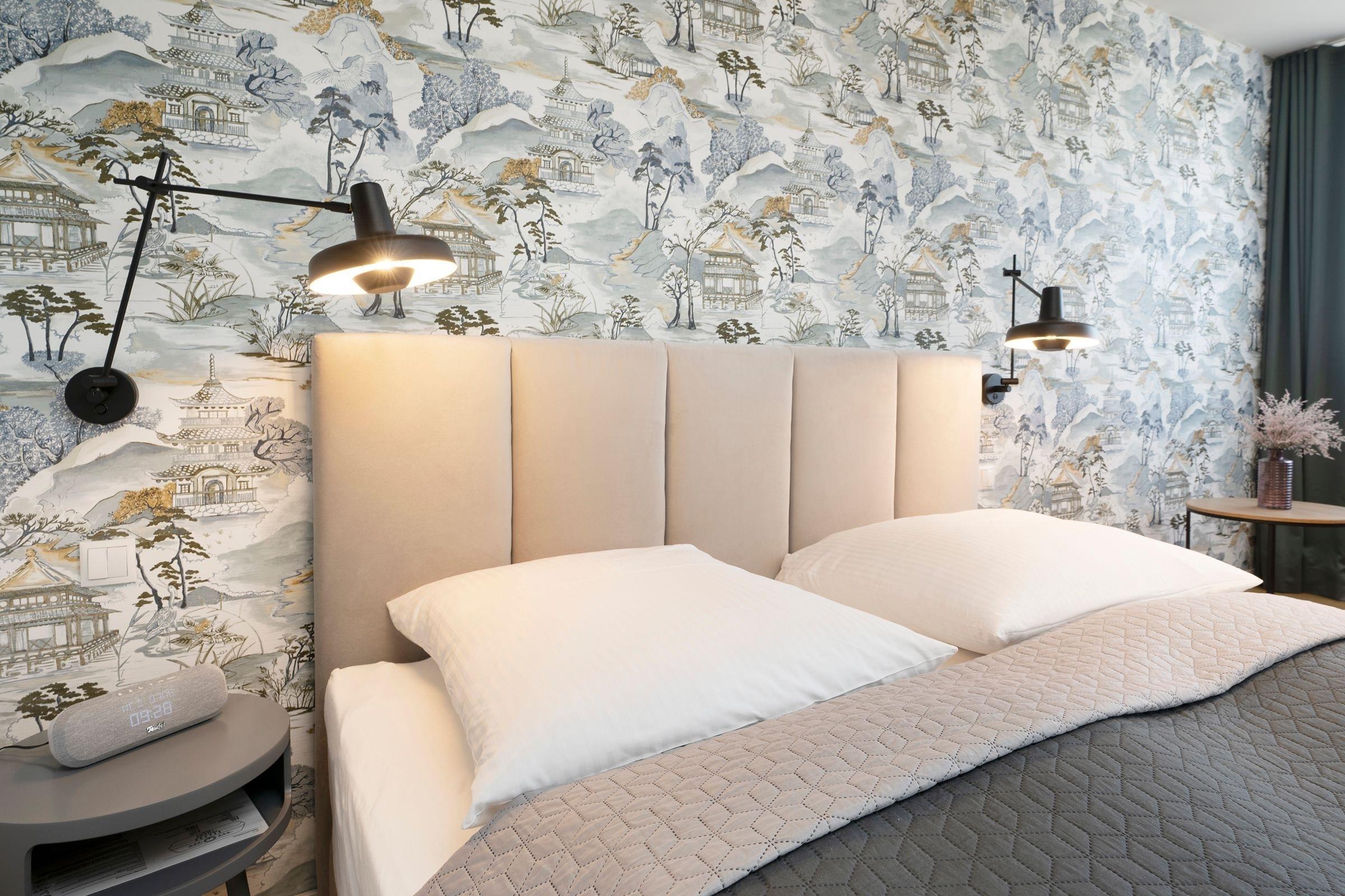 Wohn/Schlafraum: 1 Doppelbett (2x 90x200 cm), Kleiderschrank, TV, Verdunkelung: Vorhang & Plissee, kein Platz für ein Kinderbett vorhanden