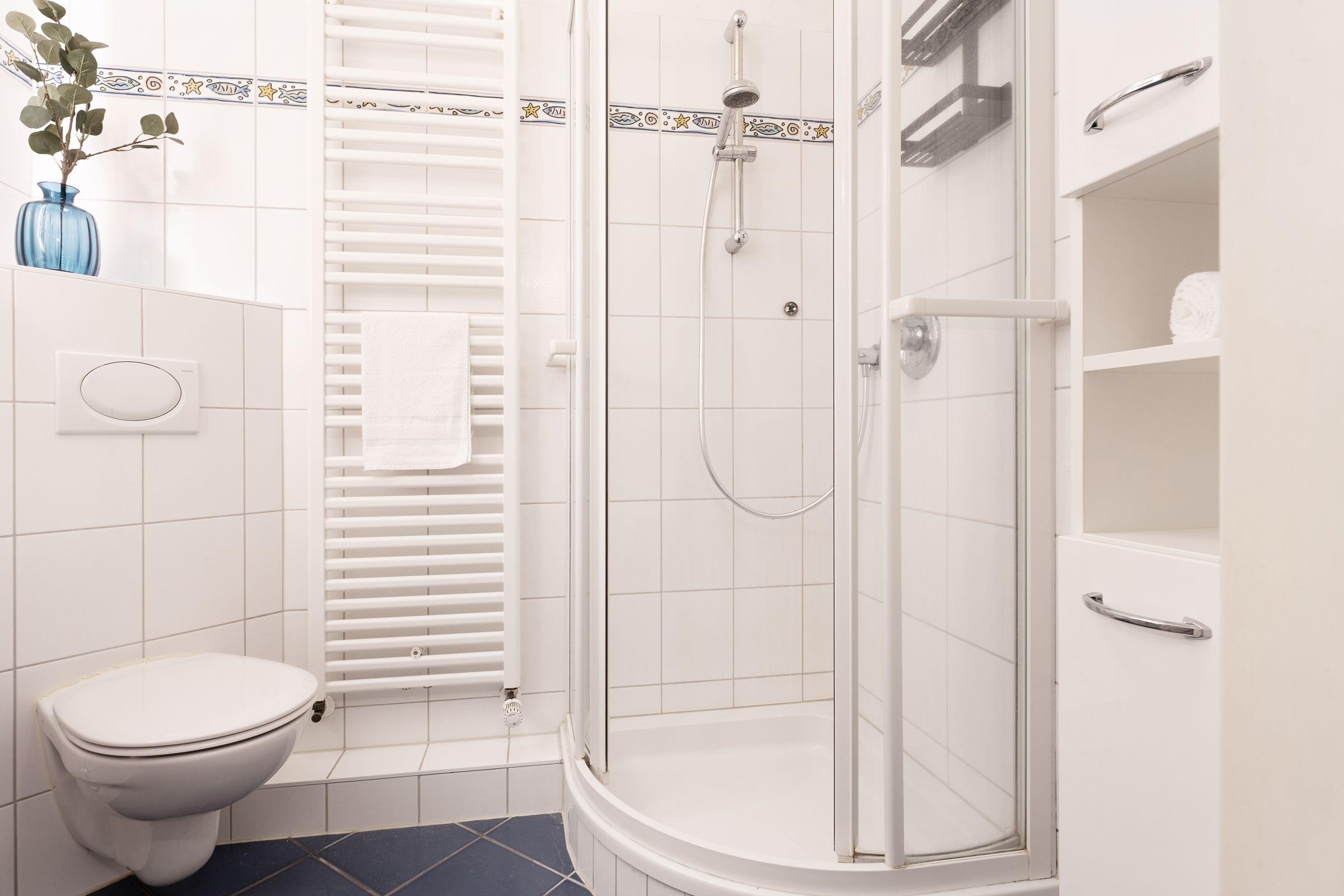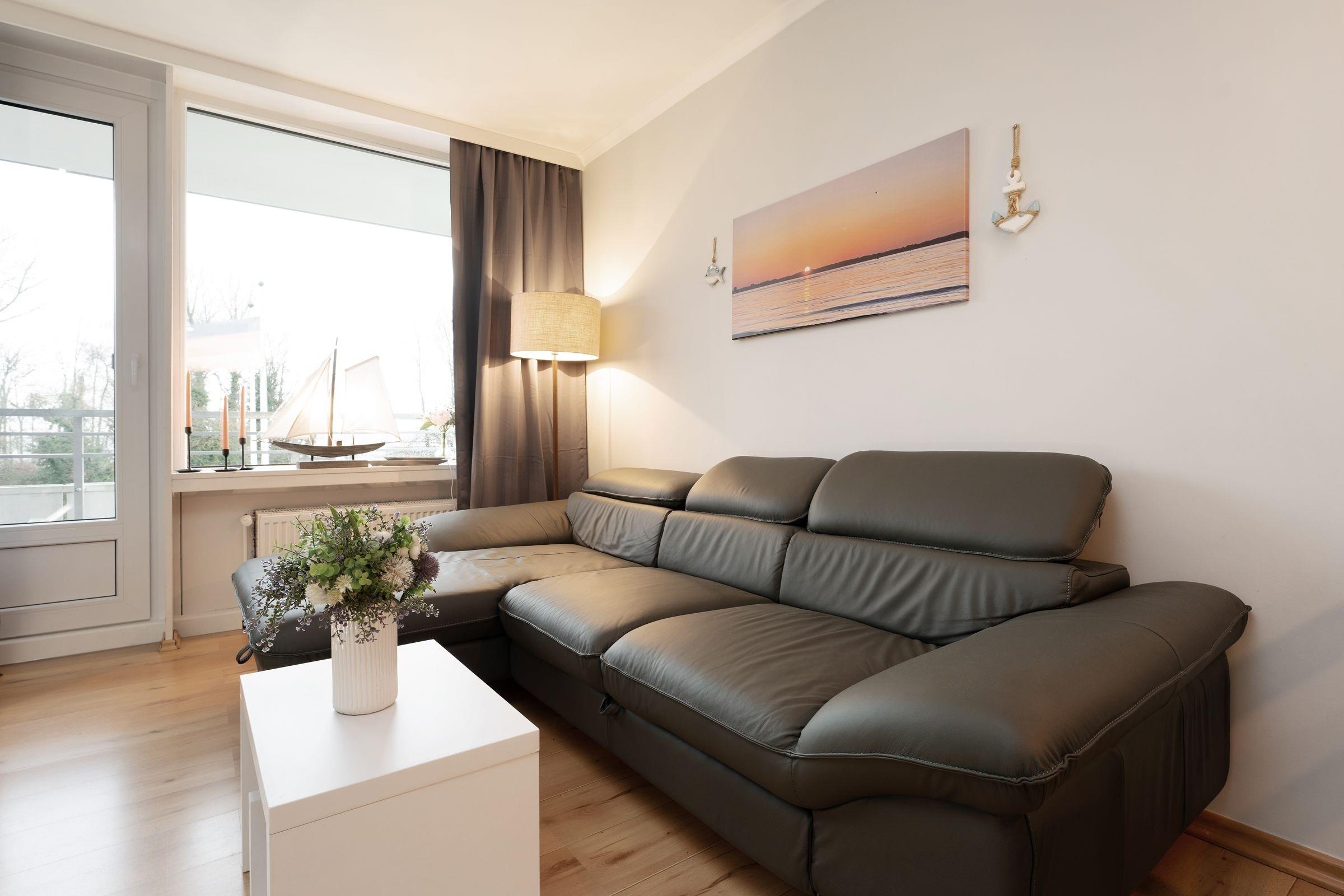 Sie werden begrüßt von einem modern gestalteten Wohn-/Essbereich. Lassen Sie Ihre Urlaubstage bei einem spannenden Film auf dem Sofa ausklingen. Dieses lässt sich im Handumdrehen zu einem weiteren Schlafplatz (126x190cm) umwandeln. Hier haben Sie Zutritt auf den sonnigen Balkon mit Süd-Ost-Ausrichtung, auf dem Sie die Meeresluft genießen können. Für erholsamen Schlaf sorgt das luxuriöse Boxspringbett (160x200cm), das an den Wohnbereich angrenzt. Über den Flur gelangen Sie in die gut ausgestattete Küche, in der Sie sich den ersten Kaffee des Tages mit der Nespresso Kaffeemaschine und leckere Speisen zubereiten können. Im Kinderzimmer finden zwei kleine Urlaubsgäste einen Schlafplatz im Etagenbett (2x 90x190cm). Abgerundet wird das Angebot durch ein geräumiges Duschbad.