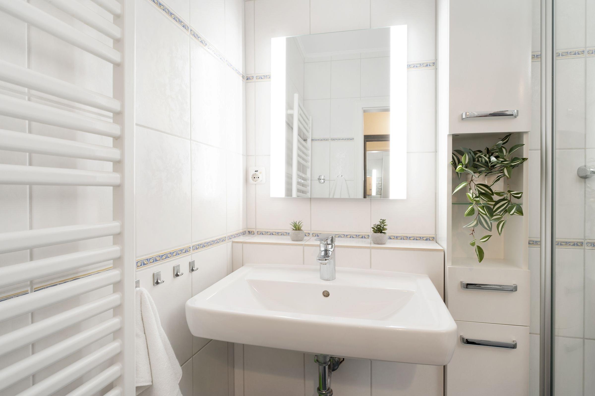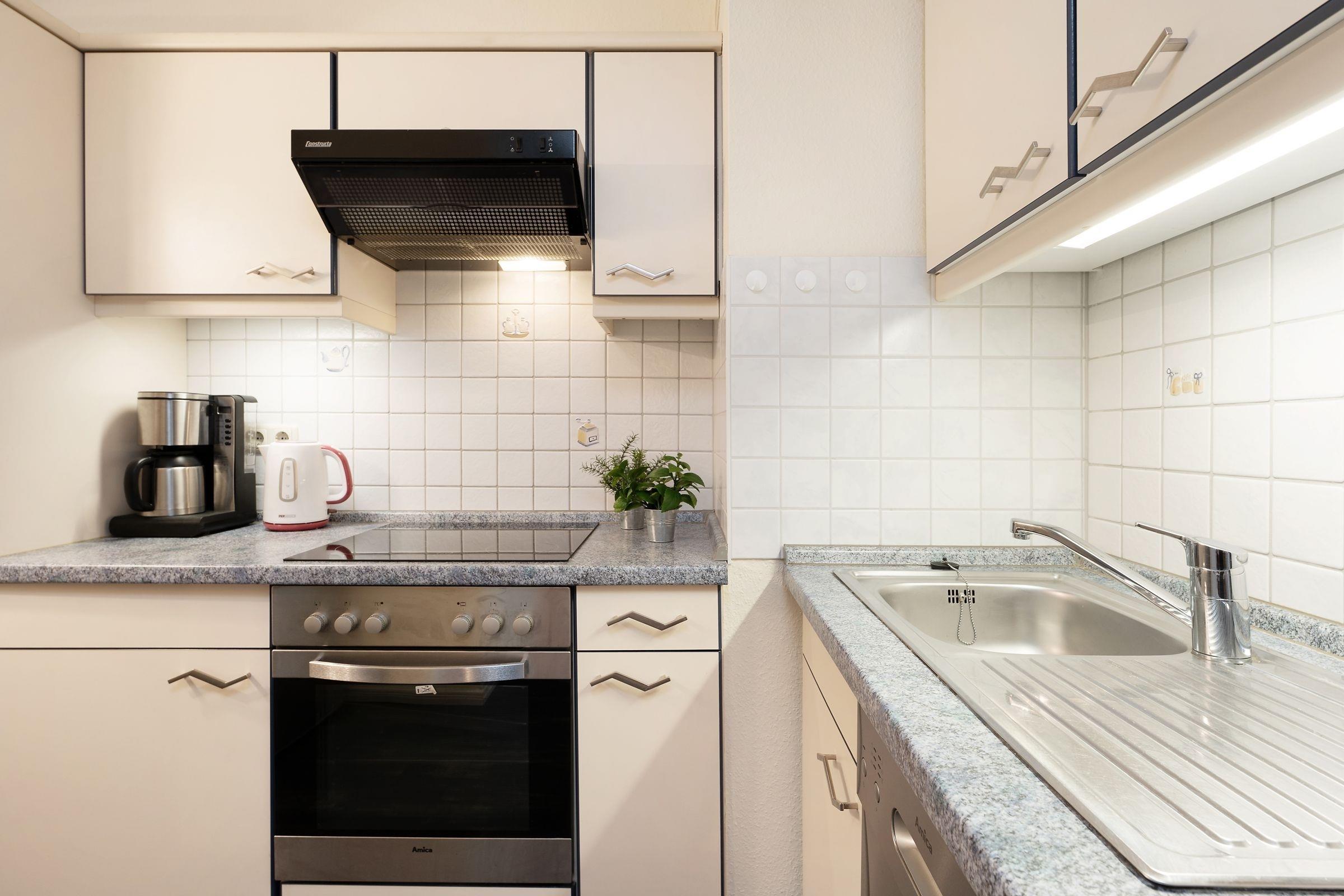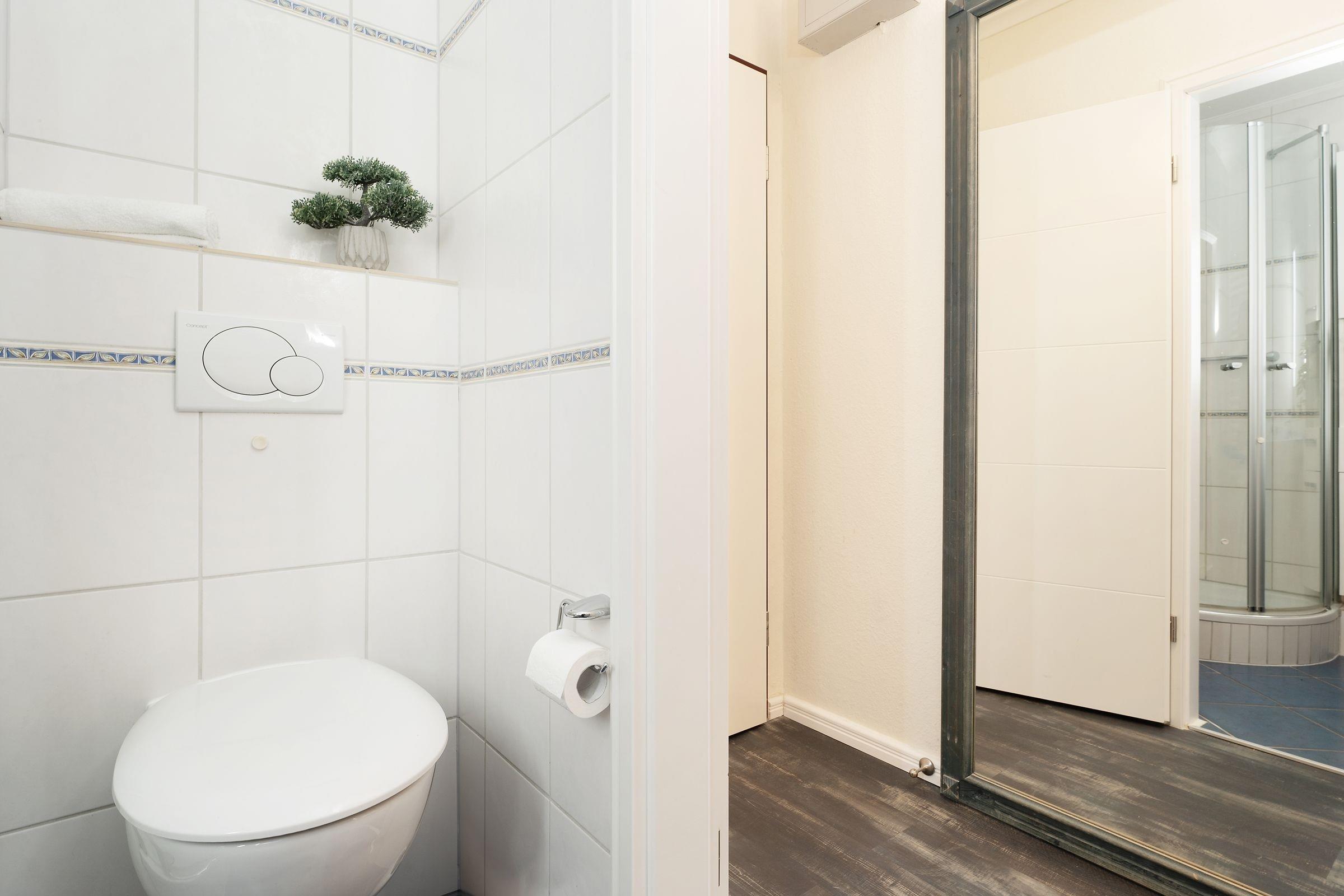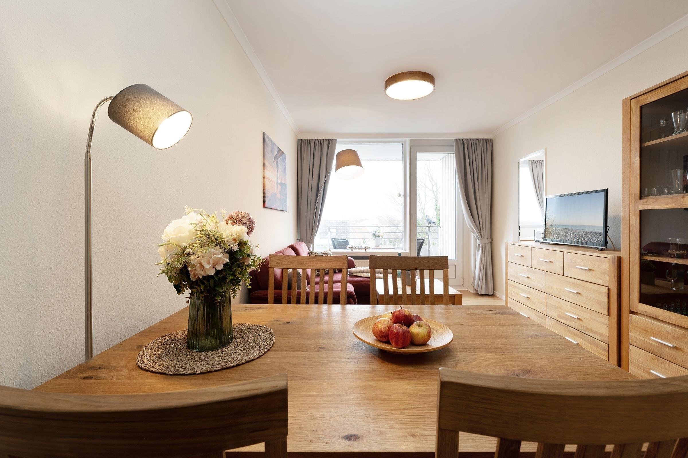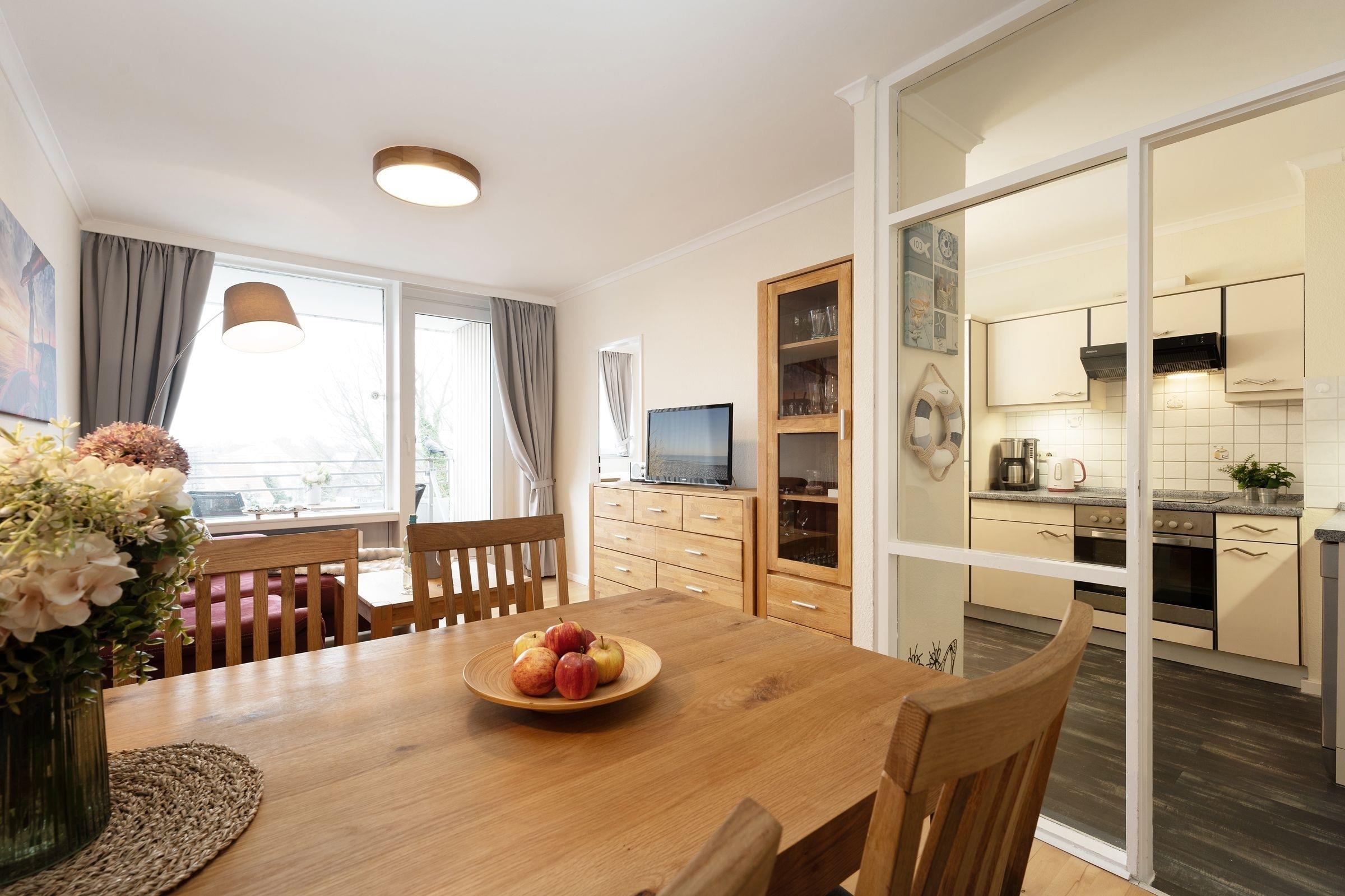Haben Sie Lust auf Meer? Nur rund 100 Meter vom Ostseestrand entfernt wartet diese schöne Wohnung in den Strandappartements am Leuchtturmweg auf Sie. Machen Sie es sich im geschmackvoll eingerichteten Wohnbereich vor dem TV-Gerät gemütlich. Oder genießen Sie die gute Seeluft auf dem möblierten Balkon. Wie wäre es mit einem Willkommens-Drink? In der separaten Küche mit Geschirrspüler finden Sie sämtliche Annehmlichkeiten, die Sie für Ihre Selbstversorgung im Urlaub brauchen. Nach einem wunderbaren Tag an der Ostsee verspricht das Doppel-Boxspringbett (160x200 cm) im hinteren Bereich des Wohnzimmers angenehme Nachtruhe. Im separaten Schlafzimmer steht ein Boxspringbett (90x200 cm). Verdunkelt wird jeweils mit Gardinen. Das innenliegend Duschbad verspricht einen guten Start in den Tag.
