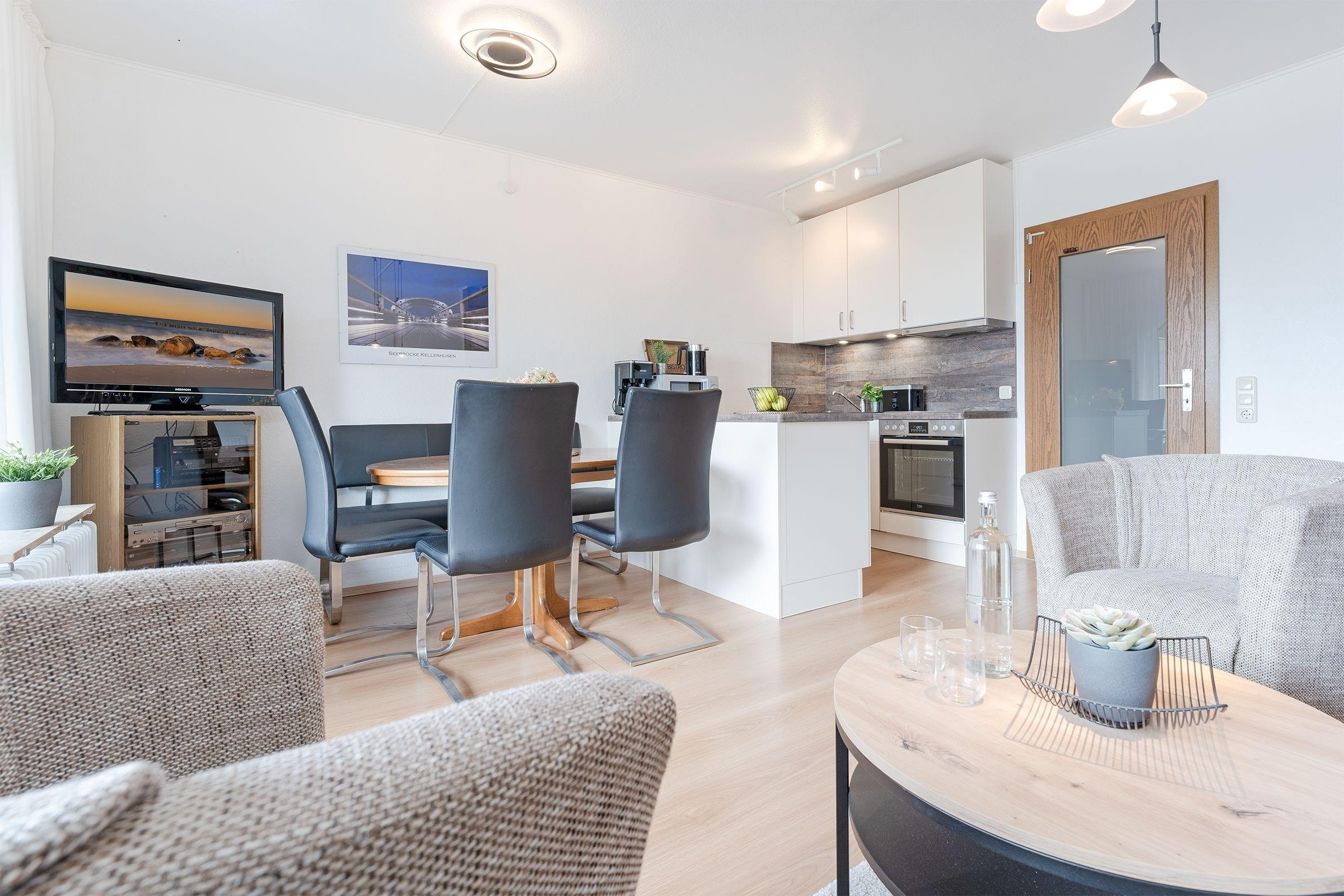 Genießen Sie Ihren nächsten Ostseeurlaub in Kellenhusen: charmante 2-Zimmer-Ferienwohnung im 2. Stock mit Balkon, Gemeinschaftsgarten und einer Wohnfläche von ca. 41 m² für bis zu 3 Personen.