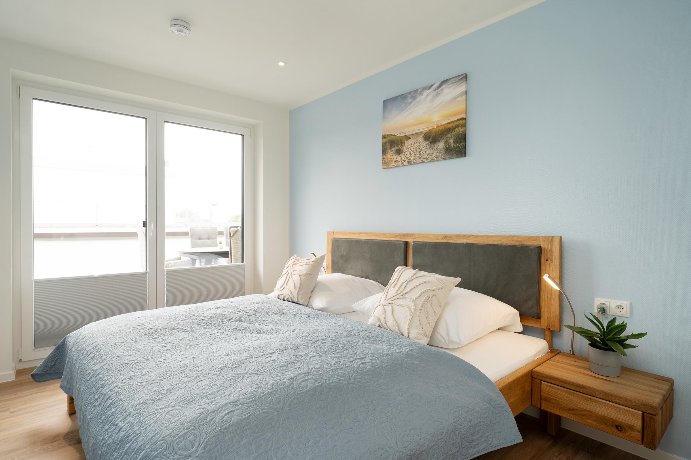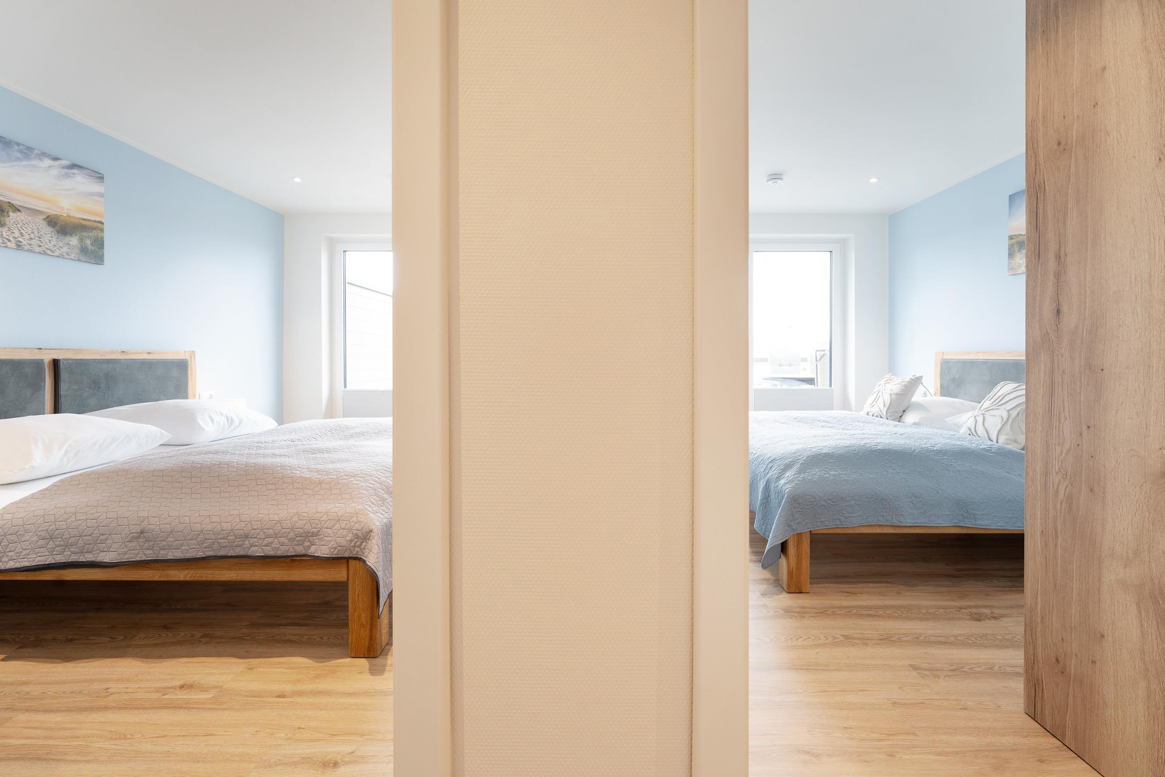Zwei separate Schlafzimmer sorgen für erholsamen Schlaf – jeweils mit einem gemütliche Doppelbett ausgestattet. Zwei weitere Schlafmöglichkeiten befinden sich im Wohnbereich.