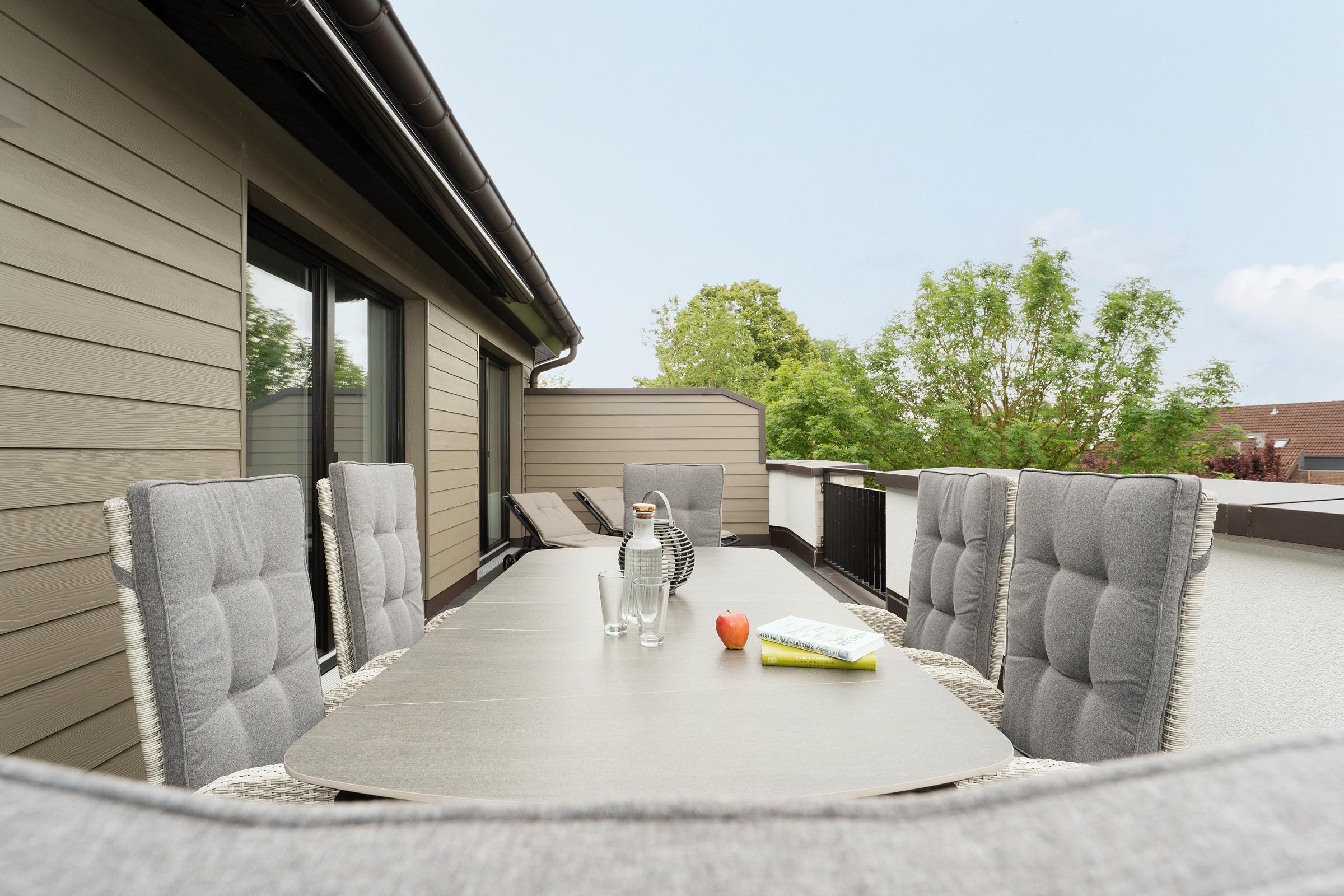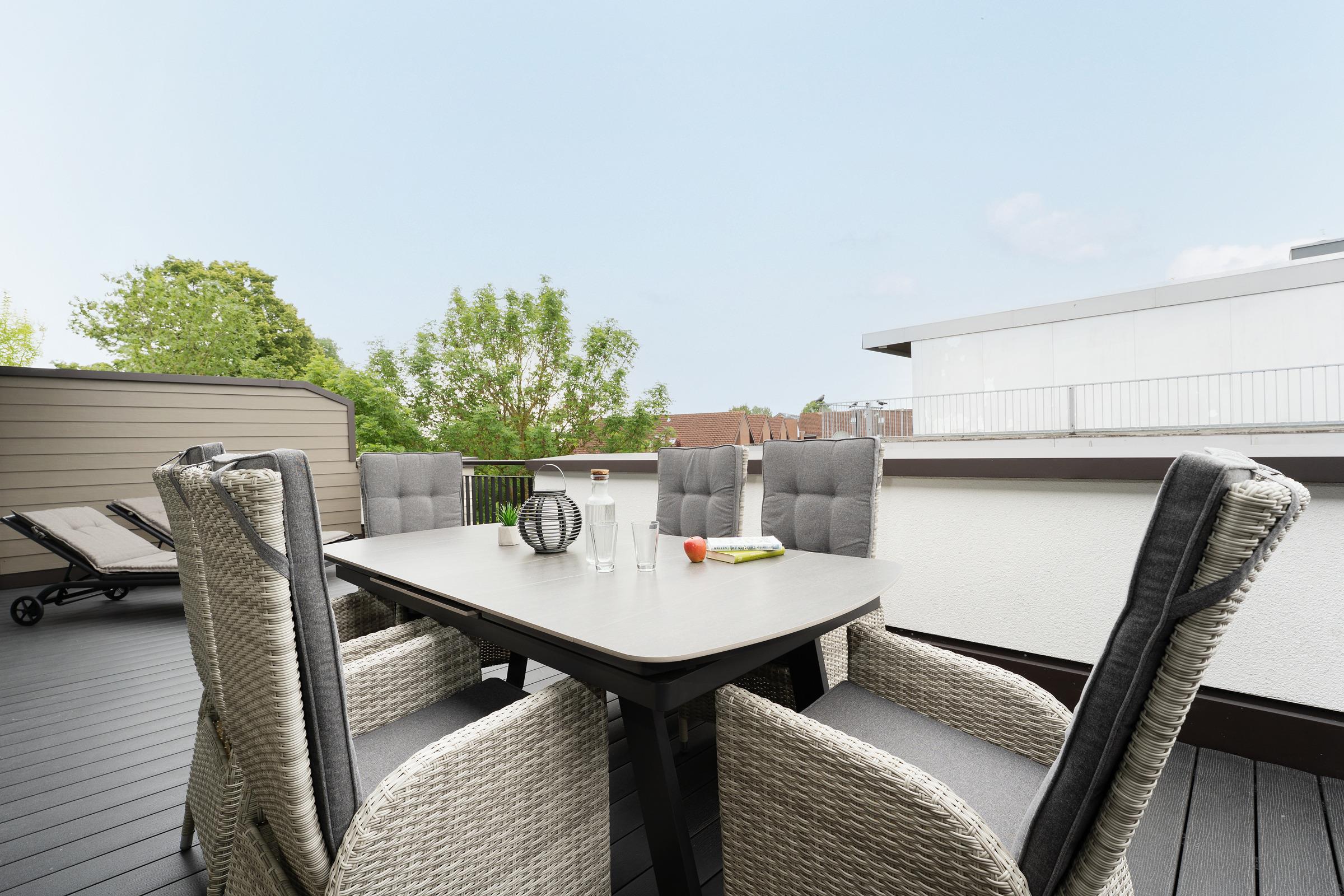 Moderne 3-Zimmer-Ferienwohnung in Kellenhusen mit 89m² Wohnfläche und Dachterrasse für bis zu 6 Personen.