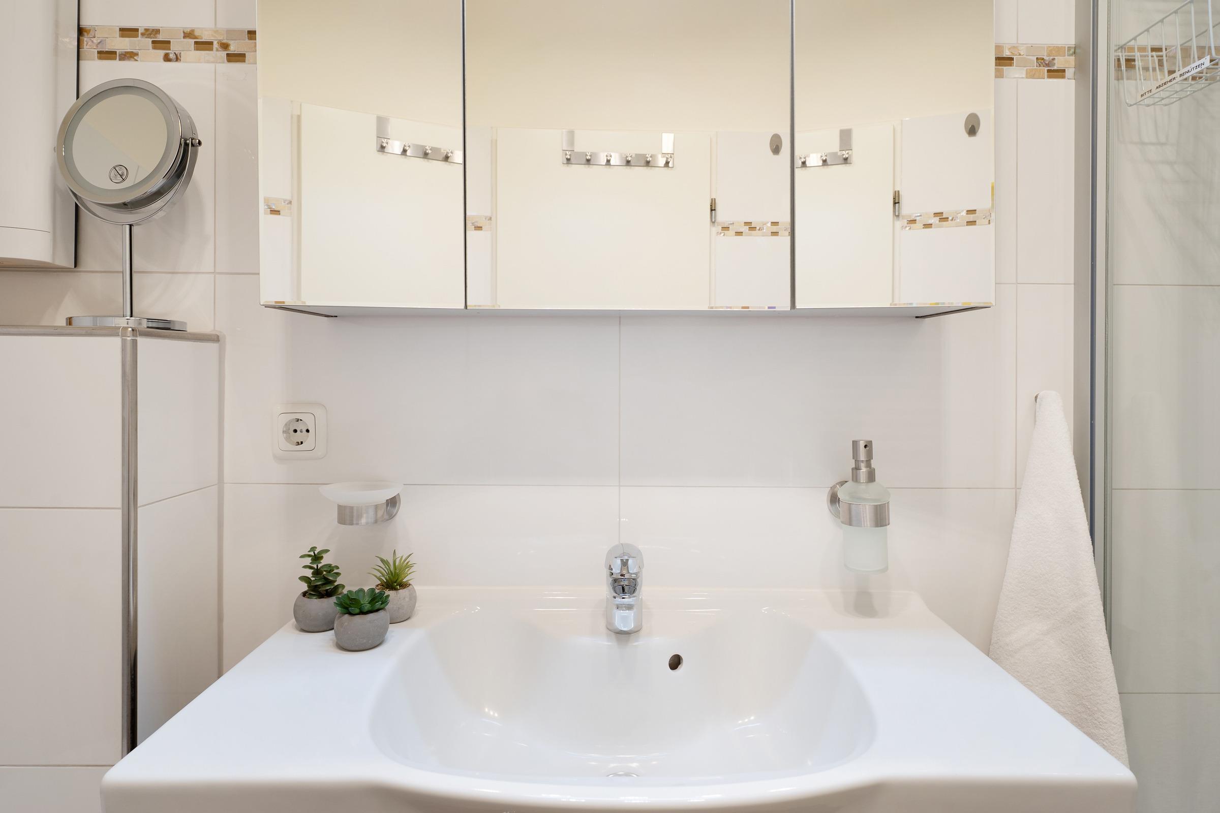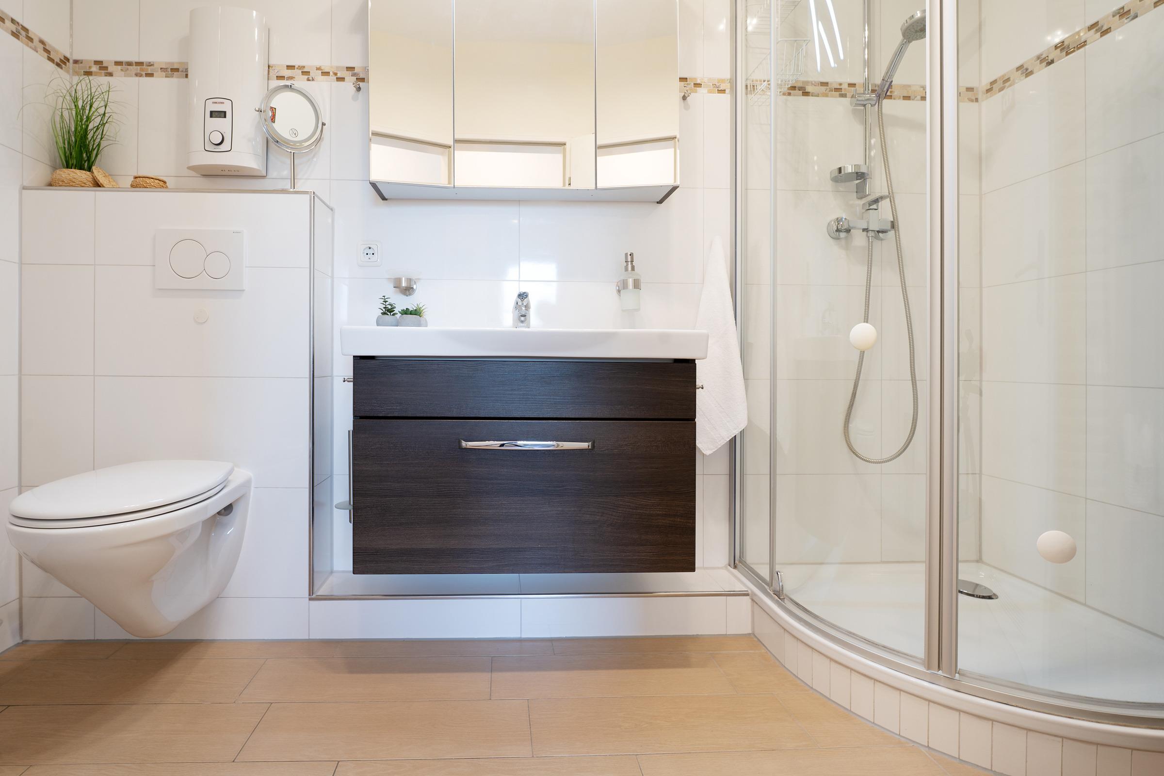 Ein modernes Duschbad rundet das Wohlfühlambiente ab.