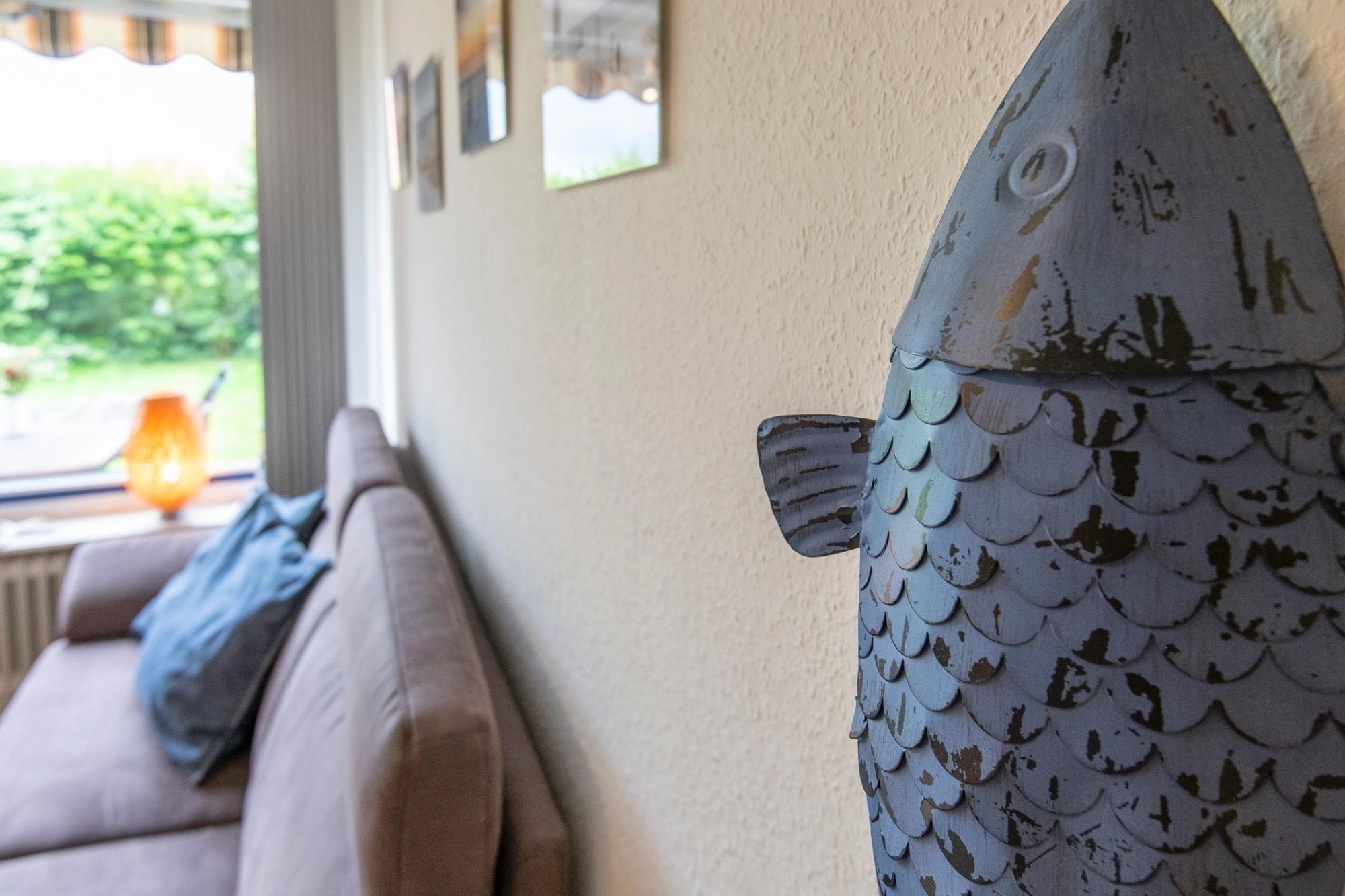 Willkommen an Bord – diese charmante Ferienwohnung besticht durch maritime Details in der geschmackvollen Einrichtung. Kommen Sie rein und nehmen Sie auf der kuscheligen Couch am großen Fenster Platz. Hier haben Sie einen schönen Blick ins Grüne – und natürlich können Sie diesen Blick auch direkt von der möblierten Terrasse aus genießen. Hier sitzt man gut geschützt und kann sich übers schöne Wetter freuen. Sollte die Sonne mal zu sehr scheinen, schenkt eine Markise angenehmen Schatten. Zurück im Wohnbereich: Neben der Couch steht Ihnen eine schöne Sitz-Ecke zur Verfügung – hier können Sie nicht nur gemütlich essen, sondern auch Ihre Urlaubspläne in Ruhe schmieden. Bei Bedarf lassen sich in dem Raum 2 Schrank-Einzelbetten (je 90x200 cm) ausklappen und als himmlische Schlafplätze nutzen. Die separate Küche mit Geschirrspüler ist gut ausgestattet und bietet sämtliche Annehmlichkeiten, die man im Urlaub braucht. Für die Nacht steht Ihnen ein Schlafzimmer mit einem Einzelbett (90x200 cm) zur Verfügung. Hier werden Sie sicher von der Ostsee träumen. Das Duschbad mit Handtuchwärmer ist hell gefliest.