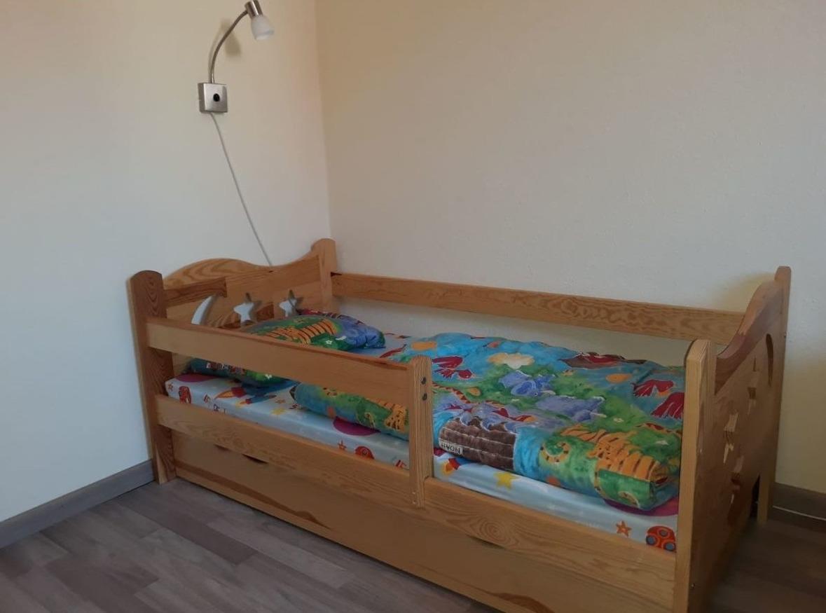 Die helle und freundliche Wohnung (60 qm) befindet sich im 1. Stock von unserem "To Hus". Sie verfügt über einen schönen Süd-Balkon zum Garten, ein Wohnzimmer (Esstisch, Couchgarnitur und TV), ein Elternschlafzimmer (mit Doppelbett), ein Kinderzimmer (zwei Einzelbetten und ein Kinderbett (0,70 x 1,40 m), eine separate Küche (mit Spülmaschine) und ein neues Bad mit Dusche/WC.
