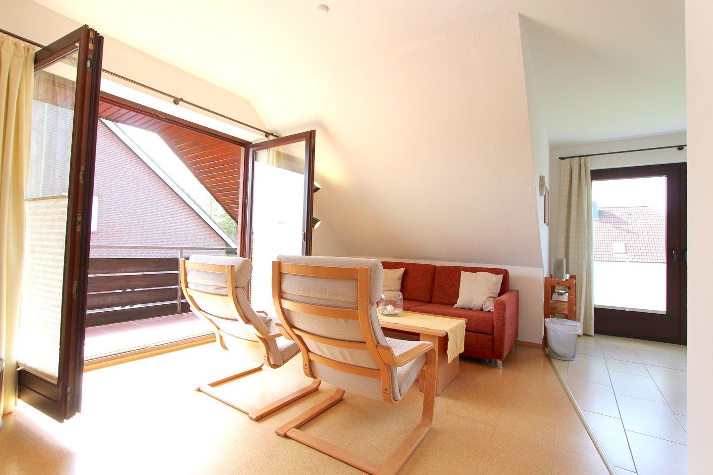 Diese ca. 50 qm große Nichtraucher-Ferienwohnung ist für 2 - 4 Personen ausgestattet. Sie befindet sich im Obergeschoss zur linken Seite und hat eine schöne Lodgia mit Süd-West-Ausrichtung. Hier kann man die Sonne und Ruhe genießen oder sogar dem Rauschen des Meeres lauschen. Das Haus Meeresgruß liegt nur wenige Gehminuten vom Strand entfernt.