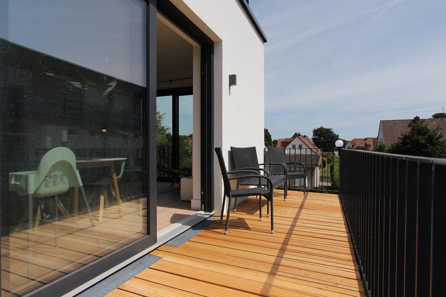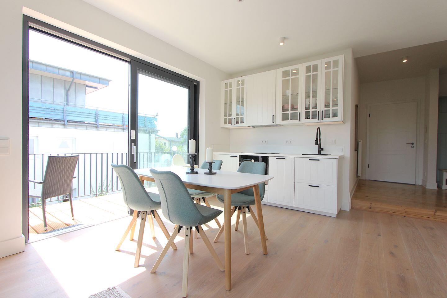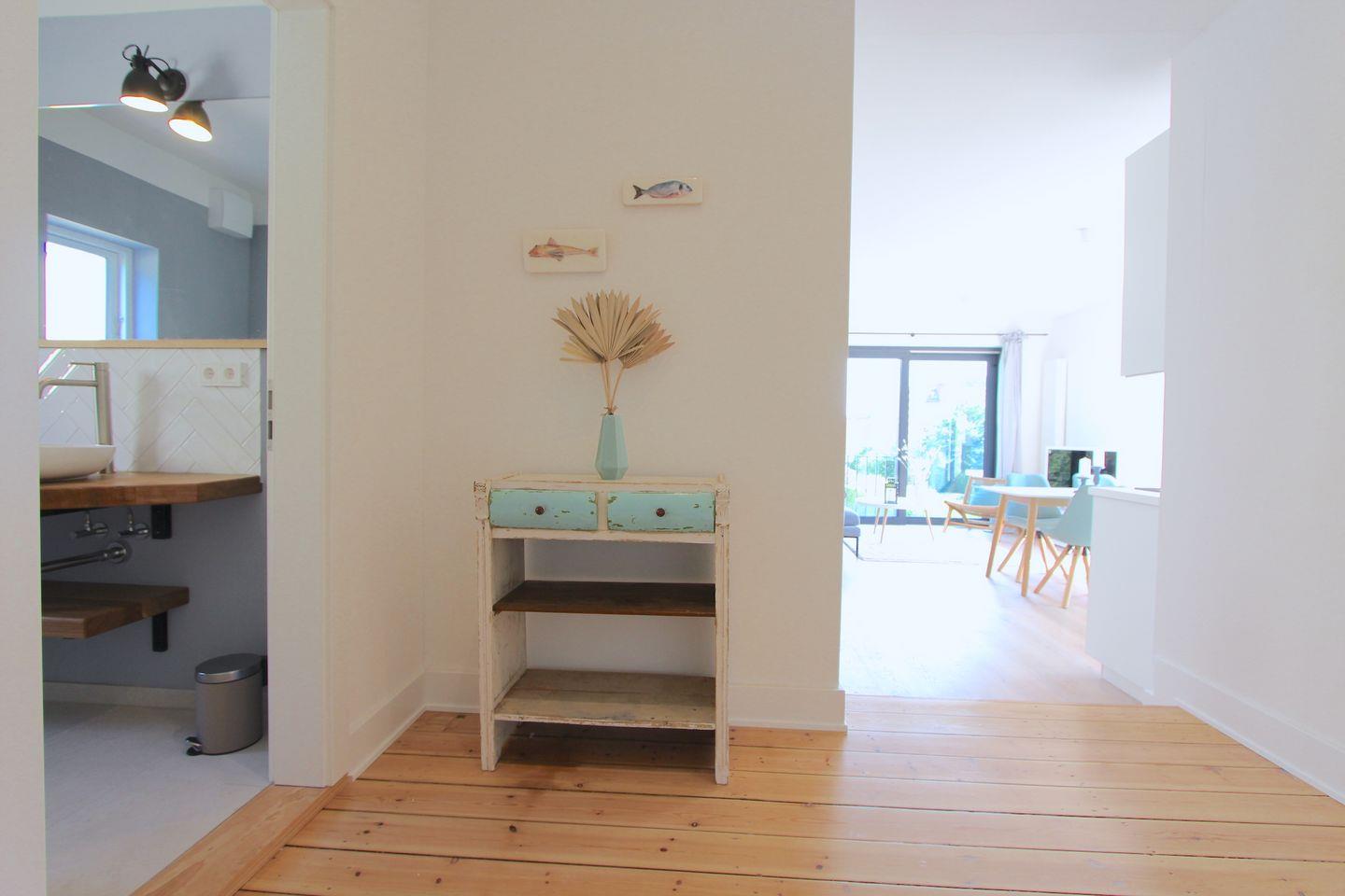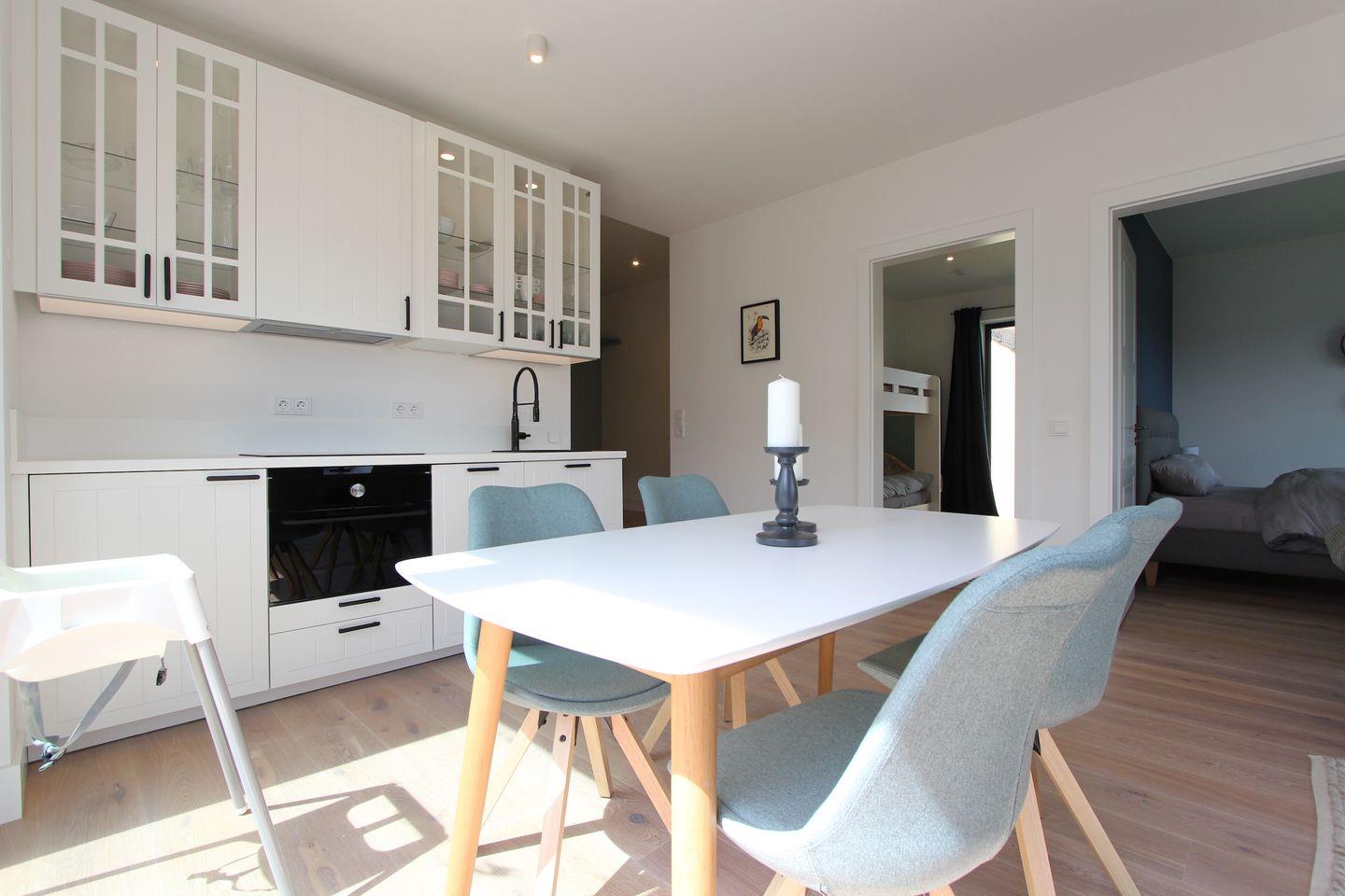 Diese vollständig in 2022 sanierte ca. 68qm große und modern eingerichtete Ferienwohnung im 1. OG, mit kombiniertem Wohn- und Essbereich, überzeugt durch eine stilvolle Einrichtung und bietet Platz für eine Familie mit 2 Erwachsenen und 2 Kindern. Im Wohnbereich erwartet Sie ein bequemes Sofa, sowie ein Smart-TV-Flachbildfernseher. Der Esstisch bietet ausreichend Platz für die ganze Familie. Die offene Küche ist modern und gut ausgestattet. Ihnen stehen Annehmlichkeiten wie z. B. ein Backofen, ein Kühlschrank, ein Geschirrspüler sowie eine Kapsel-Kaffeemaschine zur Verfügung. Ein separates Schlafzimmer erwartet Sie mit einem komfortablen Doppelbett (2x 90x200 cm) und einem Kleiderschrank. Das weitere, separate Schlafzimmer ist mit einem Etagenbett (je 90x200 cm) ausgestattet. Beide Schlafzimmer lassen sich angenehm abdunkeln. Das hell geflieste Badezimmer mit Fenster verfügt neben einem WC und einem Waschbecken über eine Dusche. Der möblierte Balkon eignet sich ideal, um dort viele schöne Urlaubsstunden zu verbringen. Insgesamt liegt das Objekt in bester zentraler Lage, das Auto kann auf dem dazugehörigen Parkplatz bleiben, denn bis zum Sandstrand sind es nur 6 Gehminuten.