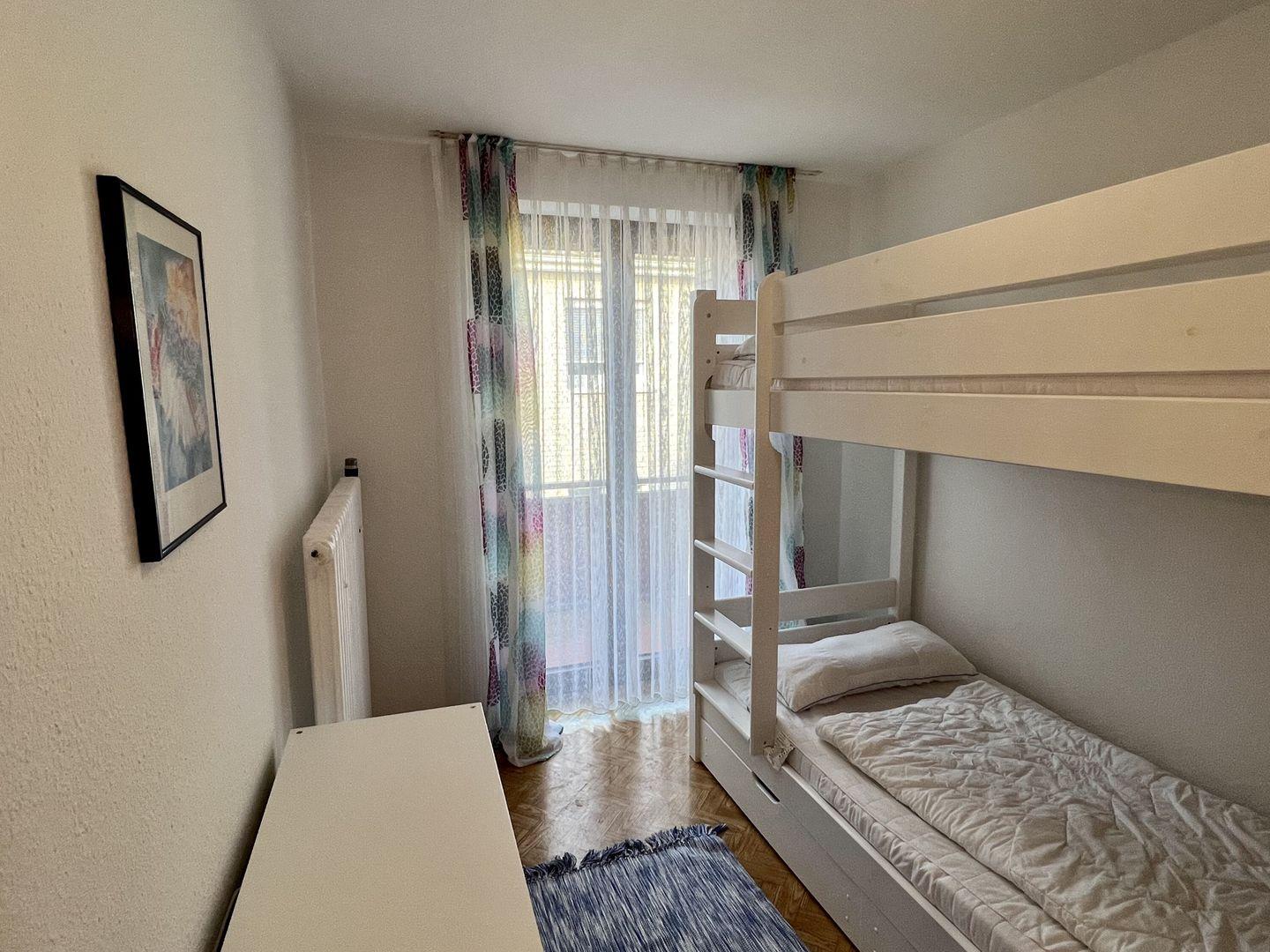 - Schlafraum mit Etagenbett und Ausgang zum Balkon