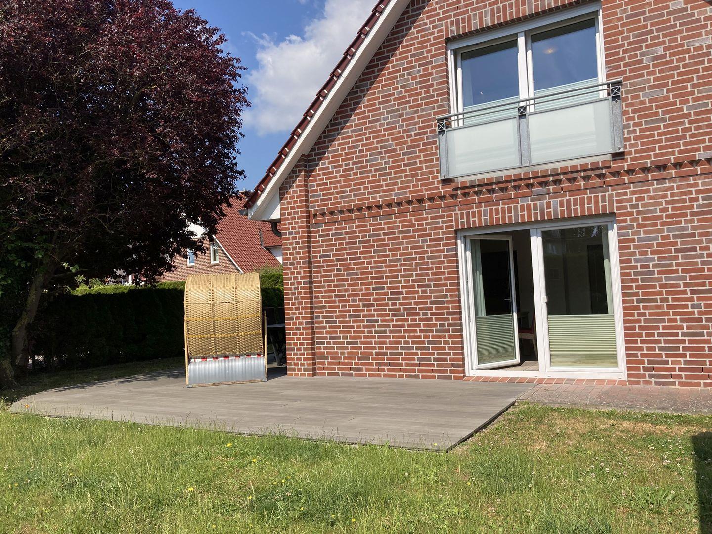 - direkter Zugang vom Wohnbereich zur möblierten Terrasse (Strandkorb, Sonnenschirm, Tisch und Stühle) und Garten
