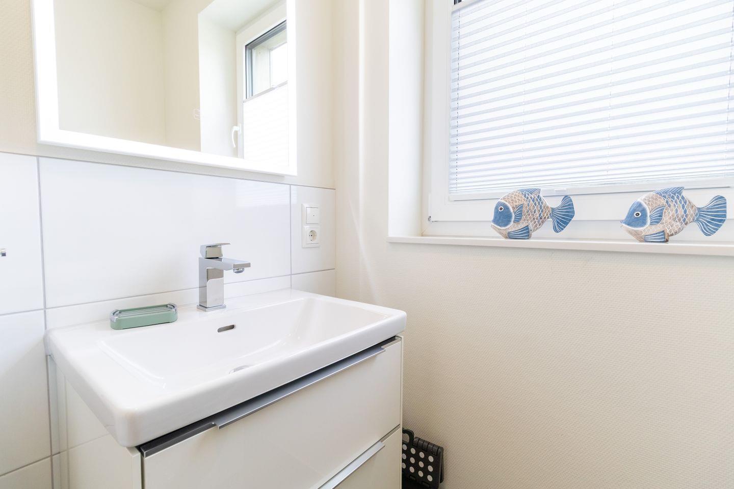Ergänzt wird der Komfort durch ein separates Gäste-WC, in dem dir auch ein praktischer Waschtrockner zur Verfügung steht – ideal für längere Aufenthalte.
