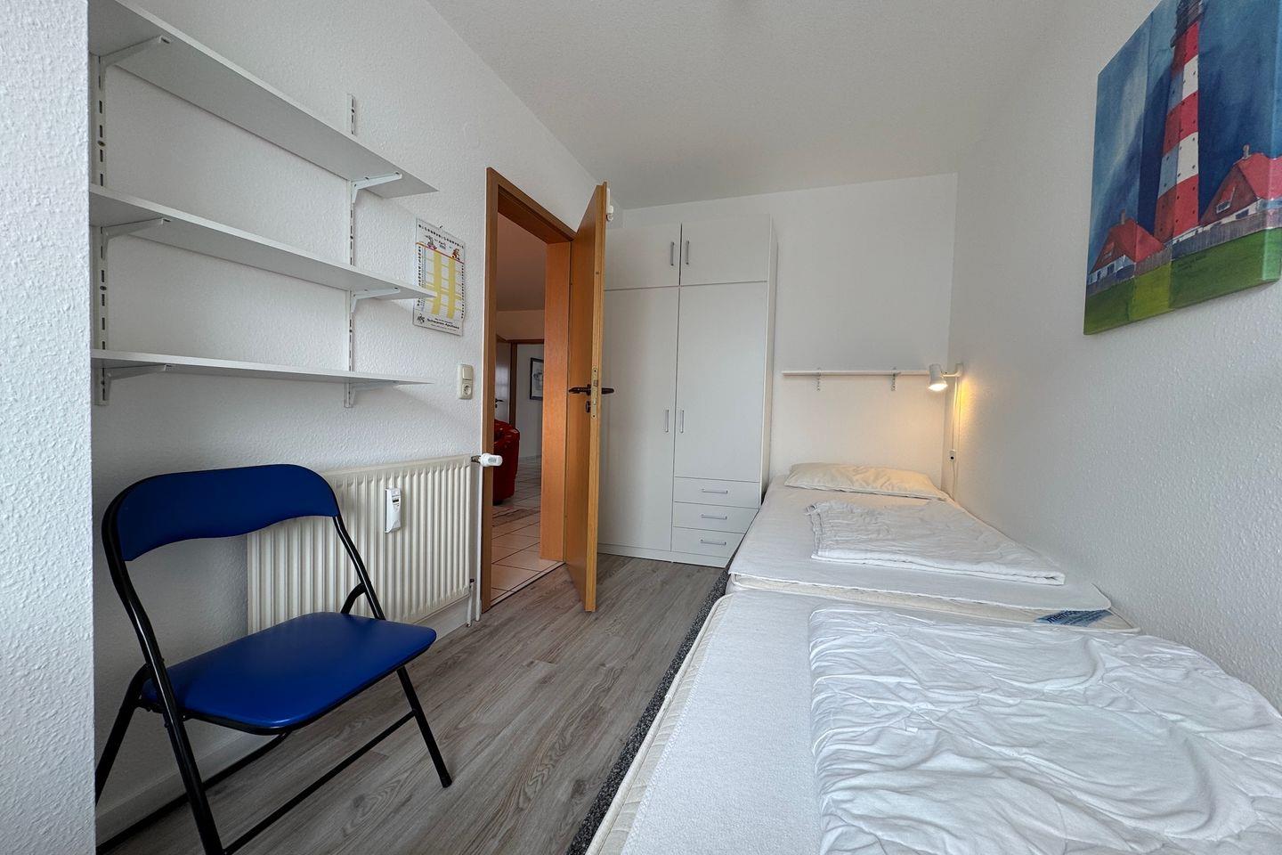 • Das zweite Schlafzimmer ist perfekt für Kinder und verfügt über zwei Einzelbetten (je 80 x 200 cm) sowie einen geräumigen Kleiderschrank.