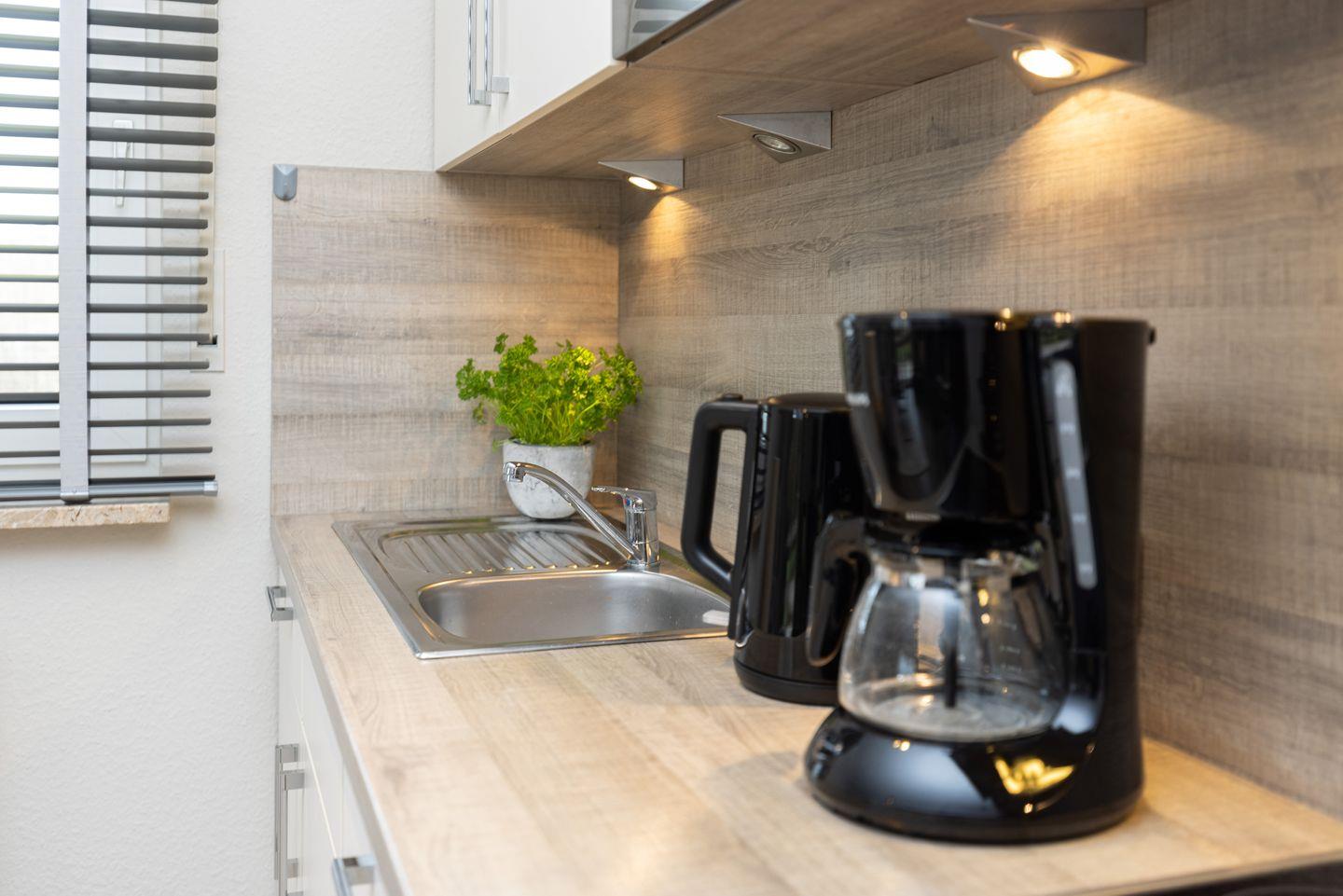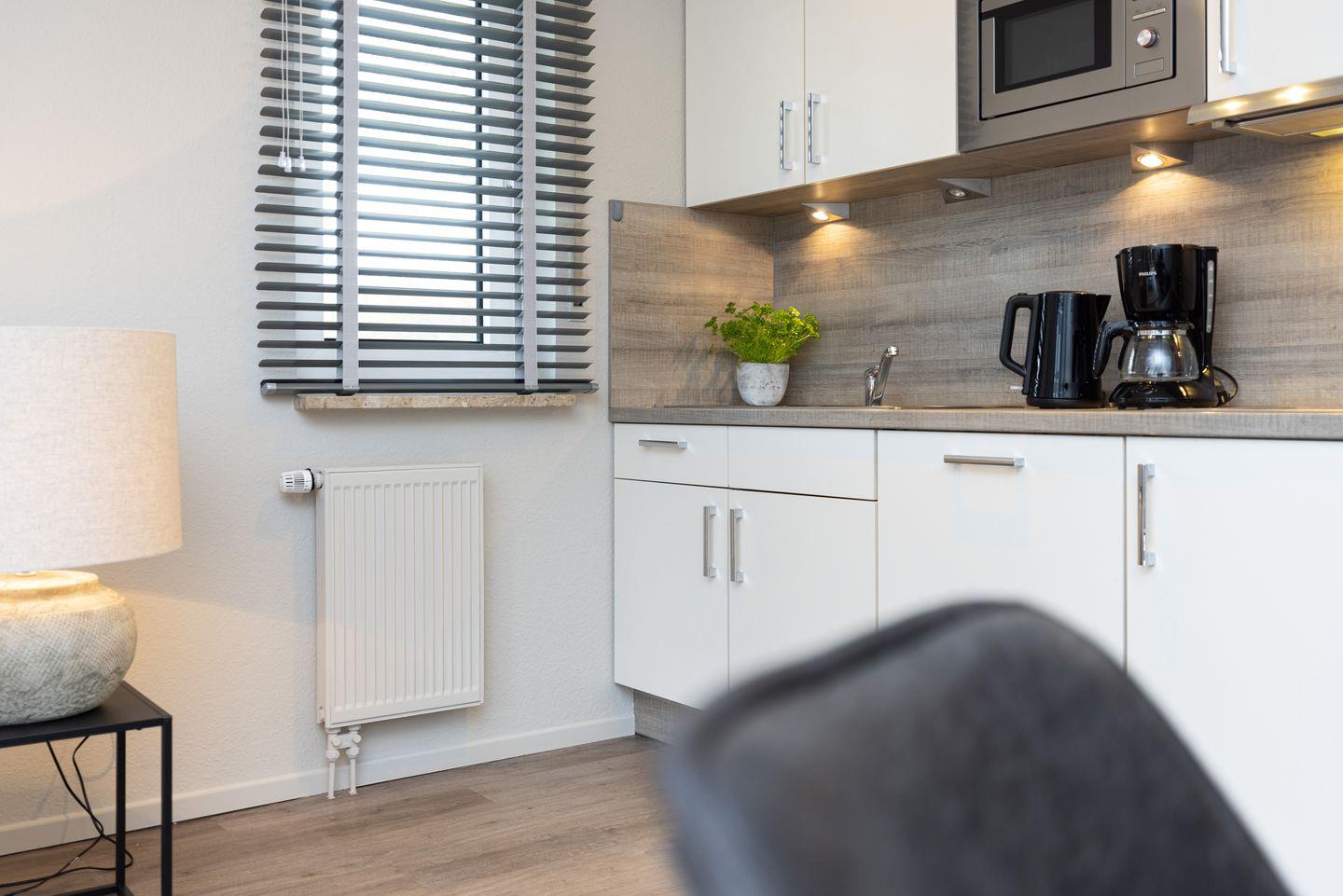 Die Wohnung 3 liegt im Erdgeschoss und ist ca. 45 qm groß. Der Wohnbereich ist offen und hell gestaltet durch eine schöne Fensterfront zum Garten. Integriert im Wohnbereich sind der Essbereich und die Küchenzeile mit Geschirrspülmaschine und Mikrowelle.