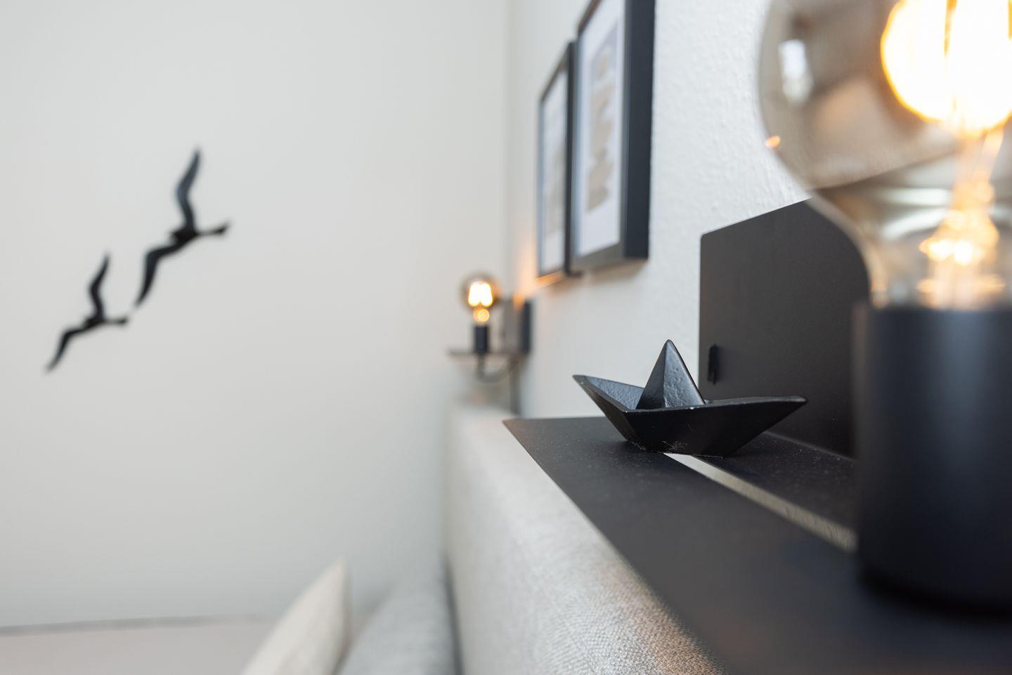 Ein separates Schlafzimmer ist mit einem Doppelbett (durchgängige Matratze 1,60x2,00m) ausgestattet. Für die ganz kleinen Gäste gibt es auf Anfrage ein Kinder-Reisebett und einen Hochstuhl.