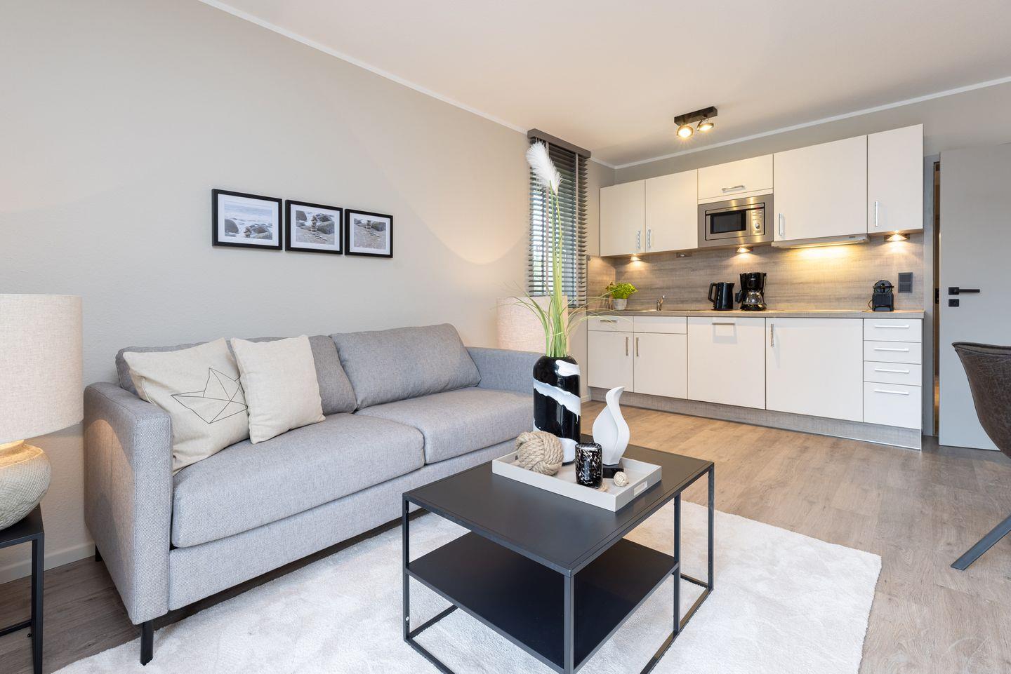 Die modern ausgestattete Erdgeschosswohnung Meisenweg 12 Whg. 3 EG in Kellenhusen bietet bis zu vier Schlafmöglichkeiten sowie eine offene Küche, einen gemütlichen Wohnbereich und eine überdachte Terrasse. WLAN, Spülmaschine, TV und ein eigener Parkplatz stehen zur Verfügung. Haustiere sind willkommen und der Sandstrand ist nur 400 Meter entfernt.