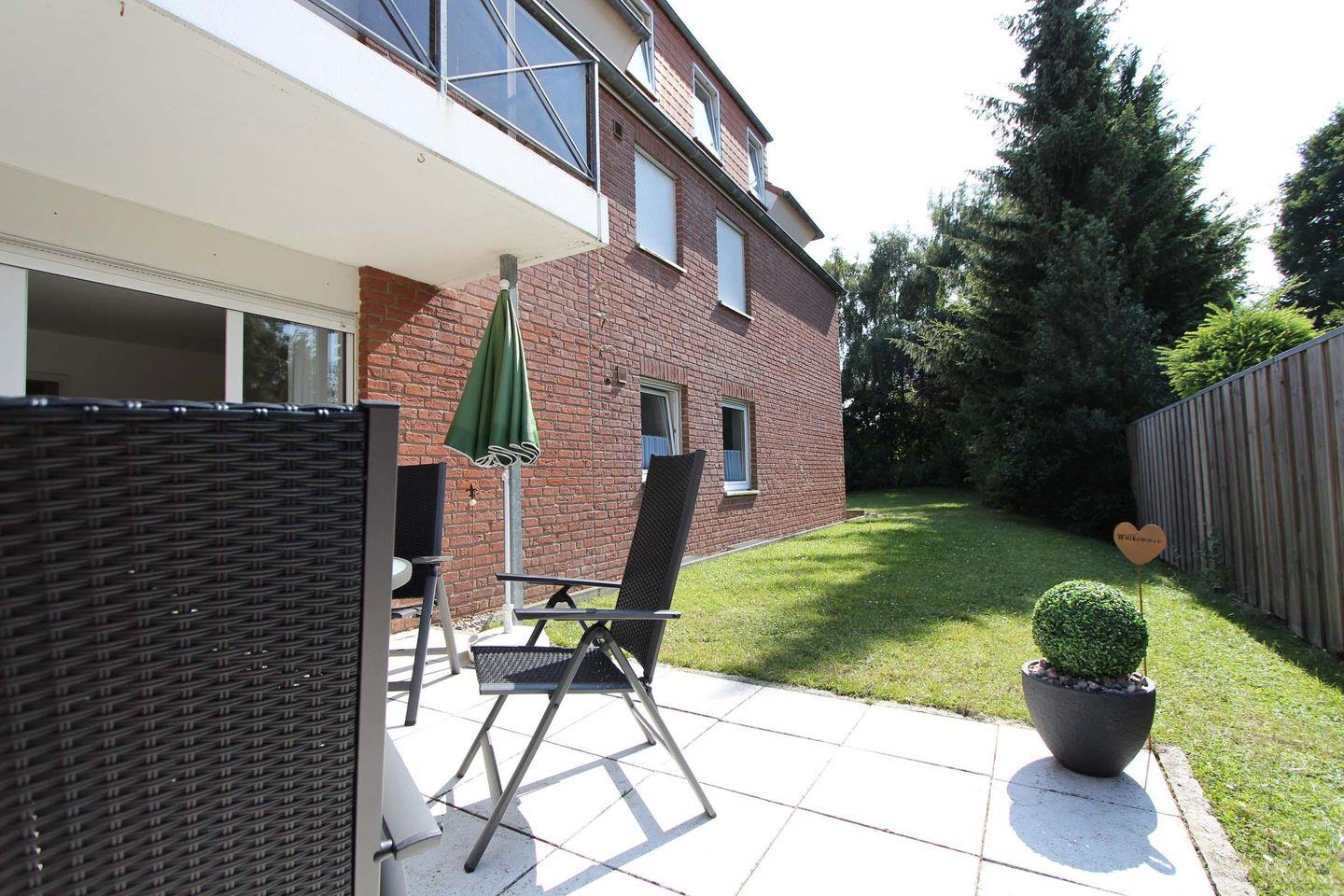 Im Schützenweg in Kellenhusen liegt diese schöne ca. 55 qm große Erdgeschosswohnung. Das Wohnzimmer ist gemütlich und schick eingerichtet und durch die Fensterfront sehr hell und sonnig. Ebenso ist hier ein Essbereich integriert und bietet die Möglichkeit für gemeinsame Mahlzeiten, Spieleabende oder einfach ein gemütliches Beisammensein. Die Küche ist separat angeordnet und mit einem Ceranfeld, einer Geschirrspülmaschine und einer Mikrowelle ausgestattet. Zwei separaten Schlafräume sind vorhanden, Jeweils mit einem Doppelbett (2 Matratzen á 0,90x2,00m) eingerichtet Das Badezimmer ist hell und schlicht gestaltet und bietet eine Duschkabine viel Platz und einen Handtuchheizkörper. Die zugehörige Terrasse ist Richtung Westen gelegen und lädt zum Erholen ein. Der Strand ist nur ca. 2 Gehminuten entfernt. Auch dem Urlaub mit dem Haustier steht generell nichts im Wege, denn nach Rücksprache und gegen Aufpreis ist ein Hund gestattet. Sollte das Reisegepäck so gering wie möglich ausfallen, dann ist ein Wäschepaket für den Aufenthalt in Kellenhusen gegen Gebühr einfach buchbar, ansonsten stehen im Haus Waschmaschine und Trockner gebührenpflichtig zur Verfügung.