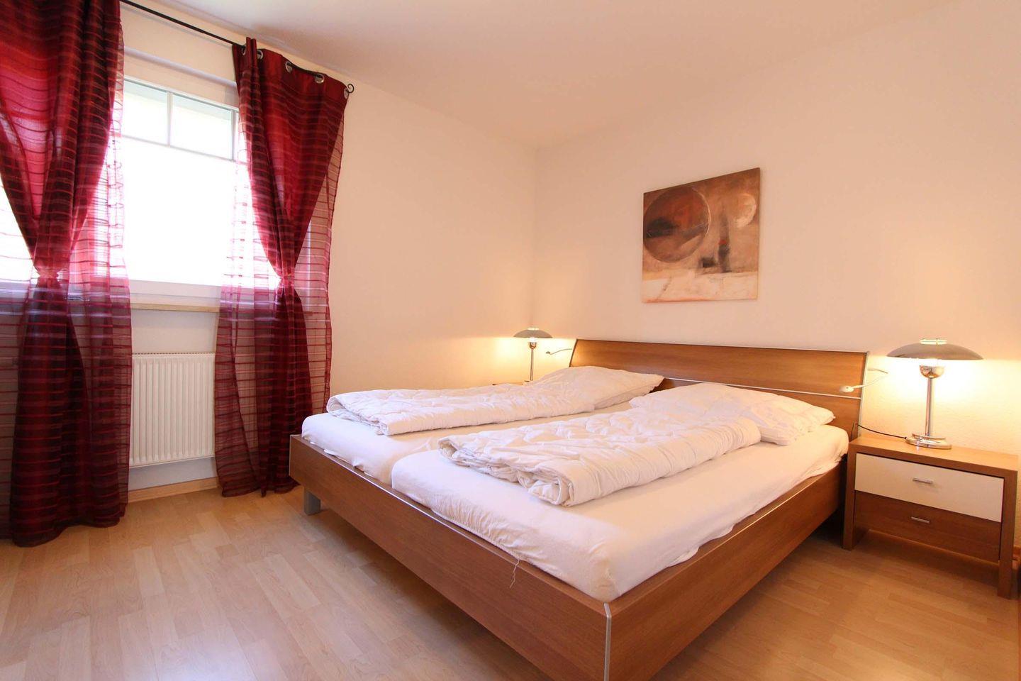 Das separate Schlafzimmer bietet ein zum Fußende offenes Doppelbett (2 Matratzen á 0,80x2,00m) für zwei Personen zum übernachten.