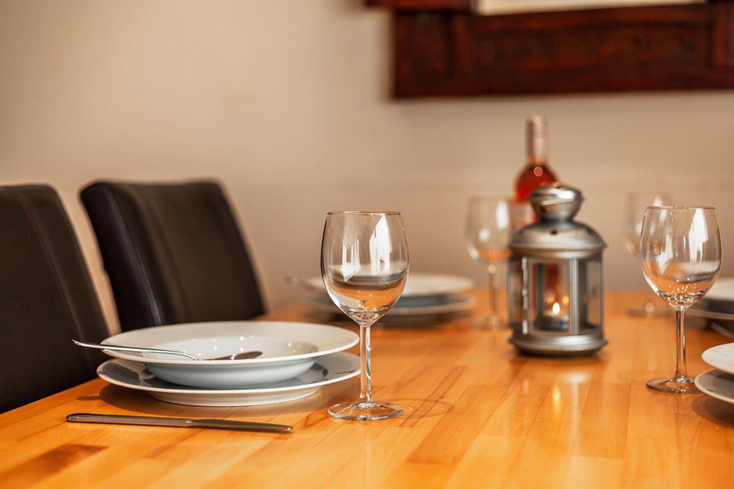 Der Essbereich und die hochwertige Küche sind ebenfalls im Wohnzimmer integriert und laden zum gemeinsamen Kochen und Essen ein. Ausgestattet mit Geschirrspülmaschine, Mikrowelle und Backofen bleiben bzgl. der Küchenausstattung keine Wünsche offen.