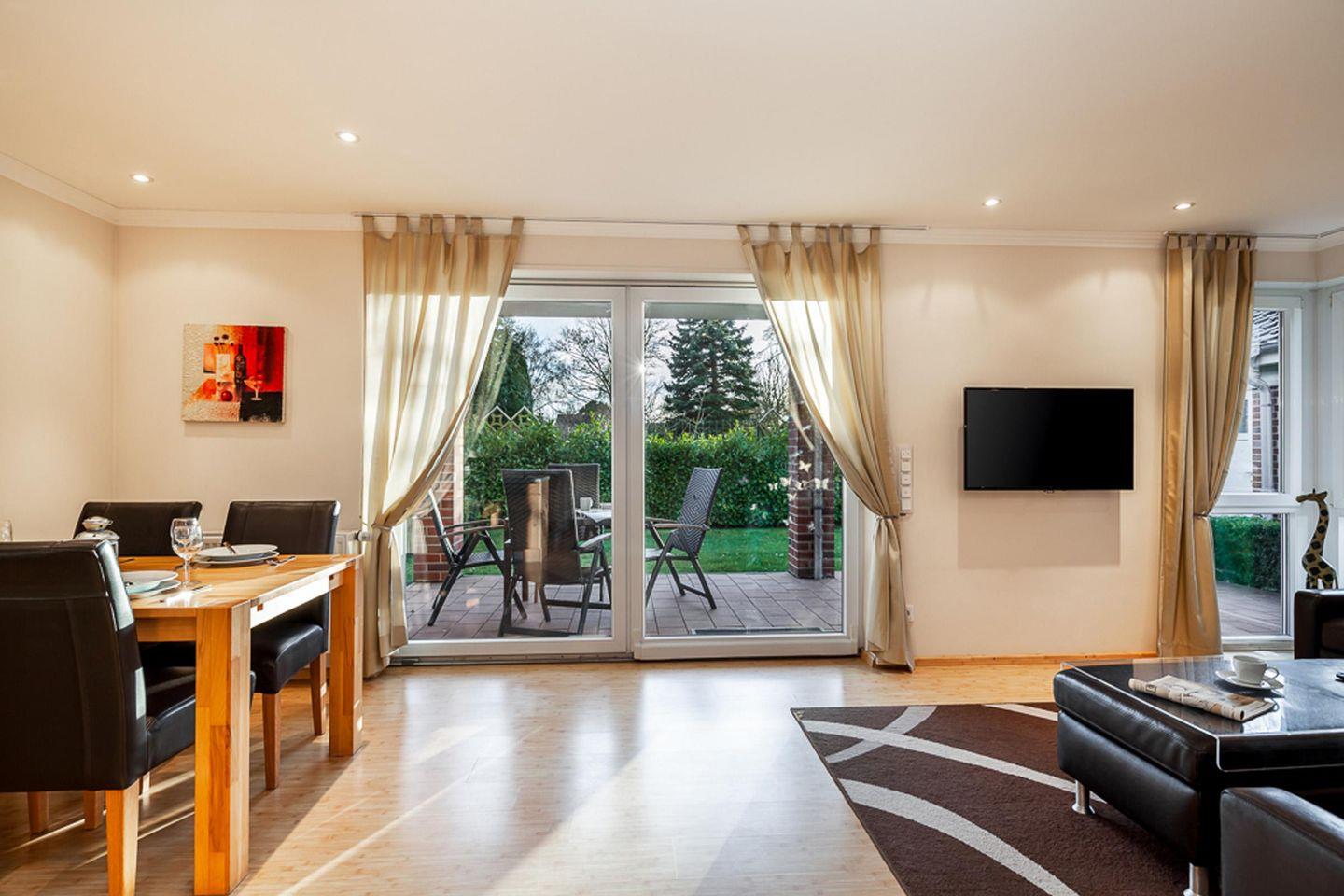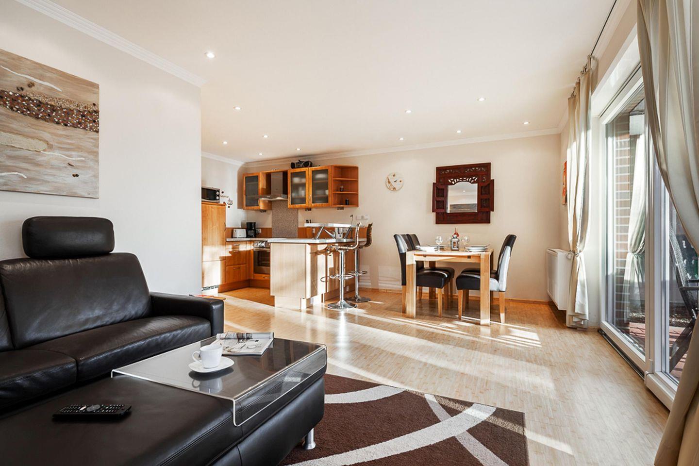Die Lichtdurchflutete, großzügige und moderne Nichtraucherwohnung bietet ein Wohnbereich mit Couchecke, Flachbildschirm und gemütlicher Atmosphäre.