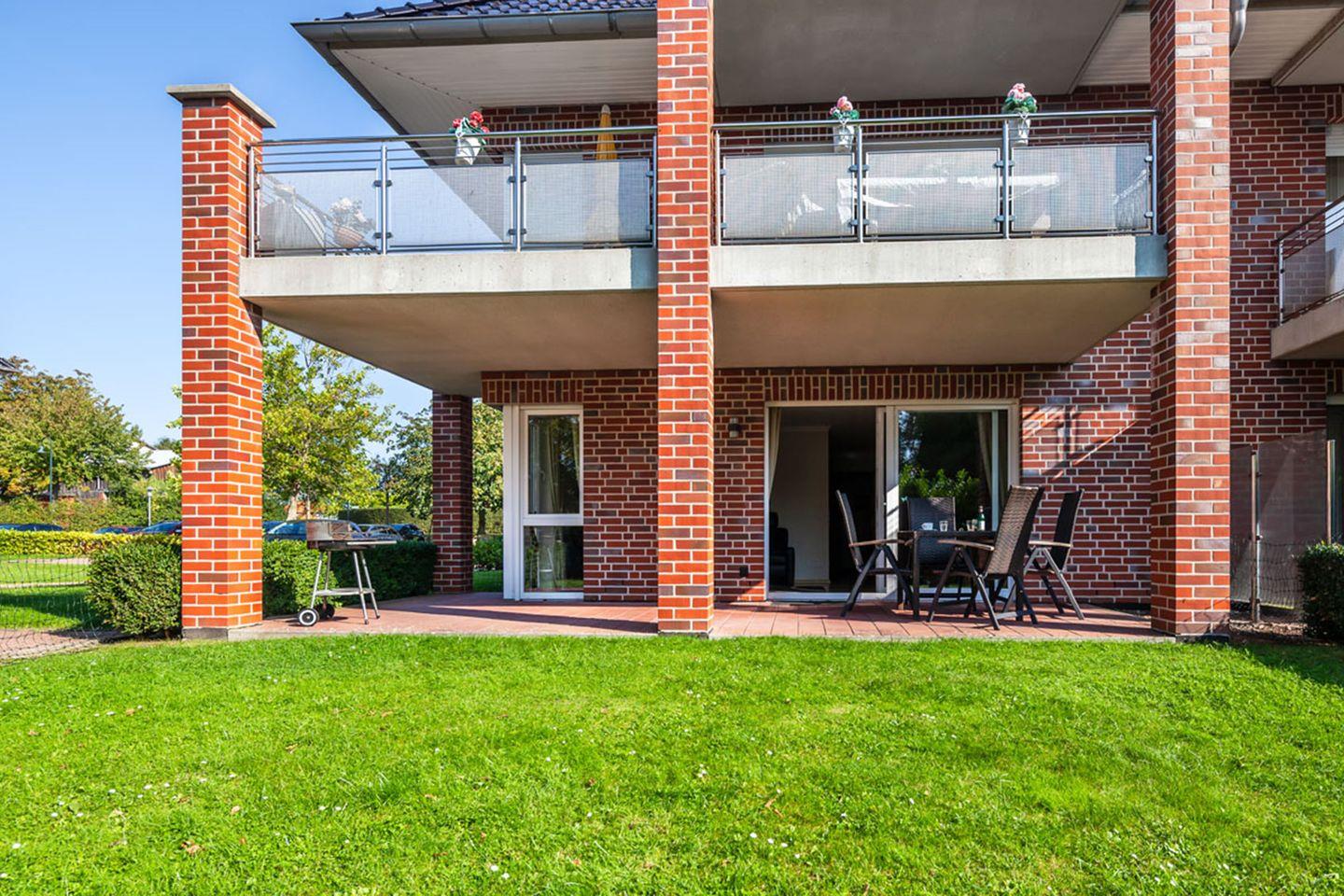 Die Ferienunterkunft Am Wintershof 5 Whg. 1 in Kellenhusen bietet auf 73 m² im Parterre Platz für bis zu 4 Personen. Zwei Schlafzimmer, ein modernes Bad, eine voll ausgestattete offene Küche, ein Wohnbereich mit Sat-TV sowie eine überdachte Terrasse mit Gartenmöbeln sorgen für Komfort. WLAN, Privatparkplatz sowie eine haustierfreundliche Atmosphäre machen diese Wohnung ideal für Familien und Erholungssuchende. Der Sandstrand ist nur 950 Meter entfernt.